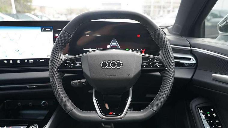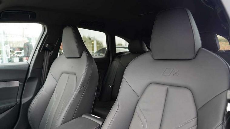 Adaptive cruise control, Advanced driver attention and fatigue montior, Audi application store, Audi assistant, Audi connect emergency call and service, Audi drive select, Audi smartphone interface, Audi virtual cockpit plus with 11.9" OLED colour display, Automatic start/stop system with coasting functionality, Camera based traffic sign recognition, Intersection assist, Lane departure warning, MMI navigation plus with high resolution 14.5" OLED touchscreen colour display, Park assist plus, Parking system plus with 360 display, Progressive steering with servotronic, Rear view camera, Swerve assist and turn assist, Traffic sign based speed limiter, Sports suspension lowered by 20mm, 2 USB-C ports in both the front and rear, Audi sound system impressive sound with 10 loudspeakers including centre speaker and subwoofer, 6-channel amplifier with a total output of 180 watts, DAB digital radio reception, Smartphone compartment with wireless charging, Aluminium roof rails, Aluminium window trims, Auto dimming rear view mirror, Body colour door mirrors, Door mirrors - electrically adjustable, heated, folding and auto dimming on both sides, Front and rear electric windows, Front door sill trims with aluminium inlays, illuminated with 'S' logo, High beam assist, LED headlights Plus incl. digital daytime running lights, turning light, all-weather light, motorway light, manouevring light and intersection light, LED rear lights pro incl. dynamic rear indicators and illuminated light strip with animated coming and leaving home function, LED third brake light, Privacy glass, Rear and side windows with heat insulating glass, Rear side wing doors, Rear wash/wipe, S Line badges on the front wings, S line bumpers, radiator grille and diffuser in phantom black and diffuser insert in matt anthracite, White rhombus logo projection light in exterior mirrors, Windscreen with acoustic glazing, 3 rear headrests, 3 seat rear bench, 3 spoke leather steering wheel with multi-function buttons with touch control, flattened on top and bottom, with S badging and contrast stitching, 3-zone automatic climate control, 40:20:40 split folding rear seat bench with centre armrest and cup holders, Comfort front centre armrest, Front and rear floor mats, Front seats with manual adjustment for position and 4-way electric lumbar support, Front sport seats with integrated headrest and S embossed logo, Headlining in black cloth, Heated front seats, i-Size child seat mounting on the front passenger side and outer rear seats, i-Size and top tether on the outer rear seats, Luggage compartment lid, electrically opening and closing, Manual steering column height and depth adjustment, Single front passenger seat, Stainless steel pedals and footrest, Steering wheel grips in perforated leather and shift paddles, Ambient lighting package plus - A5, 3x3 point rear seat belts, Driver airbag, Electric child safety locks, First aid kit with warning triangle and vests, Front emergency brake assist, Front passenger airbag, Front passenger airbag deactivation, Front side airbags with head airbag system and front interaction airbag, Hill hold assist, Seat belt monitoring with rear seat occupant reminder, Tyre pressure loss indicator, Anti theft alarm, Anti-theft wheel bolts, Keyless Go, Accent surfaces and control buttons in gloss black, Black dashboard with contrast stitching, Inlays in matt brushed aluminium with linear embossing, anthracite, Softwrap in leatherette with contrast stitching, Upper and lower interior elements in leatherette, Tyre repair kit,