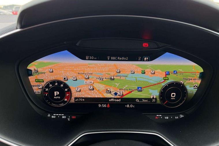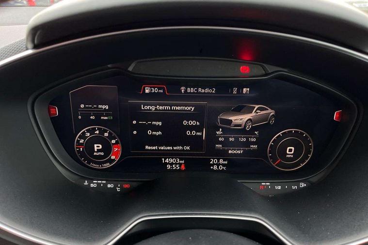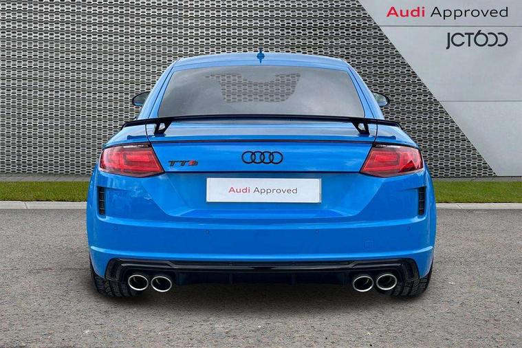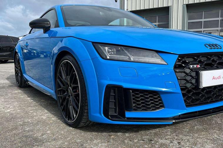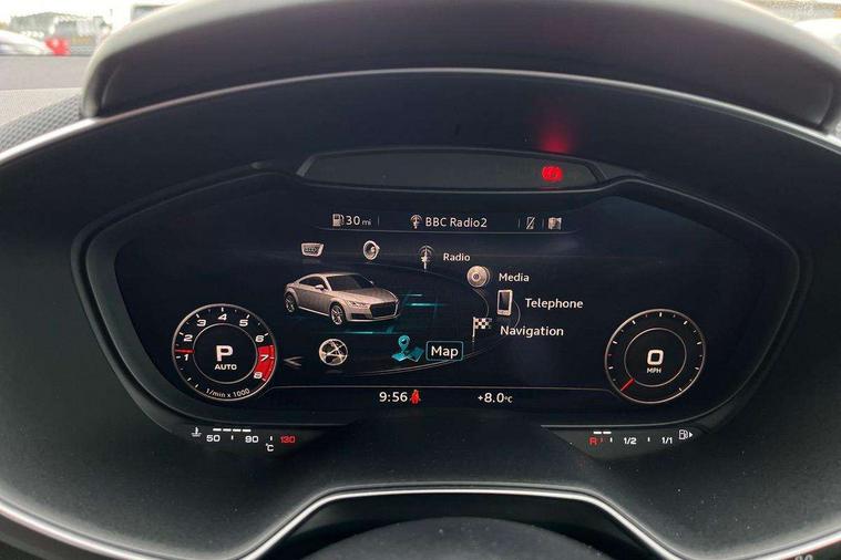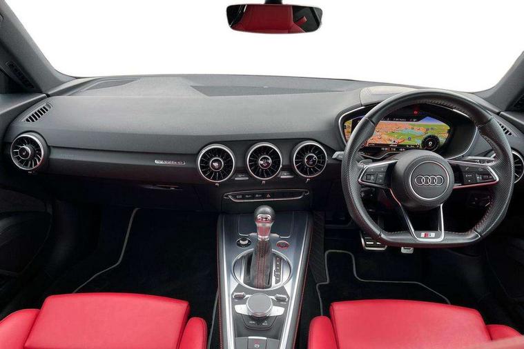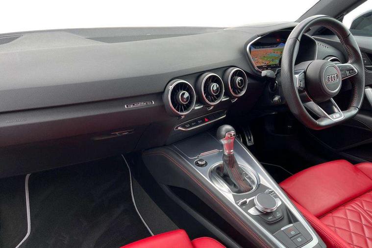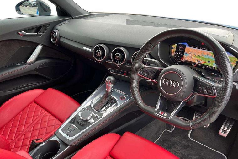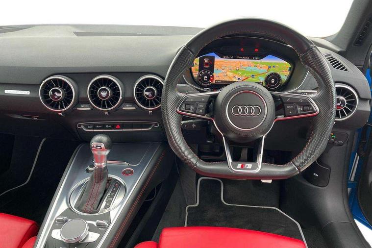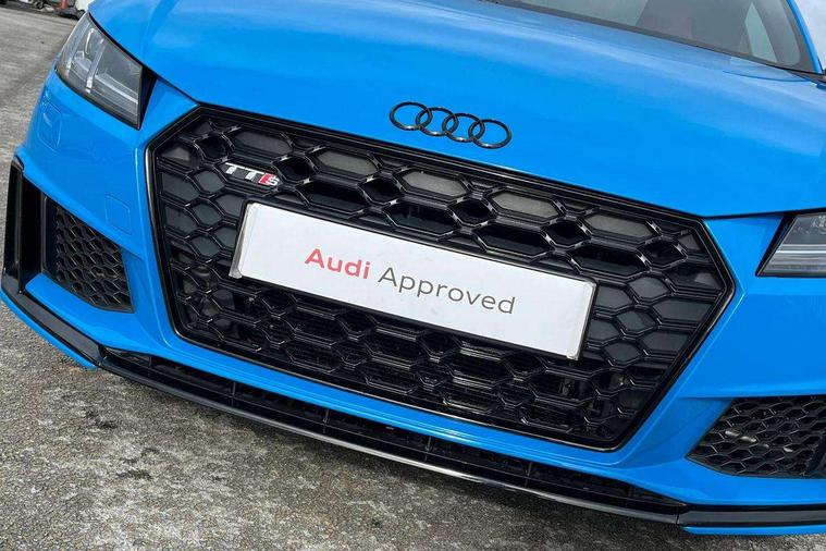 Audi drive select with 4 Pre configured modes, Audi smartphone interface, Audi Virtual Cockpit with sport gauge, Cruise control + speed limiter, Mobile phone preparation with bluetooth interface, Progressive power assisted steering, Service interval indicator, Start/Stop system with energy recuperation, TP memo, Audi magnetic ride, TTS suspension, AM/FM radio, Audi Sound System with 9 speakers, Bluetooth audio streaming, DAB Digital radio, MMI Radio with CD player and SD/XC card slot, Audi Beam uses LEDs to project the Audi Sport logo, Auto dimming rear view mirror, Auto headlight range control, Black door mirrors, Dark privacy glass from B-pillar backwards, Electric folding door mirrors, Electric front windows, Electrically adjustable and heated door mirrors with integrated LED side indicators, Green tinted heat insulating glass, LED daytime running lights, LED headlights with LED rear lights + dynamic rear indicators, Light and rain sensors, Sunband for windscreen, 12V socket, 3 spoke flat bottomed contour leather multi-function TTS sport steering wheel and TTS badging, 4 way electric lumbar support for driver and front passenger, Black headlining, Black roll bar, Deluxe auto air conditioning with integrated digital display, Door sill trims with aluminium inlay and TTS logo, Front centre armrest, Heated front seats, Height adjustable driver's seat, Height adjustable front head restraints, Height/reach adjust steering wheel, ISOFIX child seat mounting for front passenger seat with airbag deactivation, Perforated leather gearknob in black, Rear head restraints, Rear top tether child seat ISOFIX attachment, Split folding rear seat, Stainless steel pedals, Black styling pack - TT, Leather pack - TTS, LED interior light pack - TTS, Non smoking pack - TT/TT RS, Technology pack without Audi phone box - TT, 3 point front seat belts, ABS, ASR traction control, Curtain airbags, Driver and front passenger airbag with front passenger airbag deactivation, EDL traction control, Electromechanical parking brake, ESP, First aid kit, Front side airbags, Head airbags, Hill hold assist, Seatbelt warning, Tyre pressure loss indicator, Warning triangle, Anti theft alarm, Anti theft wheel bolts, Immobiliser, Keyless Go, Remote central locking, Matt brushed aluminium inlays, Tool kit, Tyre repair kit,