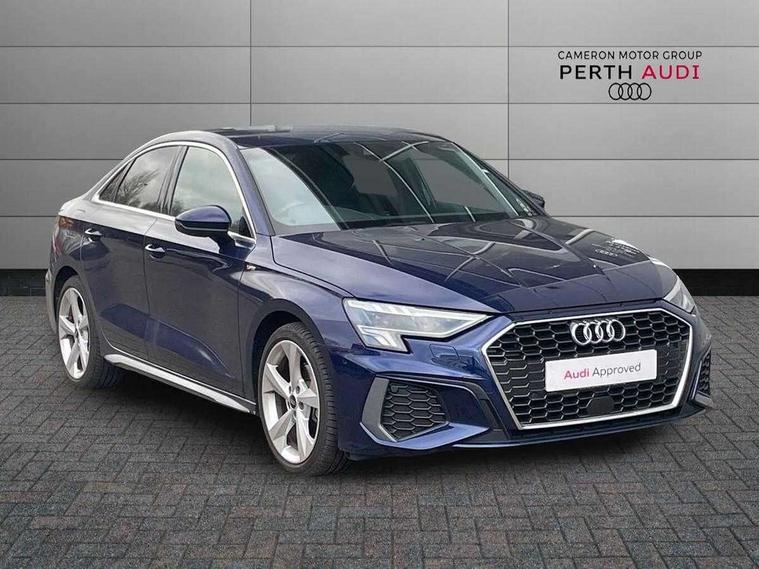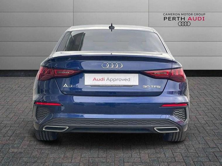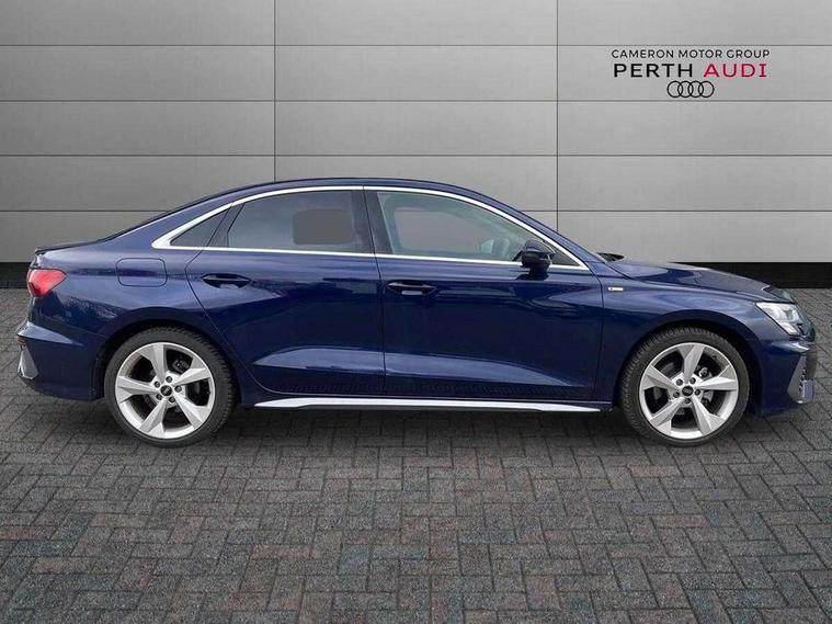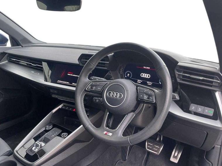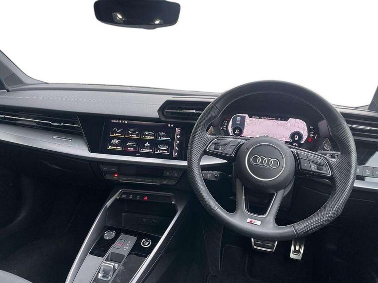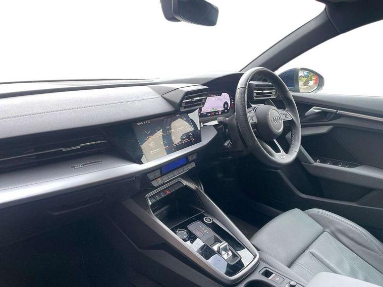 Audi drive select (Auto, Comfort, Dynamic and Individual), Audi smartphone interface, Audi Virtual Cockpit - 10.25" digital and colour instrument cluster, Automatic start/stop system with recuperation, Bluetooth interface, Camera based traffic sign recognition, Collision avoidance assistant, e-Call (emergency call), Electromechanical power speed sensitive steering, Lane departure warning system, MMI Navigation Plus with high resolution 10.1" colour touch screen display, Service indicator, Trip computer, Voice control system with natural language interaction, Sports suspension, 2xUSB-C connection with data and charging functions, 6 passive loudspeakers, CD player, DAB Digital radio, 3rd brake light, Acoustic glass windscreen, Aluminium window trim, Auto dimming frameless rear view mirror, Body colour exterior mirrors, Electrically adjustable/heated/folding/auto dimming door mirrors with integrated LED indications + kerb view function for passenger side, Front electric windows, Illuminated door sills with aluminium inserts at the front with S logo, LED daytime running lights, LED headlights with LED rear lights and dynamic rear indicators, Light and rain sensors, Model and engine designation badges at rear, Privacy glass - dark tinted rear window, rear door and side windows, Rear boot, Rear electric windows, Rear side wing doors, S line bumpers, S roof spoiler, 12V socket and storage compartment in front centre console, 3 seat bench in 2nd row, 3 spoke leather multifunction steering wheel with gear shift paddles, 4 way electrically adjustable lumbar support for driver and front passenger, 60/40 split folding rear seat bench, Black cloth headlining, Dual zone electronic climate control, Front and rear centre armrest in artificial leather, Front and rear headrests, Front/rear floor mats, Height and reach adjustable steering wheel, Interior lighting - glove compartment light and right hand side, Luggage compartment floor covering, Manual boot compartment lid, Manually adjustable front seats, Seat side bolsters, Single front passenger seat, Stainless steel pedals and front footrest in black, Twin leather upholstery with front sports seats S embossed logo, Aluminium interior elements pack - A3, LED interior lighting pack - A3 Saloon, S line styling pack - A3 Saloon, 3x3 point rear seat belts, Driver and front passenger airbag with passenger airbag deactivation, Electronic Stabilisation Control (ESC) including ABS, ASR and EDL, First aid kit with warning triangle and 2 safety vests, Front side airbags with head airbags and interaction airbag, Pre-sense front with pedestrian and cyclist detection, Seatbelt monitoring, Tyre pressure loss indicator, Anti theft alarm, Anti-theft wheel bolts, Electronically operated child locks, Immobiliser, Remote control central locking, Aluminium air vent surrounds, Dark spectrum aluminium inlays, accent surfaces in the dashboard and centre console in platinum grey silk effect paint finish,