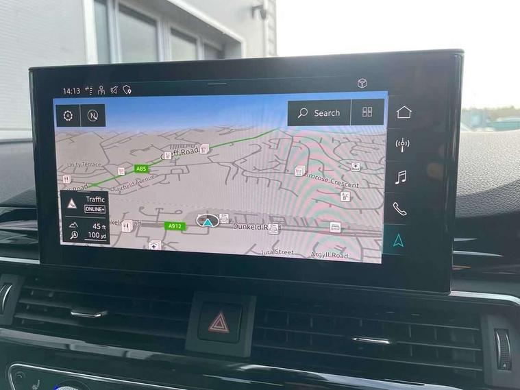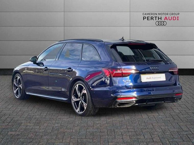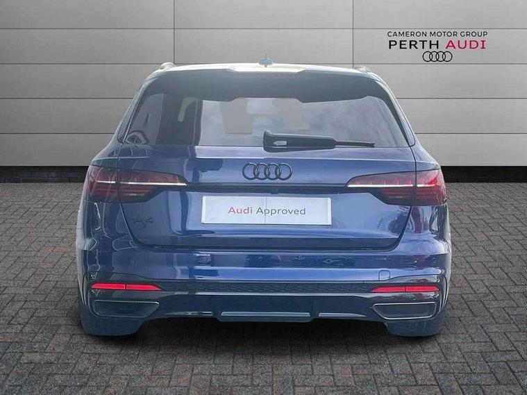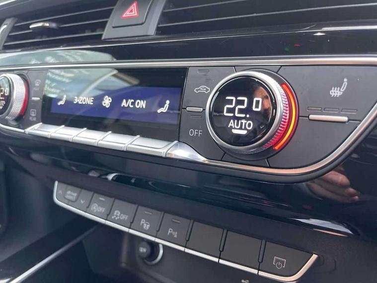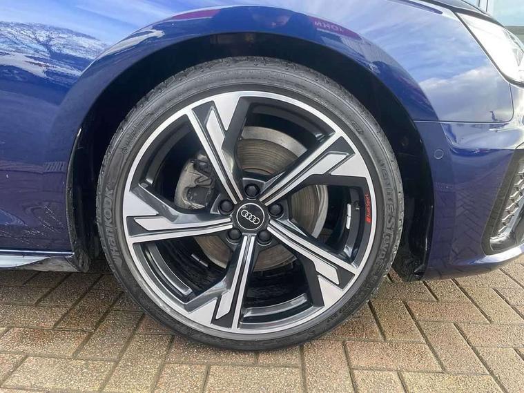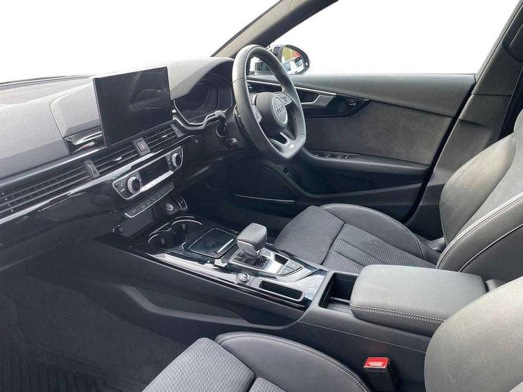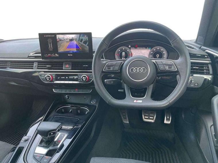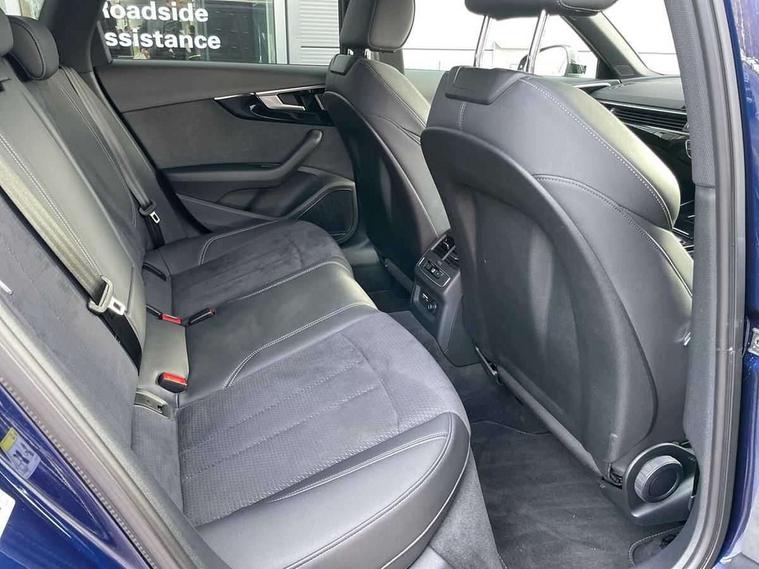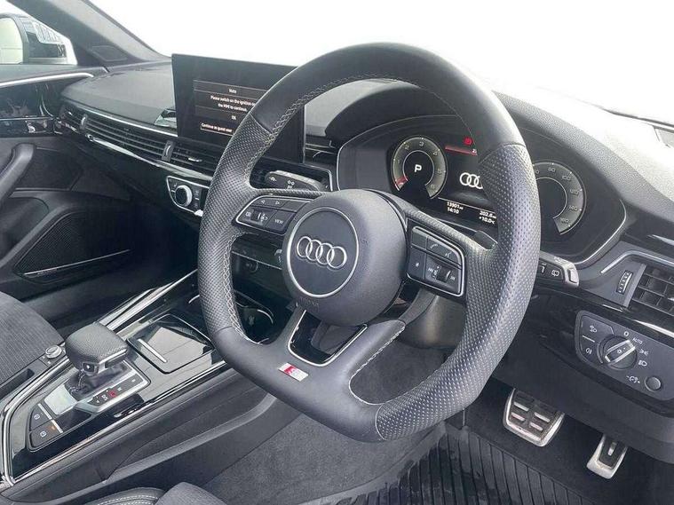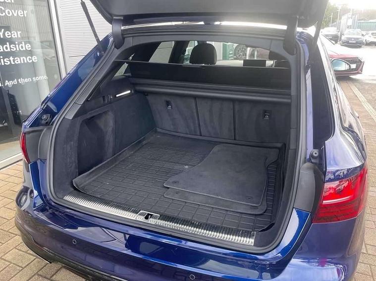 Audi connect safety and service (e-call), Audi drive select, Audi smartphone interface, Audi virtual cockpit, Automatic start-stop system with coasting functionality and efficiency programme, Bluetooth interface, Camera based traffic sign recognition, Electromechanical power steering, Email, calendar and text messages displayed via MMI, Front and rear parking sensors, Lane departure warning, MMI Navigation plus with MMI touch includes 10.1" high resolution colour MMI display, 3D map, Power operated tailgate, Rear view camera, Voice control system, Sports suspension lowered by 23mm, 2 USB charging ports, 8 passive loudspeakers, DAB digital radio reception, Audi beam uses LEDs to project the audi logo onto the ground as you exit your A4, Auto dimming rear view mirror, Black Audi rings and black badging (model name in black badging, no engine badging), Body colour door handles, Body colour front spoiler lip, Body colour side sill trim, Electric adjustable/heated/folding door mirrors with auto dimming, Exhaust tailpipes in high dark chrome, Grained matt black side air inlets with matt aluminium silver inlay, High beam assistant, High gloss black B pillar trims and triangular rear door trim, LED headlights with LED rear lights + dynamic rear indicators + headlight adjustment and high beam, turning light + LED daytime running lights, LED third brake light, Privacy glass, Rain and light sensors, Rear diffuser in matt black with trim strip in matt aluminium silver, Rear side wing doors, Rear wiper, RS4 rear spoiler in body colour, S Line roof edge spoiler, Sport front and rear bumpers with side skirts, Variable intermittent front wash/wipe, Windscreen with acoustic glazing, 4 way electric lumbar support for driver and front passenger, 40/20/40 split folding 3 rear seat bench in 3 parts with rear centre armrest, Black carpets, Black cloth headlining, Black perforated leather gearknob, Contrast stitching on seats, steering wheel and gear lever gaiter, Deluxe 3 zone electronic climate control, Electric load area cover, Front and rear head restraints, Front centre armrest, Heated front seats, Illuminated door sill trims with S logo, ISOFIX child seat mounting and top tether, Manual seat adjustment, Single front passenger seat, Stainless steel pedals and foot rest, Black styling pack - A4 Avant, LED Interior light pack - A4/S4, 3 rear seatbelts, 6 airbags - Driver, front passenger, curtain and side windows, Attention and drowsiness assist, Electronic Stabilisation Control (ESC) including ABS, ASR and EDL, Hill hold assist, Multi collision brake assist, Pop-up bonnet for pedestrian protection, Pre sense city, Rear door child safety locks, Seatbelt monitoring, Warning triangle and first aid kit, Anti theft alarm, Anti theft wheel bolts, Central locking, Keyless Go, Piano black finish inlay, Tool kit, Tyre repair kit,