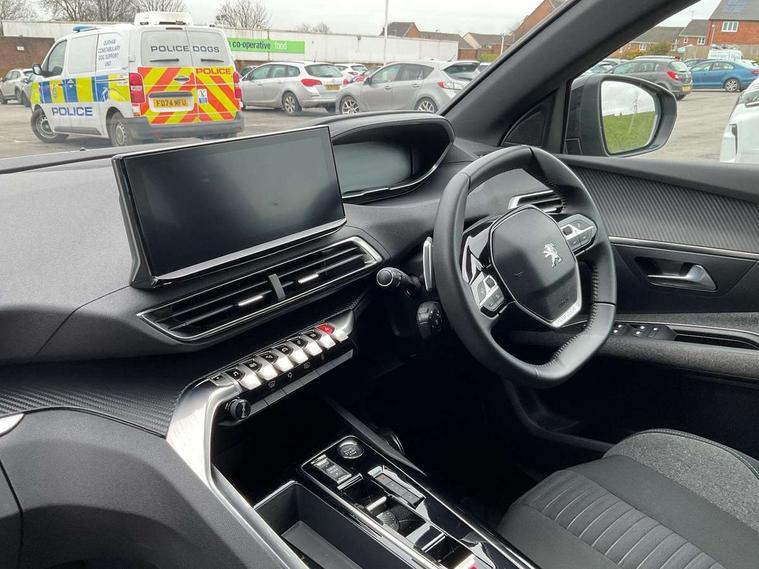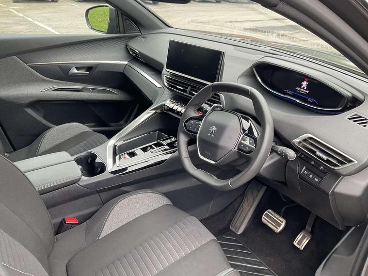 180 degree colour reversing camera, Bluetooth telephone facility, Drive mode selector (Electric, Hybrid, Sport), Driving Time Warning (DAA1), Emergency services call system, Extended traffic sign recognition, Exterior temperature indicator with ice warning, Lane departure warning system, Lane Keeping Assistance (LKA) with road edge detection, Mirror screen with Apple CarPlay and Android auto, Multi function trip computer, PEUGEOT i-Cockpit with 10" high definition capacitive touchscreen, PEUGEOT i-Cockpit with compact sports steering wheel, PEUGEOT i-Cockpit with configurable 12.3" Head-up digital instrument panel, PEUGEOT SOS and assistance, Programmable cruise control and speed limiter with intelligent speed adaption, Rear parking sensor, Speed limit recognition and recommendation, Deferred charging option, configurable in car or via My PEUGEOT App, Dynamic stability control and electronic anti-skid system, Mode 3 type 2 cable for wallbox charging, 6 speakers radio with mp3 compatible, DAB Digital radio, USB socket in front centre console, 2 X Rear number plate lights, Aluminium front door sills, Aluminium longitudinal roof bars, Automatic hazard light activation upon heavy brake application, Automatic triggered rear windscreen wiper in reverse gear, Black front wing trim, Black rubber side window trim, Body colour door handles, Body colour rear roof spoiler with stainless steel edging trim, Body colour roof, Body protectors (wheel arches + protection at bottom of doors) in black, Chrome frameless 'Classic' grille, Chrome rear bumper facia, Dark tinted rear side windows + tailgate window, Diamond Black door mirror shells, Eco LED headlights, Electric heated folding door mirrors, Front and rear door sill protectors, Front bumper lower trim in Silver, Front windscreen wiper with magic wash cleaning system, Gloss black B and C pillar and aerodynamic deflector trim, Gloss black front bumper air scoops, Gloss black rear cluster connecting strip, Gloss black windscreen trim, Headlights left on audible warning, Heated rear windscreen with integrated antenna, HYBRID emblem on tailgate, LED daytime running lights in fang style, LED front indicator, LED side indicator lights integrated into door mirrors, LED third brake light, One touch electric front/rear windows with pinch protection, Rear LED Peugeot signature 'Claw Effect' lights, Rear side wing doors, Stainless steel door sill scuff plates, Stainless steel roof arches, 12V Sockets in dashboard, rear cabin and load area, 2 cupholders in front centre console, 2 x Rear reading spotlights, 2x Rear coat hooks, 3 seat rear bench, 3x Isofix child seat fittings in the front passenger and outer rear seats, 4 Grab handles retractable and damped, Aluminium pedals, Blue ambient lighting for connecting zone, Blue ambient lighting to headup instrument panel, Brumeo fabric trimmed door armrests, Cabin pre-conditioning, Centre front armrest with butterfly wing opening and illuminated storage compartment, Driver seat manual adjustment (longitudinal and back rest angle), Dual zone automatic climate control, e-Toggle compact gear selector, Electric power steering with reach and rake adjustable steering column, Fixed boot floor with access to the charging cable storage box, Flocked glovebox interior, Front interior light with 2 reading spotlights and rear interior light with timer, Front passenger seat manual adjustment (longitudinal and back rest angle), Front seat back map pockets, Gear shift indicator, Height adjustable front seats, Illuminated glove box, central storage area and load area, Interior lighting in storage spaces and load area, Leather steering wheel with detail stitch, Pneuma cloth upholstery, Rear centre console ventilation system, Roof lining - Mistral black, Satin chrome dashboard trim, Satin chrome digital instrument panel, Satin chrome interior door handles, Satin chrome scorpion's tail and toggle switch trim, Seatbelt not fastened audible and visual alert for front seats, Seatbelt unfastened on the move audible and visual alert for front and rear seats, Single front passenger seat, Safety pack - 3008 Hybrid, Visibility pack - 3008, 3x Rear three-point retractable seatbelts with force limiters in the outer rear seats, ABS (Anti-lock Braking System) with EBD (Electronic Brakeforce Distribution) and EBA (Emergency Braking Assistance), Acoustic vehicle alerting system, Adaptive driver and front passenger airbags with passenger airbag deactivation function, Driver and front passenger side airbags, Electric child locking functionality on rear windows and doors, Electric parking brake, Front and rear curtain airbags, Front optimised safety headrests and 3 x rear retractable headrests with height adjustable, Front three point retractable seatbelts height adjustable with pre tensioners and force limiters, Front ventilated disc brakes and rear disc brakes, Hill start assist, Single tone horn, Automatic door locking when moving off, Electronic immobiliser, key operated exterior door lock from the left hand door, Perimetric and volumetric alarm with lift and tilt sensor, Peugeot keyless push button start, Remote control central locking with two plip keys, Carbon effect Dashboard, front and rear door panel finish, 18" Detroit storm grey diamond cut alloy wheels, Michelin e-primacy 225/55 R18 102V class A+ tyres, Tyre repair and inflation kit,