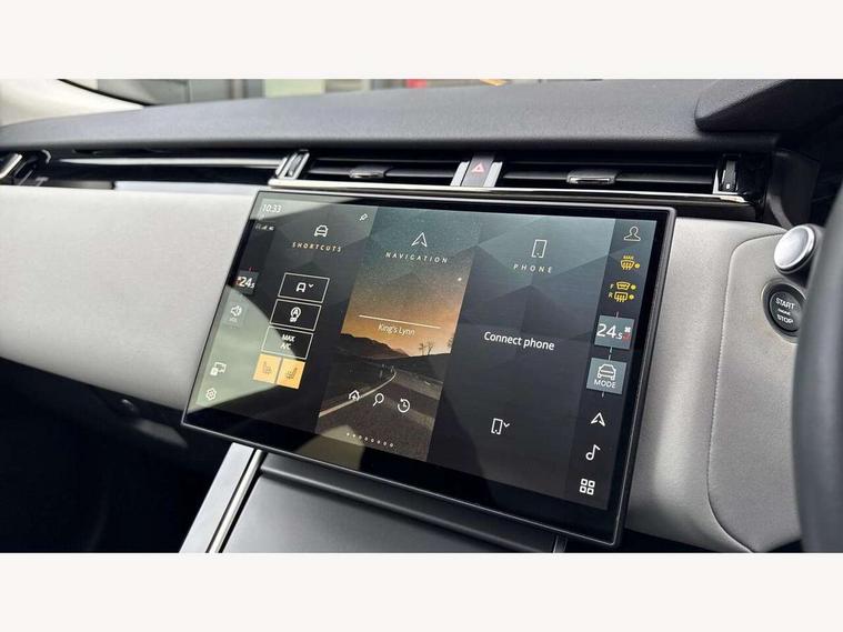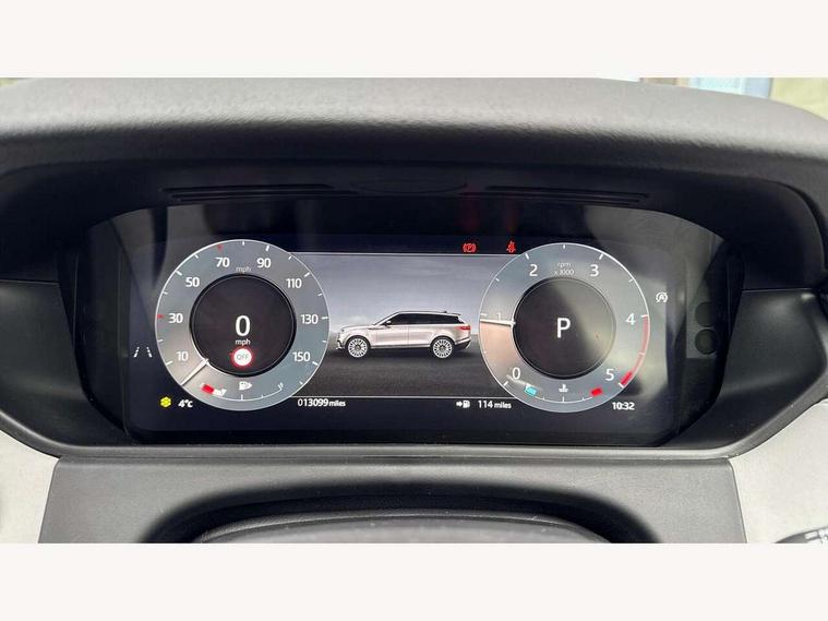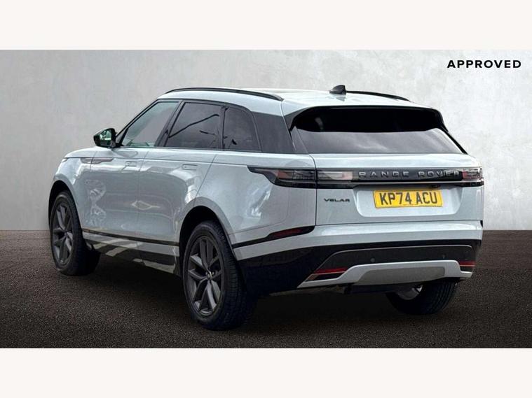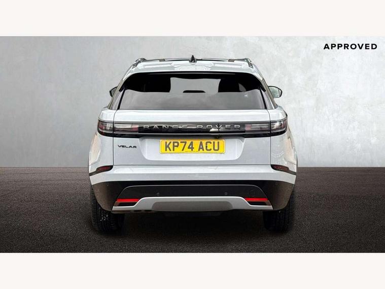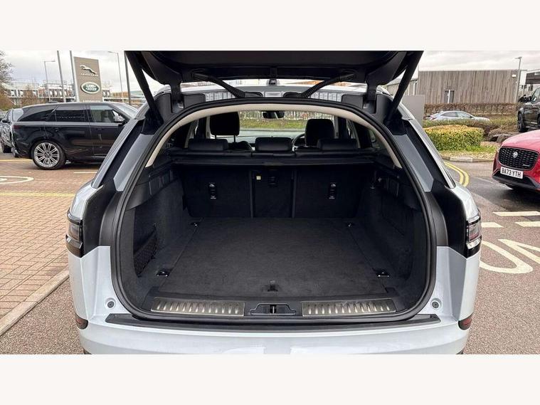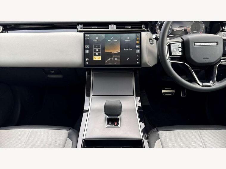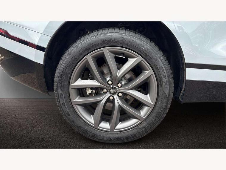 Android Auto, Apple CarPlay, Blind spot assist, Bluetooth connectivity, Brake pad wear indicator warning light, Driver condition monitor, eCall emergency call system, Front and rear parking aid, InControl remote, Land Rover InControl apps, Lane keep assist, Pivi pro with connected navigation, Rear traffic monitor, Service indicator, Speed proportional electronic power assisted steering (EPAS), Traffic sign recognition with adaptive speed limiter, Trip computer, Voice control system, Wireless device charging, 8 speed automatic transmission, All terrain progress control, Coil suspension system, Open differential with torque vectoring by braking, Single speed transfer box, DAB radio, Steering wheel mounted controls, 3rd brake light, Acoustic laminated windscreen, Auto dimming interior rear view mirror, Auto high beam assist, Automatic headlamp levelling, Automatic headlights, Body coloured bumpers, Boot protection plate, Electric windows with one touch open/close and anti trap, Flush deployable exterior door handles, Follow me home headlights, Heated rear window with timer, Heated washer jets, Heated windscreen, LED headlights with signature DRL, Metal front tread plates, Metal load space scuff plates, Power fold, auto-dimming, heated door mirrors with memory and approach lights, Rain sensor windscreen wipers, Rear animated directional indicators, Rear fog lights, Rear side wing doors, Rear wash/wipe, Tailgate/boot lid spoiler, Trailer stability assist, Velar badge, 14 way electrically adjustable front seats with driver's memory function, 3 seat bench in 2nd row, Ambient lighting, Bright metal pedals, Driver/passenger sunvisors with illuminated vanity mirrors, Ebony morzine headlining, Electrically adjustable steering column, Heated steering wheel, Isofix system on outer rear seats, Loadspace cover, Overhead lighting console, Overhead stowage for sunglasses, Passive front headrests, Rear air vents, Rear centre headrest, Single front passenger seat, Twin front cupholders, Twin sliding front centre armrest, Online pack with data plan - Velar, Power socket pack 2 - Velar, 355mm Front and 325mm Rear brakes, 3x3 point rear seatbelts, Anti-lock braking system (ABS), Cornering brake control, Curtain airbags, Customer configurable autolock, Door side intrusion beams, Driver airbag, DSC - Dynamic Stability Control, Electronic brake force distribution, Electronic parking brake, Electronic traction control, Emergency braking, Front and rear seatbelt reminder, Hill descent control, Hill launch assist, Low traction launch, Passenger airbag, Power operated child locks, Rear airbags, Roll stability control, Side airbags, Tyre pressure monitoring system (TPMS), Global lock and unlock switch on driver door, Immobiliser, Intrusion sensor, Keyless entry, Lock only switch on front passenger door, Locking wheel nuts, Perimetric alarm, Remote central locking, All season tyres,