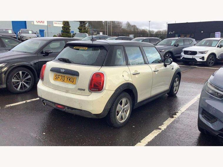 Automatic start/stop function with brake energy recuperation, Compatible mobile phone bluetooth with audio streaming, Electro-mechanical speed dependant steering assistance, Instrument cluster, Mini E-call, MINI TeleServices, On board computer, Service interval indicator, Double Vanos system, Fully variable valve control, Gear change indicator display, High precision injection, 6.5" touchscreen with LED ring, FM tuner and DAB digital radio, Automatic headlight activation switch, Body colour fuel filler cap, Chrome border high gloss black slats radiator grille, Dynamic brake lights, Electric front+rear windows, Heated rear window, Heated windscreen washer jets, LED headlight with closed ring and daytime driving lights, Left exhaust tailpipe with chrome finisher, Metal door sill strips with MINI imprint, Model logo Cooper on right of tailgate, Rain sensor window wipers, Rear fog lights, Rear LED lights with union jack design, Rear window wiper, Side scuttle panel with integrated indicator, Sun/heat protection glass, White indicator lenses, 12V Accessory socket in centre console, 4 lashing eyes in luggage compartment, 60/40 split folding rear seat, Carbon Black colour line, knee roll and door armrests, Chrome interior highlights, Colour line - Carbon black, Cupholders, Front and rear head restraints, Front and rear isofix with front passenger airbag deactivation, Glove compartment, Height and length steering column adjustment, Interior lighting with 12 basic colours selectable via toggle switch in roof, Leather gearshift lever and handbrake gaiters, LED reading lights, vanity mirror lights, front foot well light and spotlight on front seats, Manual air conditioning, Mechanical seat adjustment, driver seat height adjust, forward/back and front seats backrest, Mini logo projection on floor from drivers exterior mirror, Multifunction steering wheel, Satellite grey headlining, Storage compartments in doors, Sunvisors with vanity mirrors, 3 point seatbelts on all five seats, 6 Airbags - front, side, head and seat belt tensioners, Anti-lock braking system (ABS), DSC - Dynamic Stability Control, Front and rear disc brakes, Hill start assist, Single tone fanfare horn, Tyre pressure monitoring system, Alarm system with tilt sensor, monitoring doors, bonnet interior and tailgate, Electronic vehicle immobiliser, Start/stop toggle with keyless go, Tool kit, Tyre repair kit,