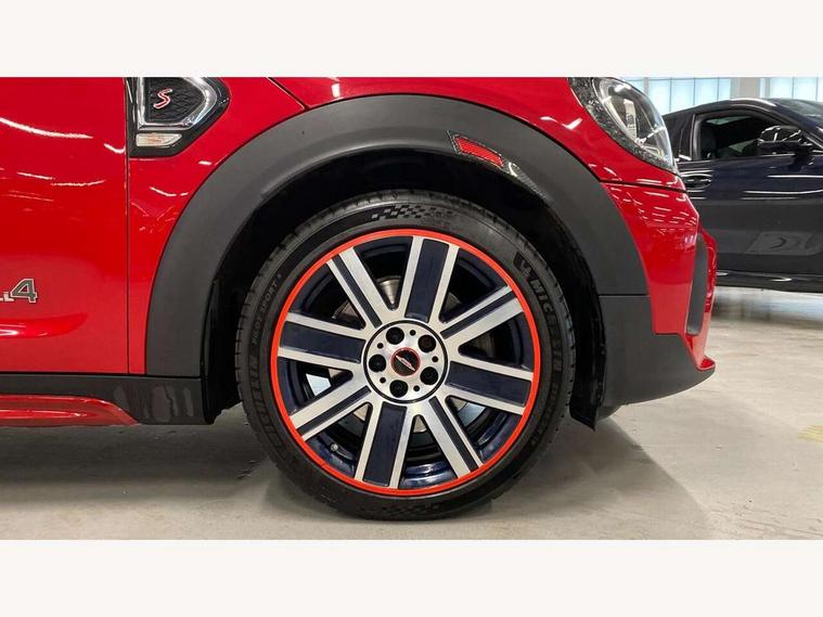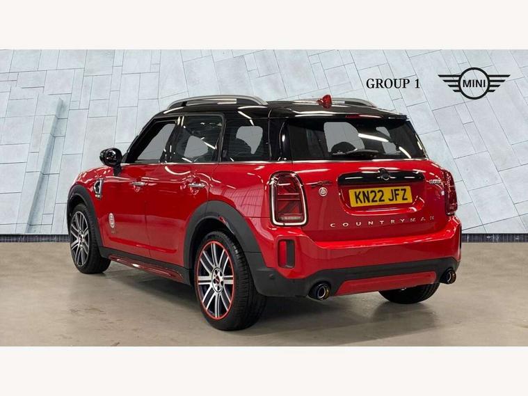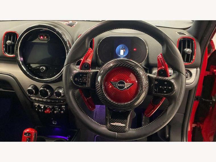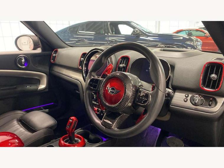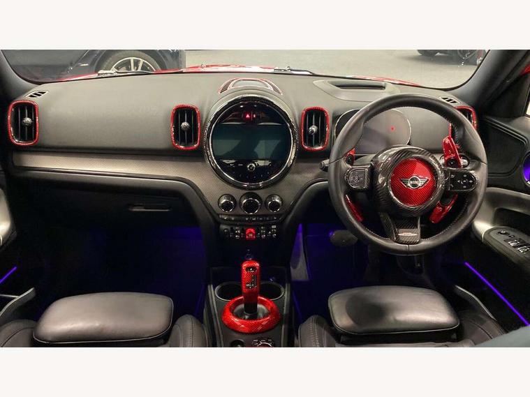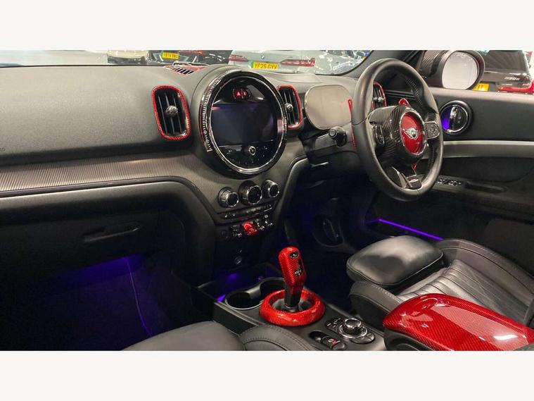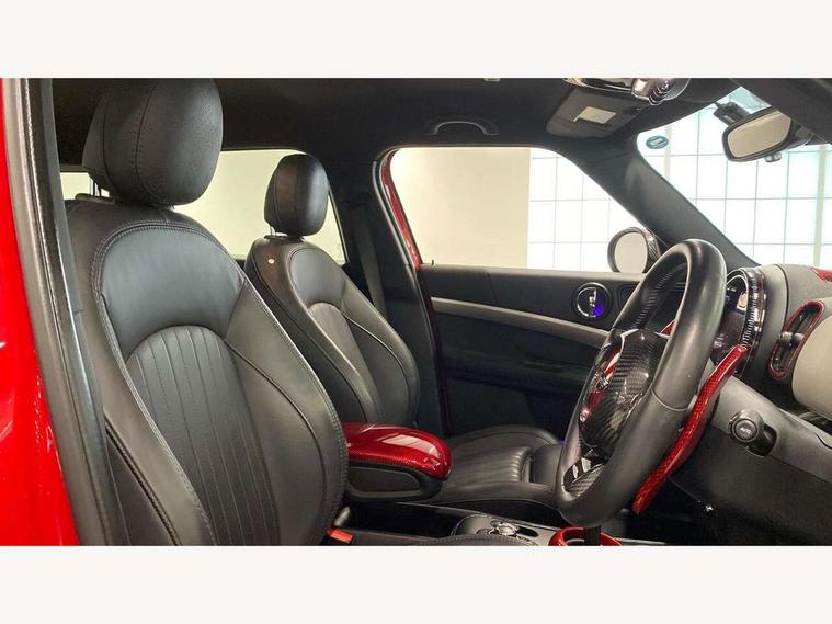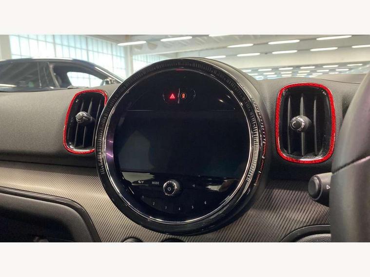 Active Guard incl speed limiting and lane departure functions with auto steering, and front collision warning with brake intervention, Automatic start/stop function with brake energy recuperation, Compatible mobile phone bluetooth with audio streaming, Cruise control with brake assist, Electro-mechanical speed dependant steering assistance, Instrument cluster, MINI Driving Modes - centre toggle switch to control driving setting (sport, mid and green), Mini E-call, On board computer, Rear parking distance control, 51 Litre fuel tank, Double Vanos system, Fully variable valve control, High precision injection, Performance Control, Sport automatic transmission with steering wheel paddles, FM tuner and DAB digital radio, 3rd brake light, Bonnet scoop, Chrome fuel filler cap, Day time driving lights, Dynamic brake lights, Electric windows, Heated rear window, Heated windscreen washer jets, LED fog lights, LED Headlights, Metal door sill strips with Cooper S imprint, MINI yours exterior badge in C-Pillar, driver and passenger side, Model logo, Model logo on Tailgate, Rain sensor with auto headlights, Rear fog lights, Rear side wing doors, Rear window wiper, Side scuttle panel with integrated indicator, Split rear doors, Sun/heat protection glass, White indicator lenses, 12V socket in centre console, 3 seat bench in 2nd row, 360L luggage compartment capacity, 4 lashing eyes in luggage compartment, 40:20:40 split folding rear seats, Anthracite headlining with grab handles and clothes hooks, Chrome interior highlights, Colour line - Carbon black, Cupholders, English handbook, Front headrests, Glove compartment, Height and length steering column adjustment, Interior lighting with 12 basic colours selectable via toggle switch in roof, Isofix rear child seat preparation, Leather gearshift lever and handbrake gaiters, LED reading lights, vanity mirror lights, front foot well light and spotlight on front seats, Manual air conditioning, MINI Yours fine walk nappa leather steering wheel with contrast stitching in silver and MINI Yours badge, MINI Yours floor mats, Multifunction steering wheel, Rear headrests, Single front passenger seat, Storage compartments in doors, Sunvisors with vanity mirrors, Excitement pack - Countryman, Navigation pack - Countryman, 2 tone horn, 3 point seatbelts on all seats, 6 Airbags - front, side, head and seat belt tensioners, Anti-lock braking system (ABS), DSC - Dynamic Stability Control, Electronic handbrake, Front and rear disc brakes, Hill start assist, Manual rear child locks, Tyre pressure monitoring system, Alarm system with tilt sensor, monitoring doors, bonnet interior and tailgate, Auto drive away locking, Deadlocking function, Electronic vehicle immobiliser, Locking wheel bolts, Start/stop toggle with keyless go, Tool kit,