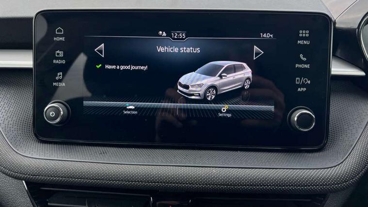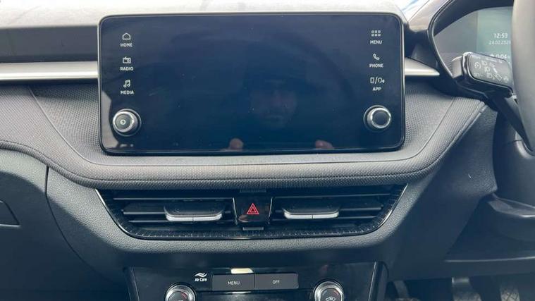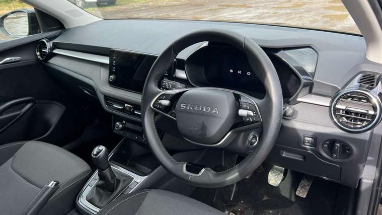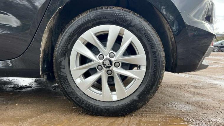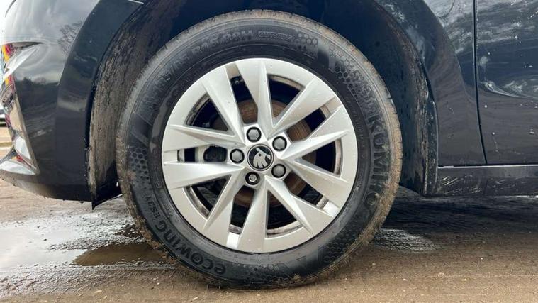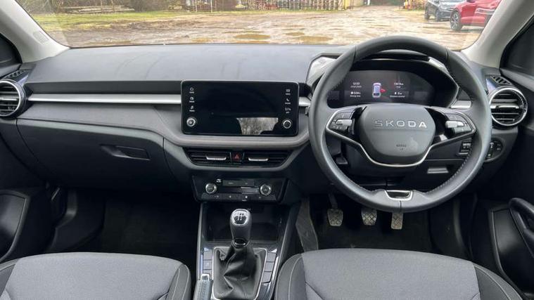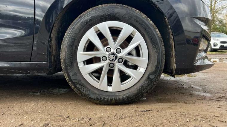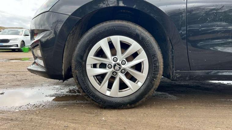 8" Digital instrument display, Advanced driver attention and drowsiness monitor, Bluetooth connection, Electromechanical power steering, Exterior temperature gauge, Service interval indicator, Traffic sign recognition, Wireless SmartLink for Apple CarPlay and Android Auto, 6 Speakers (4 in front and 2 in rear), 8.25" Skoda infotainment touchscreen display, Auxiliary socket for external MP3 player, DAB digital radio reception, Auto dimming rear view mirror, Body colour door mirrors, Body coloured bumpers, Door mirror integrated indicators, Front and rear electric windows, Front window wiper intermittent control, Headlight range control - Automatic, Ice scraper in fuel cap, LED 3rd brake light, LED daytime running lights with coming and leaving home feature, LED rear lights, Rear LED fog light, Rear side wing doors, Rear window wiper with washing nozzles, Roof mounted spoiler, SKODA tailgate lettering in chrome, Unique dark chrome design logo on alloy wheels, 2 reading lights in front and 2 reading lights in rear, 3 rear headrests, Backrest split and folding, Central console with removable cup holder and storage box, Chrome handbrake release button, Dual zone air conditioning with climatronic electronic control, Fabric upholstery, Front centre armrest, Gearshift knob/handle in leather, Grain satin black interior door handles, Hand brake lever handle in leather, Height adjustable front headrests, Height adjustable front seats, Height adjustable steering wheel, ISOFIX and TopTether anchorage points to the outer rear seats, ISOFIX and TopTether on the front passenger seat, Luggage compartment lighting, Manually adjustable lumbar support in front seats, Pollen filter, Rear seat bench unsplit, Single front passenger seat, Skoda lettering on steering wheel, Storm grey headlining, Sun visors with mirror and airbag label on passenger side, Textile floor mats, Ticket holder, Umbrella in drivers door, 3-point height adjustable front seats belts with pretensioner and force limiter, Automatic warning lights in case of crash, Driver and passengers airbag with switch off function, e-Call+, ESC including ABS, MSR, ASR, EDS, HBA and XDS, Front and rear seat belt warning, FRONT ASSIST (AEB City and AEB Inter Urban), Front side airbags, Head airbags, One tone horn, Pedestrian protection, Three rear 3-points safety seat belts with pretensioner and force limiter including stop function for outer rear seat belts, Tyre pressure monitoring system, Anti-theft alarm system including immobiliser, interior monitoring, backup horn, and towing protection, Central locking with radio remote control, interior controls, SAFE function and 2 foldable keys, Black painted air vents, Grain satin black central console cover, Metallic grey upper decorative trim, Satin black door and side trim panel in front, Textile Kota grey lower decorative inserts, Anti-theft wheel bolts protection, Super-low rolling resistance tyres,