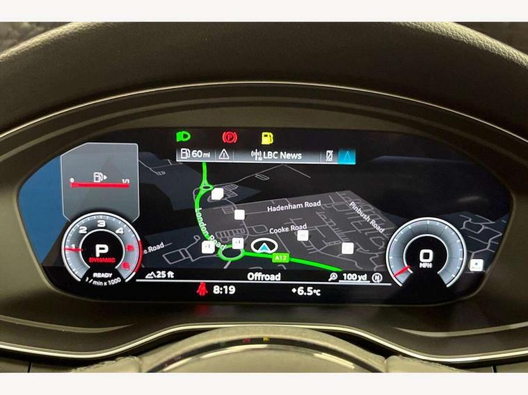 Audi connect safety and service (e-call), Audi connect with Amazon Alexa Integration, Audi drive select, Audi parking system plus with front and rear sensors, Audi smartphone interface, Audi virtual cockpit, Automatic start-stop system with coasting functionality and efficiency programme, Bluetooth interface, Cruise control system with speed limiter, Electromechanical power steering, Email, calendar and text messages displayed via MMI, MMI Navigation plus with MMI touch includes 10.1" high resolution colour MMI display, 3D map, Power operated tailgate, Rear view camera, Voice control system, Comfort dynamic suspension, 2 USB charging ports, 8 passive loudspeakers, DAB digital radio reception, Aluminium roof rails, Auto dimming rear view mirror, Body coloured door mirrors, Electrically folding auto dimming/adjustable/heated door mirrors with LED side indicators and kerb view function for passenger side, LED headlights and rear lights with LED daytime running lights, LED third brake light, New design rear diffuser, Rain and light sensors, Rear side wing doors, Rear wiper, Variable intermittent front wash/wipe, Windscreen with acoustic glazing, 3 spoke high multi-function leather sport steering wheel with paddle shift and height and reach adjustable, 4 way electric lumbar support for driver and front passenger, 40/20/40 split folding 3 rear seat bench in 3 parts with rear centre armrest, Deluxe 3 zone electronic climate control, Door sill trims with aluminium inlay, Electric load area cover, Front and rear head restraints, Front centre armrest, Heated front seats, Interior lighting, ISOFIX child seat mounting and top tether, Manual seat adjustment, Single front passenger seat, High gloss package - A4, 3 rear seatbelts, 6 airbags - Driver, front passenger, curtain and side windows, Electronic Stabilisation Control (ESC) including ABS, ASR and EDL, Hill hold assist, Multi collision brake assist, Pop-up bonnet for pedestrian protection, Pre sense city, Rear door child safety locks, Seatbelt monitoring, Warning triangle and first aid kit, Anti theft alarm, Anti theft wheel bolts, Central locking, Keyless Go, Tool kit, Tyre repair kit,