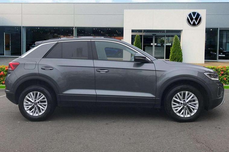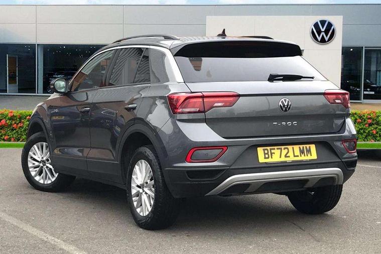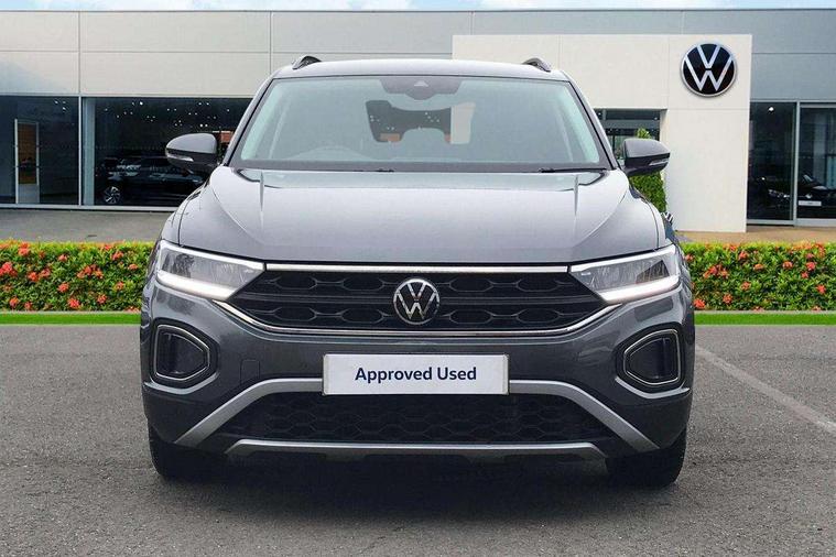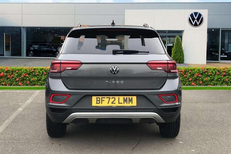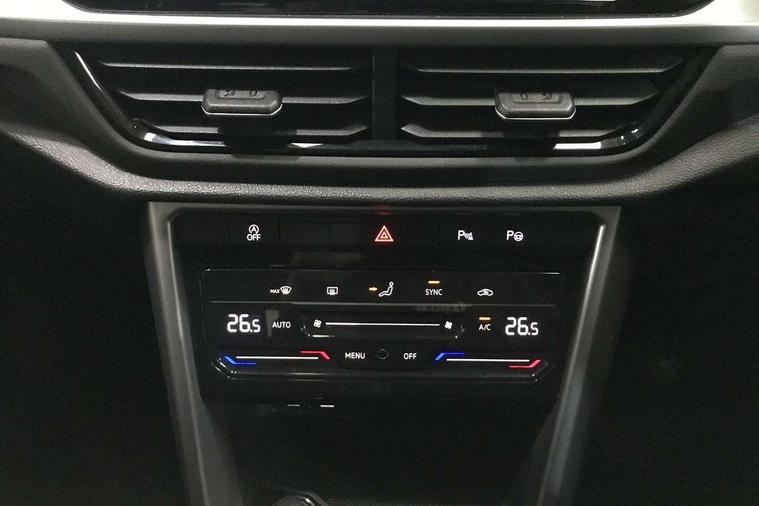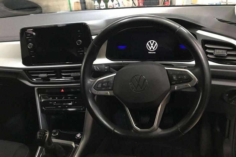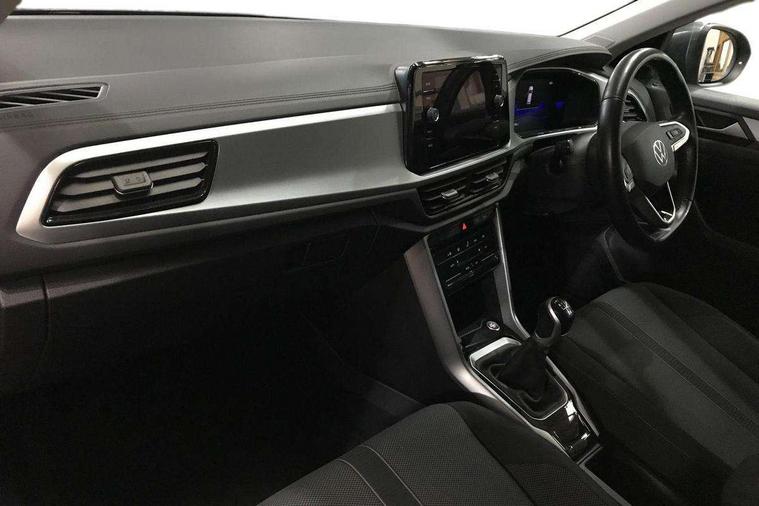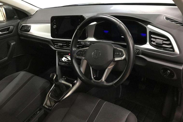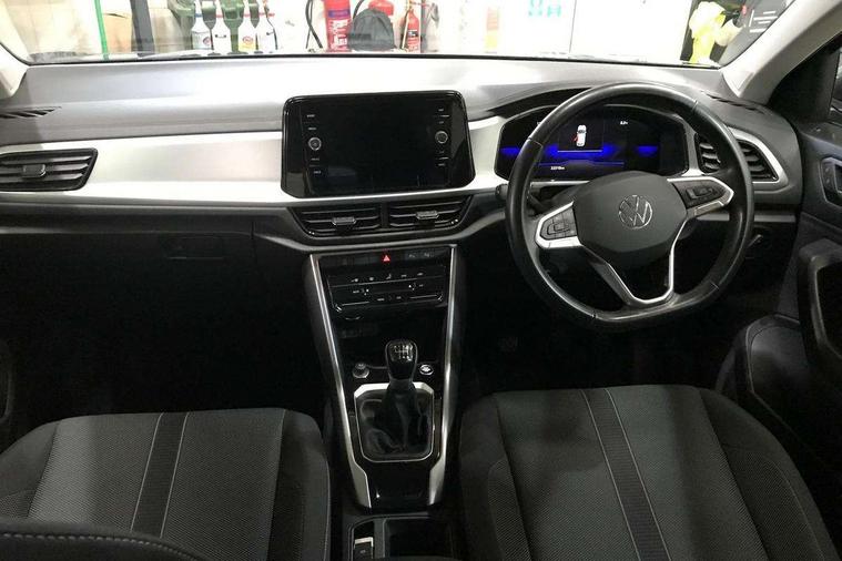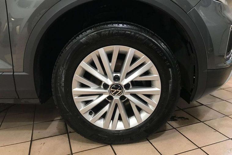 Bluetooth mobile phone interface, Driver alert system with fatigue detection, Driver tips and journey analysis, Emergency call service, Lane keeping system Lane Assist, Modified key software - reduce switch off time for key status change to Long no motion, Online services, Park assist including front and rear parking sensors, Power assisted speed sensitive steering, Service interval indicator, Tailgate/trunk lid release from outside, Think blue trainer driver tips and journey analysis, Warning sound and light for front seatbelts unfastened, Wireless app connect, Battery regeneration during braking, Front shock absorption, Rear shock absorption chassis with increased ride height, Start/stop function with battery regeneration, DAB Digital radio, Diversity antenna for FM reception, Front and rear 6 speakers, Music playback - MP3, WMA and AAC files, Premium USB cable in choice of either Apple or Android smartphone compatibility, SD card slot, Simultaneous pairing of 2 compatible mobile devices, Title and cover art display, We Connect and We Connect Plus functionality, 3rd brake light, Auto dimming interior rear view mirror, Automatic hazard lights activation under emergency braking, Automatic headlight control with LED separate daytime running lights with coming/leaving home function, Black roof rails, Body coloured bumpers and radiator grille with chrome trim and front fog lamps with chrome bezel, Body coloured exterior mirror housings and door handles, Extended roof spoiler, Exterior mirrors aspherical on driver side, convex on front passenger side, External USB type C socket and charging sockets, Front windscreen wiper with intermittent wipe and 4 position delay, Heated rear window, LED Headlights, LED rear combination lamps, LED rear number plate lights, LED tail lamp rear comination lamps, Power windows with comfort operation and circuit breaker, Rain sensor, Rear exhaust tailpipe, Rear fog light on one side and reversing lights on both sides, Rear side wing doors, Rear wash/wipe with intermittent wipe setting, Remote electrically foldable door mirrors, puddle lights and reverse activated passenger's door mirror, 12V power socket in centre console, 3 rear head restraints, 3 seat bench in 2nd row, 4 load lashing points in luggage compartment, Air care climatronic air conditoning system with active combination filter and 2-zone temperature control, Ambient lighting with mirror logo projection, Cloth upholstery, Door and side trim panel in cloth, Drawer under drivers seat, Driver/front passenger seat height adjustment, Front centre armrest, Front comfort sports seats, Front cupholders x 2, Front reading light, Instrument lighting, white adjustable panel illumination, Interior light delay, Isofix child seat preparation, Leather gearshift handle, Load-through provision with cup holder when folded down ('Unsplit rear seat bench, split folding backrest, with centre armrest), Luggage compartment lighting, Lumbar support for driver's and front passengers seat, Non-folding front passenger seat backrest, Single front passenger seat, Storage compartment in left and right luggage area, Storage compartment in rear doors, Storage compartments in driver and front passenger doors, Sunvisors with illuminated vanity mirrors, Variable boot floor, height adjustable and removable, Driver assistance pack without proactive passenger protection - T-Roc, 3 point height adj front seatbelts + pretensioners, 3 point seatbelts in outer rear with ECE label, ABS, Child locks on rear doors, Driver and front passenger airbag with front passenger airbag deactivation, Driver and front passenger safety-optimised head restraints, Drivers seatbelt reminder, Electronic parking brake, Electronic Stability Control (ESC) inc EDL (Electronic Differential Lock) and ASR (Traction Control), Front and rear passengers curtain airbag system including front side airbags, Front assist with city emergency braking and pedestrian monitoring, Front disc brakes, Front seat side impact airbags, Hill start assist, Predictive pedestrian protection, Rear disc brakes, Single tone horn, Tyre pressure loss indicator, Volkswagen roadside assistance, Alarm with interior protection, Anti-theft alarm system with interior monitoring, backup horn, and towing protection, Remote central locking with SAFELOCK, radio remote control with 2 remote control folding keys, Pewter matt decorative inserts for intrument panel, centre console and door panels at the front, Trims for alloy wheels,