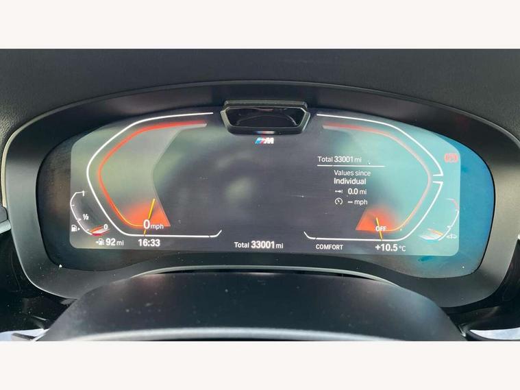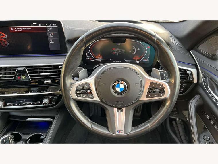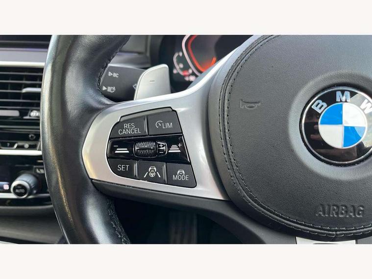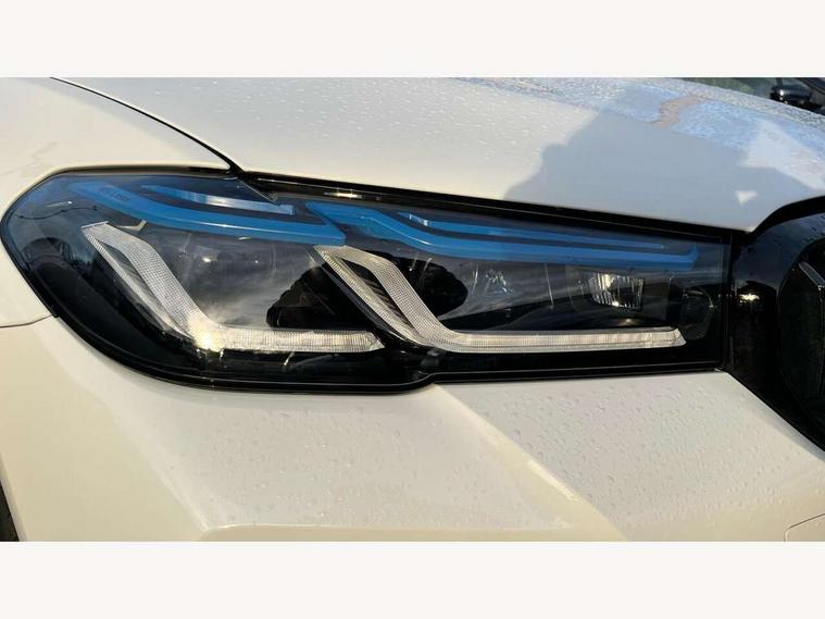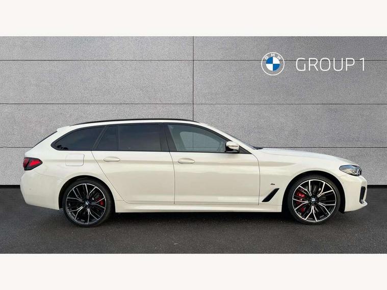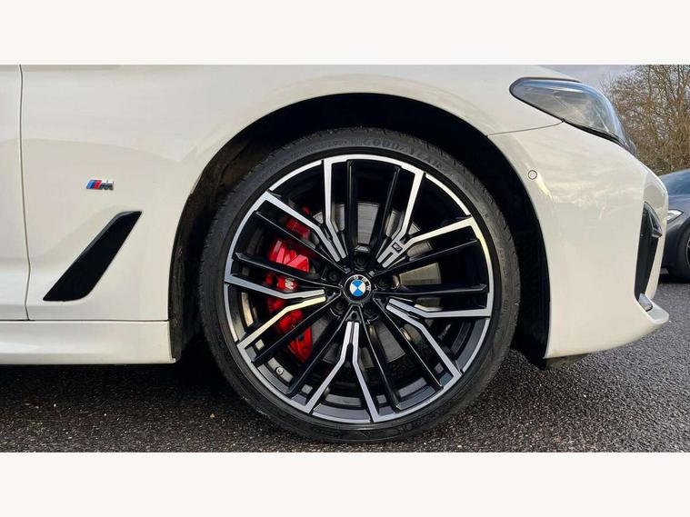 32GB hard disc drive (HDD) memory, Active Guard, BMW ConnectedDrive online services, BMW gesture control, BMW Head up display, BMW Live Cockpit Professional sat nav system with 12.3" instrument display and high resolution control display, BMW Teleservices, Brake pad wear indicator, Driving experience switch, eCall emergency call system, Electric boot lid - electrically opening/closing rear tailgate, Electric Power Steering (EPS) with Servotronic, Enhanced bluetooth with wireless charging, iDrive controller with shortcut buttons, Intelligent emergency call, Multifunctional instrument panel, Oil sensor for level and grade, On board computer inc. average speed, fuel consumption, liquid crystal Info display, journey computer, outside temperature display, personal profile, On-board diagnosis - OBD, Powered by Operating System 7.0, Service interval indicator, Stop/start button, Wi-Fi hotspot, 48V Mild hybrid technology, Drive performance control with ECO PRO comfort + sport mode, Engine cover with twin turbo designation, M sport suspension, Petrol Particulate Filter, Steptronic transmission with gearshift paddles on steering wheel, DAB Digital radio, Favourite buttons, Acoustic glazing, All round anti-corrosion system, Automatic windscreen wipers and automatic headlight, Automatically dimming rear view mirror, BMW Individual high gloss shadow line with extended contents includes kidney frame and struts in high gloss black and black chrome exhaust tailpipes, BMW individual lights shadow line, Body colour door handles, Body coloured bumpers, Door handle illumination, Dynamic brake lights with LED technology, Electric front and rear windows with fingertip open/close + anti-trap facility and comfort closing function, Electrically adjustable and heated exterior mirrors includes integrated direction indicators and automatic parking function, Folding exterior side mirror with auto- dimming, Follow me home headlight function, Heated windscreen washer jets, High beam assistant, High gloss black active air stream kidney grille, High gloss shadow line roof rails, Independent opening for tailgate window, LED daytime running lights, LED third brake light, M designation on front side panels, left and right in chrome, M Sport exterior styling, Rear side wing doors, Rear wiper, Sun protection glazing, Trapezoidal visible exhaust tailpipes, xDrive designation on tailgate, 12V power socket in front and rear, 3 seat bench in 2nd row, 40/20/40 split folding rear seats with additional mechanism in luggage compartment, Anthracite headlining, Armrest - front and rear integrated door trim, centre console includes storage compartment, rear centre includes 2 cupholders, Child seat ISOFIX attachment with rear outer seats includes top tether, Cup holders (2 front and 2 rear), Front and rear footwell lights, Front reading lights, Height and length adjustable steering column and activation via lateral lever on the steering column, Lockable glove compartment with light, M door sill finishers, M specific pedals, M specific velour floor mats, Multifunction controls for leather steering wheel, Rear headrests, Retractable luggage compartment dividing net, Single front passenger seat, Three spoke sport M leather steering wheel, Ambient lighting pack - 5 Series, Connected package professional - 5 Series, M Aerodynamic pack - 5 Series, Airbags - driver/front passenger, rear and side, first and second row seats head airbags, front passenger seat airbag deactivation, Anti-lock braking system (ABS), Automatic Stability Control (ASC), Brake assist function, Brake energy regeneration, Cornering brake control (CBC), Crash sensor activating central locking release, hazard warning lights, fuel cut off and interior lighting, Deformation zones - front and rear with door reinforcements and bumpers up to 2.5 mph, DSC - Dynamic Stability Control, Dynamic brake control, Dynamic Traction Control - DTC, Electromechanical parking brake with automatic drive away release and auto hold function, Electronic brake force distribution, Engine drag torque control, Front and rear brake discs with interior ventilation, Front head restraints with anti-whiplash, Hill start assist, M Sport seatbelts, Mechanical child proof lock on rear doors, Passive protection for pedestrians, Rear door child safety locks, Side impact protection, Three point seat belts for all four seats, Two tone horn, Tyre pressure indicator, Warning triangle and first aid kit, Alarm system (Thatcham 1) with remote control and electronic engine immobiliser, Locking wheel bolts, 20" M Y-spoke bicolour light alloy wheels with run flat tyres - style 846 M,