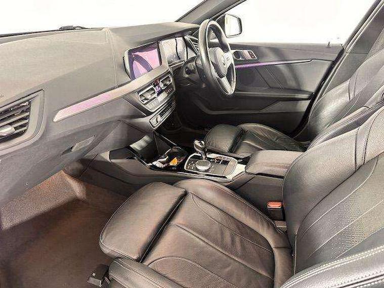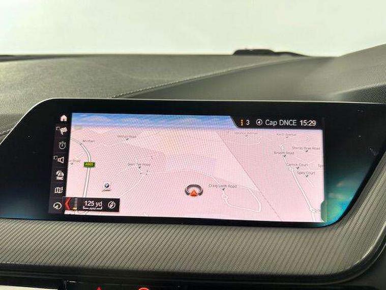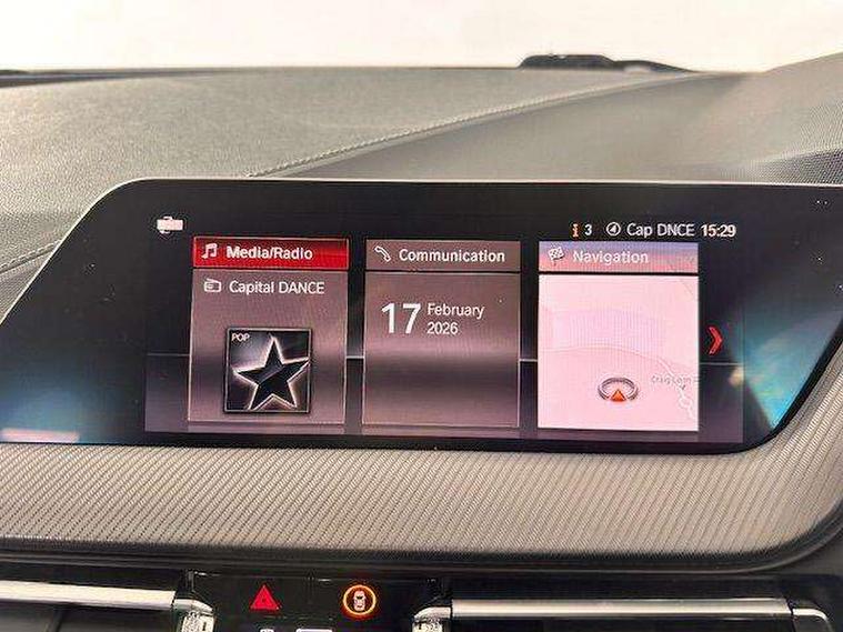 Active guard plus, Attentiveness assist, BMW Online services, BMW Teleservices, Check Control warning system for monitoring of lights and door/luggage compartment open warning, Connected eDrive Services, Eco pro mode, Electric power steering with Servotronic steering optimised at all speed ranges, Integrated owners handbook, Oil sensor for level and grade, On board computer, Optimum shift indicator, Personal Profile, Pull away assistant, Speed limiter, Aluminium lightweight construction, Anti roll bar front and rear, Balancer shaft, Double VANOS, Drive Performance Control, Electronic differential lock, High precision injection, M sports suspension + self levelling, Petrol Particulate Filter, VALVETRONIC engine management, Bluetooth audio streaming, DAB Digital radio, Auto dimming rear view mirror, Automatic headlight beam throw control, Body colour door handles, Body colour mirror caps, Chrome 'M' logo side designation, Chrome exhaust tailpipe in single, round (Exhaust tailpipe, stainless steel - single, round), Chrome kidney grille frame with Satin Aluminium struts, Direction indicator side lights in exterior mirrors, Electric folding and anti dazzle exterior mirrors, Fading support, Follow me home headlights, Front and rear electric windows with open and close fingertip control, anti trap facility and comfort closing, Front door sill finishers in black plastic with BMW designation, Green tinted heat protection glazing, Heated, electrically adjustable exterior mirror aspheric on driver side, convex on passenger side, High gloss shadow line exterior trim, High gloss shadowline window frame, Recess cover mirror frames and B/C pillar embelisher trim, High level third brake light, LED daytime running lights, LED eyebrow turn indicators, LED front fog lights, Lightweight engineering, Matt black air guide grilles, Model designation on right side of tailgate, Nearside reverse light in rear light cluster, Rain sensor including auto headlights activation, Rear fog lights, Rear window wiper, Shark fin antenna, Visible VIN plate, Welcome lighting, Windscreen wipers with integrated washing jets, 12V power socket in centre console, 2 cupholders in front centre console, 3 rear seat head restraints, 3 spoke M sports design leather steering wheel finished in nappa leather with specific M badge, Anthracite headlining, Anthracite Velour floor mats, Child seat ISOFIX attachment for two outer rear seats and front passenger seat with anchorage points, Conditioned based service, Dakota leather upholstery with perforation and contrast stitching, Driver and front passenger seat heating, Driver side folding compartment in instrument panel, Folding rear clothes hook, Folding rear seats, Four grab handles integrated in roof lining, Front and rear door pockets, Front and rear side armrest integrated into door trim, Front armrest foldable with integrated storage compartment, Front sports seats with electric side bolster adjustment, Glove compartment, Height adjustable front head restraints, Manual adjust steering wheel, Multi-function controls for steering wheel, Rear seat backrest with manual 60:40 split folding with 3 top tether clips integrated on rear of seat panels, Storage compartment in centre console, Sun visors with vanity mirrors and insert tab, Two zone automatic air conditioning, Extended Lighting pack - 1 Series, Extended storage pack - 1 Series, Interior lights pack - 1 Series, Luggage compartment pack - 1 Series, M Sport exterior styling aerodynamics pack - 1 Series, 2 tone horn, 3 point seatbelts on all seats, front pyrotechnic belt tensioners, stopper and belt force limiters, rear coded belt buckles, Airbags - Front driver and passenger, front and rear head, front side, curtain head protection, Anti lock braking system (ABS) with brake assist, BMW emergency call, Brake drying, Braking readiness, Crash sensor activating central locking release, hazard warning lights, fuel cut off, interior lighting + activation of safety battery terminal clamp, Driver and front passenger seat belt security check, Dynamic stability control + (DSC+), Dynamic Traction Control - DTC, Electrically operated hand brake, Front and rear disc brakes, Front passenger manual airbag deactivation, Rear child proof door locks, Seatbelt warning, Side impact protection, Tyre pressure monitoring system, Warning triangle and first aid kit, Automatic drive away locking facility, Central locking switch for all doors, fuel filler cap and luggage compartment, Deadlocking function system to all doors, Locking wheel bolts, Remote control with integrated key with High-gloss Black inlay and M designation and 1 button for open/ close lock, window, open luggage compartment, Start/stop button with comfort go keyless engine start and auto start stop deactivation button, Thatcham Cat.1 alarm and immobiliser, Contrast stitching on instrument panel, Reduced rolling resistance tyres,