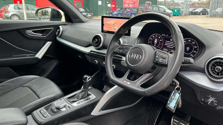 Audi connect navigation and infotainment includes innovative services, Audi connect remote and control connects your vehicle to your smartphone, Audi drive select - Power steering assistance + engine + gearshift, Audi drive select with efficiency, Audi smartphone interface, Audi virtual cockpit, Automatic start/stop system with recuperation, Bluetooth interface includes bluetooth audio streaming, Cruise control, E-call, MMI navigation plus with MMI touch, Power operated tailgate, Progressive steering, Rear parking sensors, 2 x SDXC card reader, 6 passive loudspeakers, DAB Digital radio, DVD Drive, Auto dimming rear view mirror, Black window trims, Bumper in full body colour paint finish, Electrically adjustable, folding, auto dimming and heated door mirrors with integrated LED side indicators, Front windscreen with grey tinted sunband, LED daytime running lights, LED headlights with LED rear lights, LED third brake light, Privacy glass - dark tinted rear and rear side windows from B-pillar backwards, Rear side wing doors, Rear wiper, Variable front intermittent wipers, Wheel arch trims in manhattan grey, 12V socket in front, 3 seat bench in 2nd row, 3 spoke flat bottomed multi-function leather sport steering wheel with gear shift paddles, 4-way electric lumbar support for front seats including seat height adjustment for both front seat, 60/40 split folding rear seat bench, Black cloth headlining, Front and rear head restraints, Front centre armrest, Front/rear floor mats, Height/reach adjust steering wheel, Illuminated door sill trims with S logo, Single front passenger seat, Stainless steel pedals, Black styling pack - Q2, 3x3 point rear seatbelts, 6 airbags - Front, curtain and front side airbags, Electromechanical parking brake, Electronic stabilisation control including ABS, ASR and EDL, Front passenger airbag deactivation, Hill hold assist, Pre-sense front with pedestrian recognition, Seatbelt monitoring, Tyre pressure warning light, Warning triangle and first aid kit, Anti theft alarm, Anti theft wheel bolts, Manual child locks, Remote central door locking, Aluminium interior element, Matt brushed aluminium trim inlays, Tool kit,