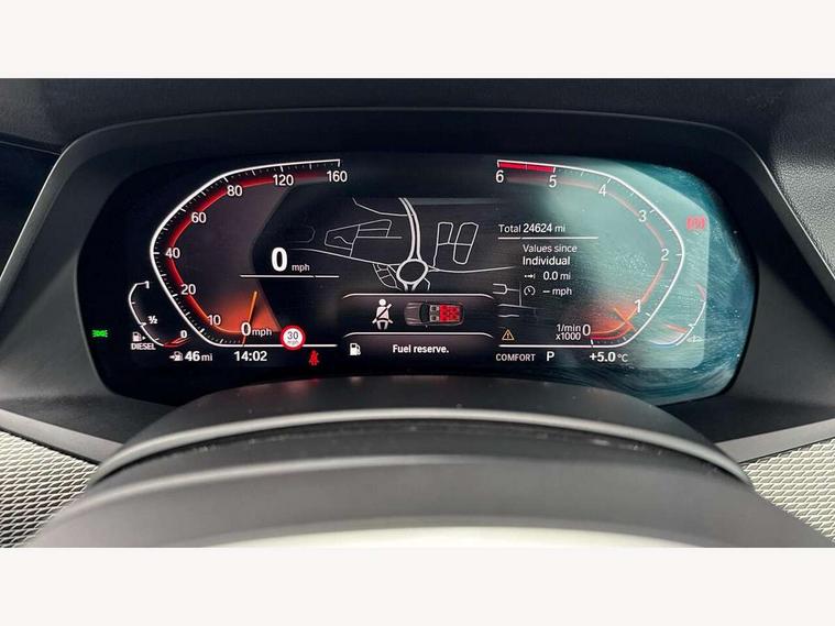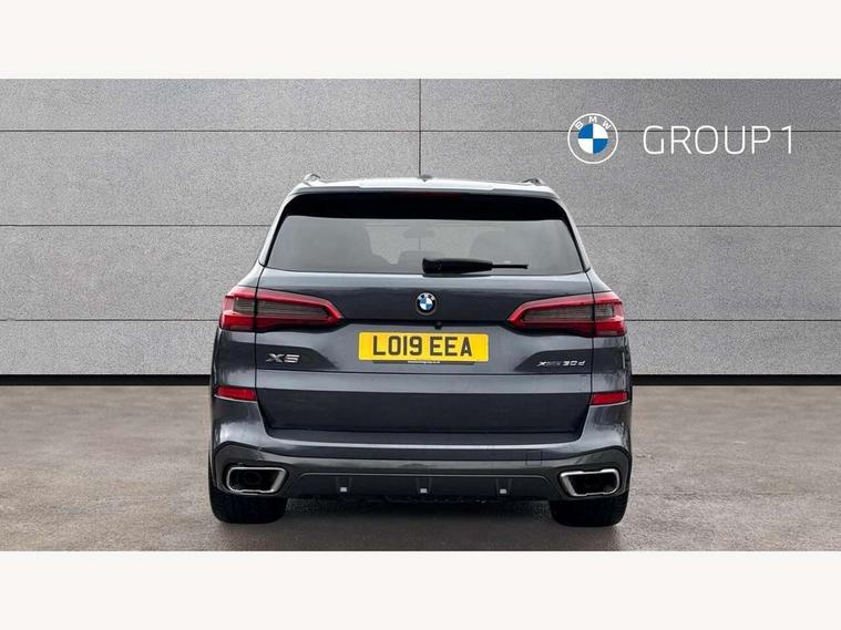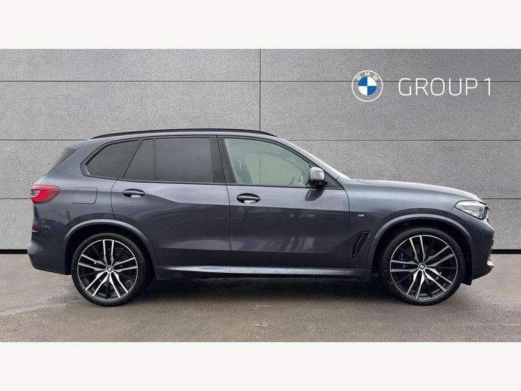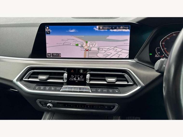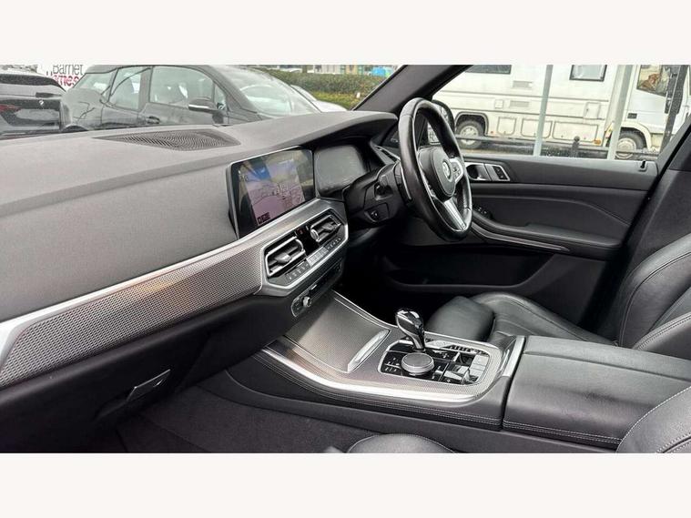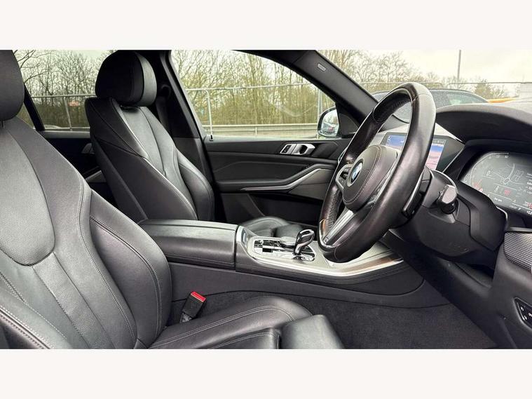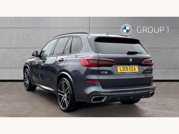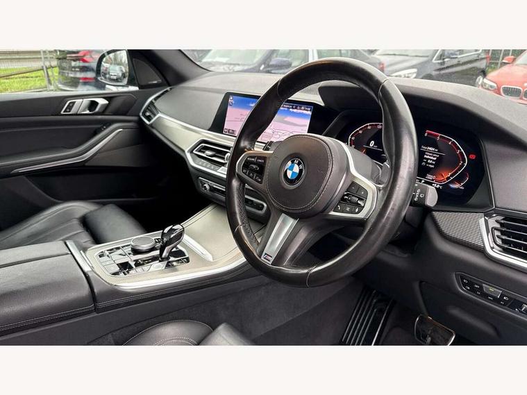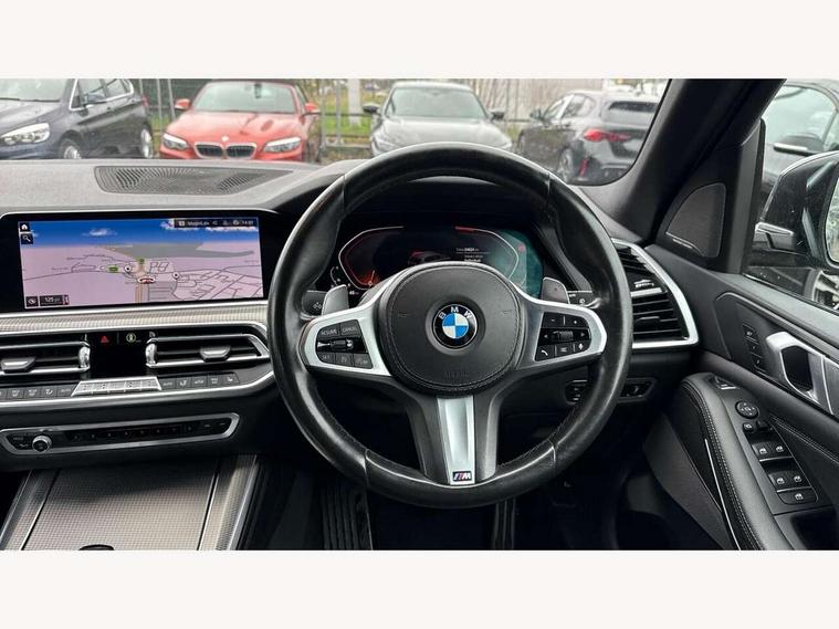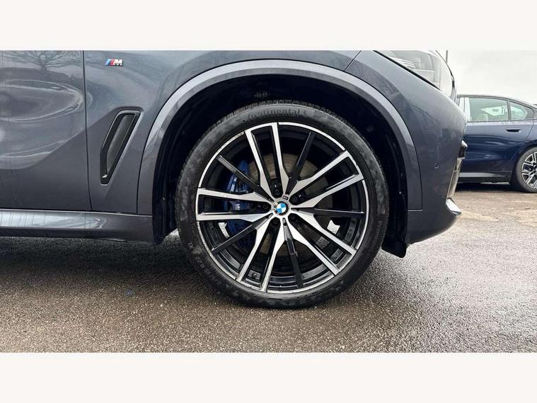 20GB hard disc drive (HDD) memory, Active guard plus, Attentiveness assist, Automatic tailgate with top hinged section open and manual bottom hinged section, BMW digital live cockpit professional - 12.3" digital instrument panel and 12.3" CID, with touch/voice command, BMW legal emergency call, BMW Online services, BMW Teleservices, Brake force display, Brake pad wear indicator warning light, Cruise control with brake assist, Enhanced bluetooth hands free facility with Telephony wireless charging, Front/rear park distance control, iDrive touch controller with shortcut buttons, Lights on warning, Oil sensor for level and grade, On board computer inc. average speed, fuel consumption, liquid crystal Info display, journey computer, outside temperature display, personal profile, Service interval indicator, Speed limiting function, Wi-Fi hotspot, Adaptive 2-axle air suspension, Diesel particulate filter, Double wishbone front axle, Drive performance control with ECO PRO comfort + sport mode, Safety battery terminal clamp, Sport automatic transmission, DAB Digital radio, Favourite buttons, Gesture control for infotainment system, USB connection, USB type A 1.5A in cupholder, USB Type C 3A in centre armrest, Active Air Stream kidney grille with high-gloss chrome, Adaptive air flap control bar in high-gloss black, Automatically dimming rear view mirror, Body colour bumpers, Body colour door handles, Body colour mirror housing, Dynamic brake lights with LED technology, Exhaust tailpipes - single, left and right with Chrome finisher, Follow me home headlights, Front and rear electric windows with open and close fingertip control, anti trap facility and comfort closing, Heat insulated glass, Heated windscreen washer jets, High gloss black outer and central air intakes on front bumper with pearlescent chrome finish, High gloss black Side elements, Intermittent rear wash/wipe, LED daytime running lights, LED fog lights, LED rear lights, M aerodynamic body styling, M designation on left and right front side panels, Pearlescent chrome front grille bars, Rain sensor with automatic headlight activation and windscreen wiper control, Satin aluminium side window graphic, Third brake light in rear spoiler, Welcome light carpet, X5 on left tailgate, xDrive designation on right tailgate, 12V - Power sockets with 2x centre console and 1x luggage compartment, 40:20:40 split folding rear seats, Ambient interior lighting with 6 pre-designed selectable lights including dynamic function, Anthracite headlining, Centre and rear interior light, Child seat ISOFIX attachment with rear outer seats includes top tether, Compartment in front of cupholder, Electric adjustable front seats + driver memory, Electrical steering column with adjustable height and length with activation and control on the steering column, Foldable rear centre armrest with 2 cupholders and storage compartment, Front and rear cupholders x 2, Front and rear door pockets, Front and rear door sill finishers with illuminated BMW designation, Front and rear door sill inlays with illuminated BMW M designation, Front and rear side armrest integrated into door trim, Front footwell lights, Front reading lights, Gearshift paddles on steering wheel, Light inside glove compartment, Lockable glove compartment, Luggage compartment floor panel with integral storage tray, Luggage compartment lighting, M leather steering wheel, M specific key, M specific pedals, M specific steering wheel, M specific velour floor mats, Make-up mirror lights, Multifunction controls for leather steering wheel, Multifunctional hooks, Seat back with flap pocket, Securing rings in luggage compartment, Storage bins on all doors, Storage tray and compartment with cover in centre console, Sunvisors with illuminated vanity mirrors, Toolkit located in luggage compartment, Connected Package Professional - X5, Expanded exterior mirror pack - X5/X5 M, Non-smokers pack - X5, ADB - Automatic Differential Brake, Airbags - driver/front passenger, rear and side, first and second row seats head airbags, front passenger seat airbag deactivation + knee airbag, Anti-lock braking system (ABS), Automatic Stability Control (ASC), Brake drying, Brake energy regeneration, Brake fade compensation, Braking pre-tensioning, Cornering brake control (CBC), Crash sensor activating central locking release, hazard warning lights, fuel cut off, interior lighting + activation of safety battery terminal clamp, Deformation zones - front and rear with door reinforcements and bumpers up to 2.5 mph, DSC - Dynamic Stability Control, Dynamic brake control, Dynamic Traction Control - DTC, Electromechanical parking brake with automatic drive away release and auto hold function, Electronic brake force distribution, Front and rear seatbelts with seatbelt stopper, seatbelt tensioner for front and outer rear seats and belt force limiter, Front head restraints with anti-whiplash, Height adjustable front seatbelts, Hill start assistant, Integrated brake system, M Sport braking system in blue high gloss + blue painted brake calipers with M designation, Mechanical child proof lock on rear doors, Passive protection for pedestrians, Seat occupancy detection for driver and passenger side, Side impact protection, Three 3 point inertia reel seatbelts, Two tone horn, Tyre pressure monitoring system, Ventilated front and rear disc brakes, Warning triangle and first aid kit, Closing system with central locking, Driver and front passenger door centre lock switch, Locking wheel bolts, Remote central locking, Thatcham 1 alarm system with remote control and engine immobiliser, Start/stop toggle diamond shaped trim finisher in pearl chrome,