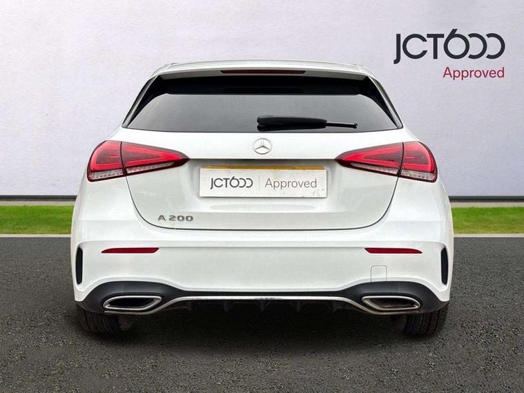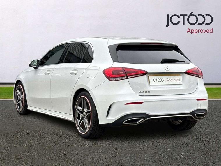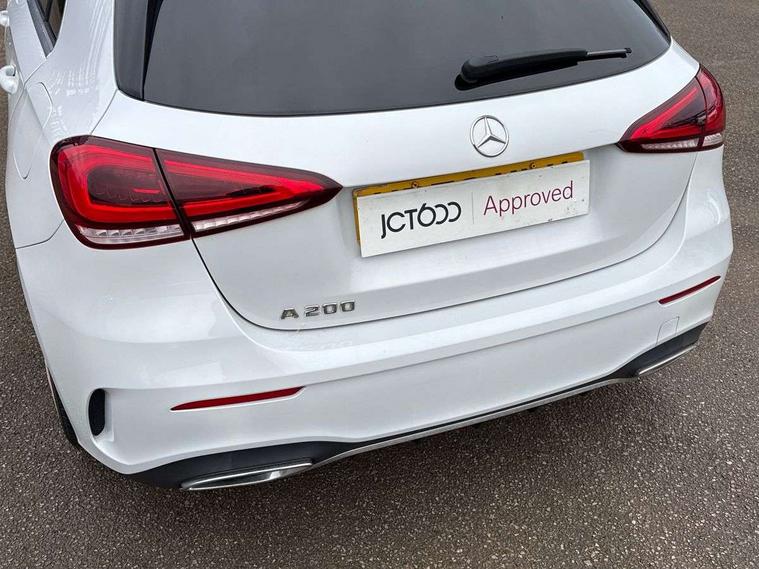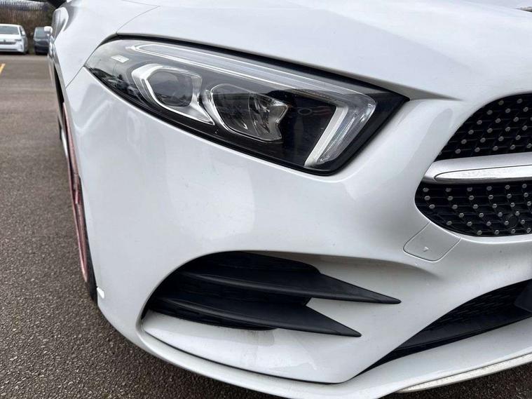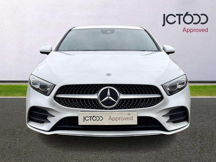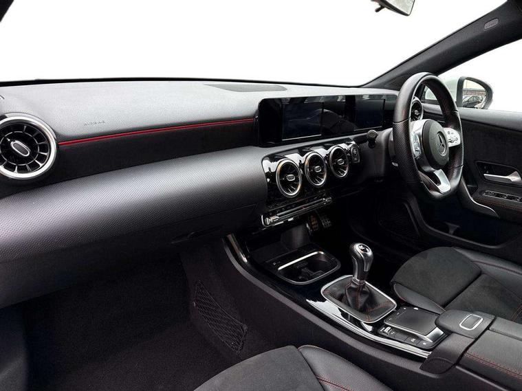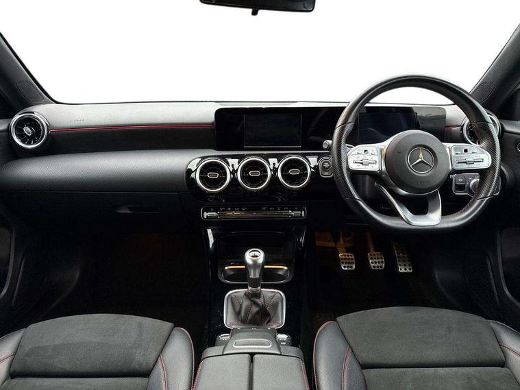 180 degree rear view camera with parking guidelines, 7" colour screen in instrument panel, 7" touchscreen media display, Active lane keep assist, Attention assist, Brake pad wear indicator warning light, Car wash mode, Cruise control + speed limiter, Direct steering, Dual bluetooth interfaces, DYNAMIC SELECT with a choice of driving modes (ECO, Comfort, Sport and Individual), ECO start/stop function, Fluid level warning indicator for fuel, oil, coolant and washer fluid, Hard-disk navigation, Hey Mercedes Voice activation, Lamp failure indicator, Mercedes me connect including emergency call system, accident recovery, breakdown and maintenance management, Outside temperature gauge, Owners manual in English, Pre-installation for private car sharing, Pre-installation for Vehicle Monitoring, Pre-installation for Vehicle Setup, Preinstallation for Mercedes Benz link, Service indicator (ASSYST), Speed sensitive power steering, Trip computer, Lowered comfort suspension, Rear axle torsion beam, 2 USB ports (type C) in rear stowage compartment and one in front of center console, 6 speakers, DAB Digital radio, MBUX multimedia system with DAB digital radio and touchpad including satellite navigation, Mercedes-Benz sound system - 100W, 4 Electric Front and Rear windows, Adaptive brake lights, AMG bodystyling - Front apron with splitter in chrome, rear apron with chrome trim and chrome visible trim elements in tailpipe, Black weather strip, Body colour bumpers, Body colour door handles, Body colour side skirt, Body coloured door mirrors, Chrome beltline trim, Diamond radiator grille with chrome pins and silver louvre + chrome insert, Electric adjustable and heated door mirrors with integrated LED side indicators, Exhaust system - Twin visible tailpipes in polished stainless steel, Headlamp assist automatic headlamp activation, Heated glass rear windscreen + timer control, LED high performance headlamps with integrated LED daytime running lights, LED tail lamp, LED third brake light, Privacy glass, Radio aerial, Rain sensing windscreen wipers with two sensitivity settings, Rear fog lights, Rear wiper, Window line trim strip in chrome, 3 Spoke flat bottom leather multi function steering wheel with perforated leather in grip area, 40:20:40 split folding rear seats, Artico man-made leather/Microfibre Dinamica upholstery with red contrast stitching, Auto Mercedes-Benz child seat recognition sensor, Black air vents with surround in silver chrome, Black roof lining, Brushed stainless steel sports pedals with rubber studs, Controller on centre console with chrome surround, Floor mats with stitched edging and AMG lettering, Front centre armrest with storage compartment, Front door sills with Mercedes Benz lettering, Front seat backs luggage nets, Front seat cushion length adjustment, Heated front seats, Height/reach adjustable steering column, Interior mirror with reading lamps in black and frameless, Manual height adjustable front seats, Rear head restraints, Seat occupancy sensor for front passenger seat, Sports seats with integrated headrests, Sunvisors with illuminated vanity mirrors, Touchpad on center console, Twin front cupholders, Two zone thermotronic luxury automatic climate control, Light and sight pack - A Class, Seat comfort pack - A Class, 3 rear 3 point seatbelts, ABS with Brake Assist, Active bonnet, Active brake assist includes forward collision warning system with autonomous braking, Adaptive brake assist with hold function and hill start assist, Black seatbelts, Childproof locks manually operated for rear doors and electrically operated for rear power windows, Crash responsive emergency lighting, Driver and passenger head and side airbags, Drivers knee airbag, Dual stage driver/passenger airbags, Electronic parking brake, ESP curve dynamic assist, ESP with ASR, Front and rear seatbelt reminder, Front brake callipers with Mercedes Benz lettering, ISOFIX and top tether child seat fixing points in two outer rear seats, Tyre pressure monitoring system, Warning triangle and first aid kit, Window airbags, Alarm system/interior protection/immobiliser, Keyless Go, Remote central locking and crash sensor with emergency opening function, Urban guard vehicle protection system with immobiliser and interior protection, Dinamica microfibre trim in black, 18" AMG 5 twin spoke light alloy wheels in titanium grey with highsheen finish, Summer tyres, Tirefit sealant kit,