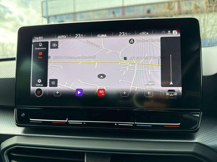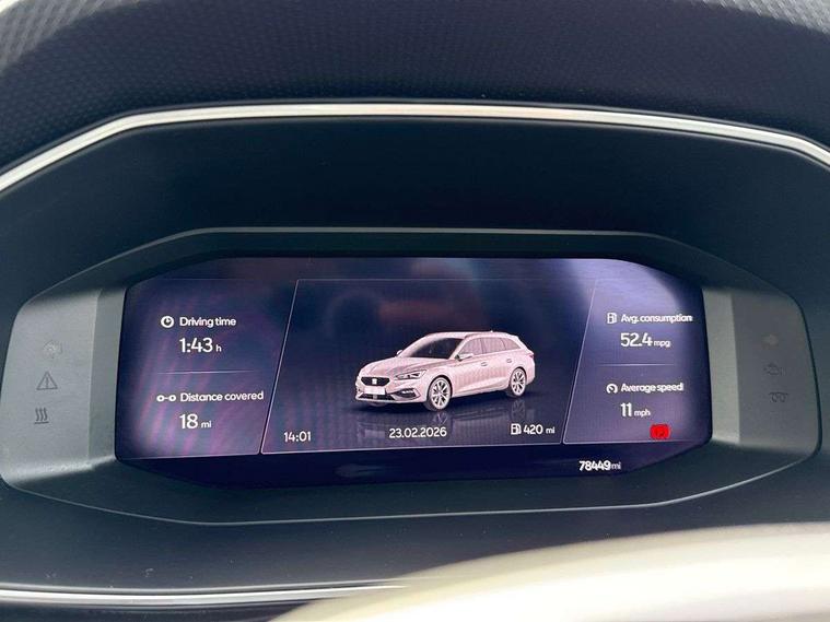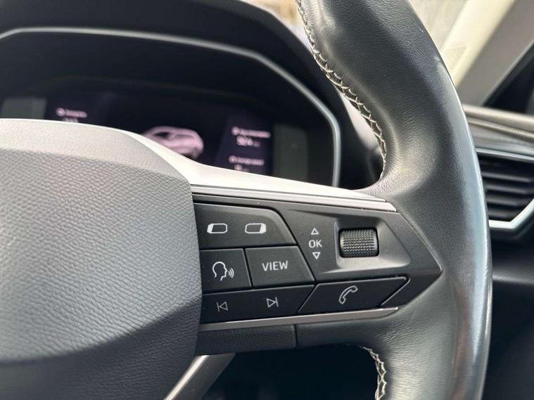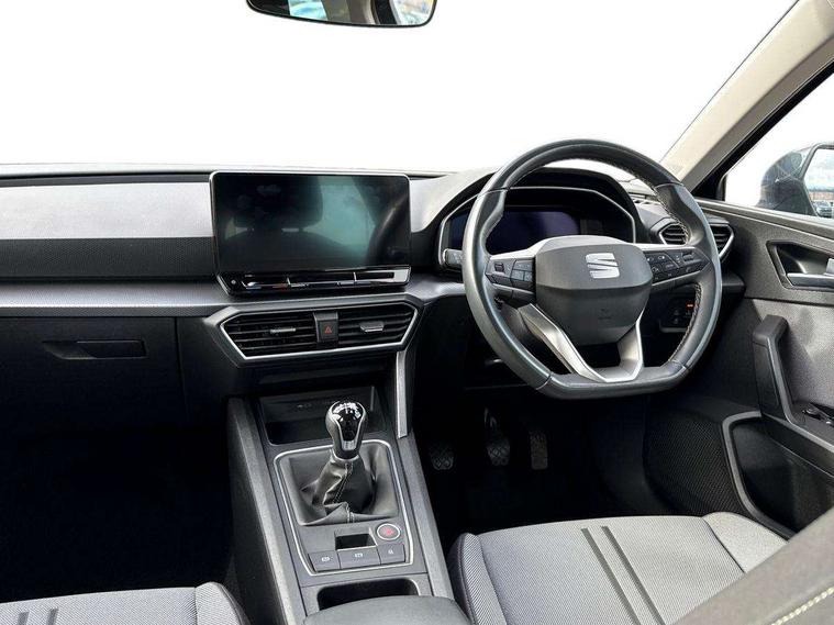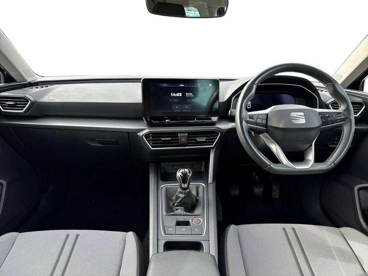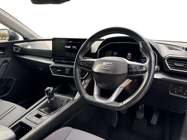 Cruise control with speed limiter, Digital cockpit, E-call, Front assist with forward collision warning braking reaction to vehicles, pedestrians and cyclists, Full link smartphone integration with Mirror Link, wireless Apple CarPlay and wired Google Android Auto, Lane assist, Lockable tailgate, Park assist (inc front/rear parking sensors), Power assisted speed sensitive electro-mechanical steering, RPM, trip computer, outside temp gauge, instrument light brightness, low fuel warning light, lights on reminder, gearshift indicator, Service interval indicator, Start/stop system with regenerative braking, Standard suspension, XDS electronic differential lock and dynamic traction support, 7 speakers, Auxiliary input socket, Body colour door handles, Body coloured bumpers, Body coloured exterior mirrors with integrated LED indicators, Dark tinted rear windows, Dynamic headlight range control, Electric front/rear windows, Electrically adjustable and heated door mirrors, LED front fog lamps with cornering function, LED headlights and LED tail lights, LED rear fog lamp, Manual dimming rear view mirror, Matt black roof rails, Rain sensor, Rear coast to coast lighting, Rear side wing doors, Rear wash/wipe, Separate daytime running light with automatic headlight control, Third brake light, Welcome light silhouette from exterior mirrors, 12V Accessory socket in the load area, 12v power point in centre console, 3 seat bench in 2nd row, 60/40 split rear bench seat, Driver seat lumbar adjustment, Driver/passenger manual seat height adjustment, Dust/pollen filter, Four x USB Type C ports, Front and rear height adjustable headrests, Front and rear reading lights X 4, Front centre armrest, Front seatback storage pockets, Grey headlining, Height/reach adjust steering wheel, Illuminated glove box interior lighting, ISOFIX points in outer rear seats with top tether anchorage points, Leather flat bottomed, perforated steering wheel and leather gearstick, Luggage tie-down hooks, Single front passenger seat, Sliding boot cover, Sunvisors with mirror, Three zone climate control, Two tone cloth upholstery, Media system plus with navigation - Leon, 3 point seatbelts on all rear seats, ABS, Brake control system - ESC and brake booster, Child proof door locks, Driver and front passenger airbags with front passenger airbag de-activation, front side and curtain airbags, Electronic parking brake, Extended safety system - seat belt tensioner, window closure and hazard lights, Hill hold control, Rear disc brakes, Seat belt reminder for front and rear seats, Tiredness recognition system, driver alert system, Tyre pressure monitoring system, Anti theft alarm system with interior monitoring in cab, backup horn and towing protection, KESSY Go (Keyless start), Locking wheel bolts, Chrome interior detailing, 17" Dynamic tri-spoke alloy wheels with 91W tyres, Tool kit,