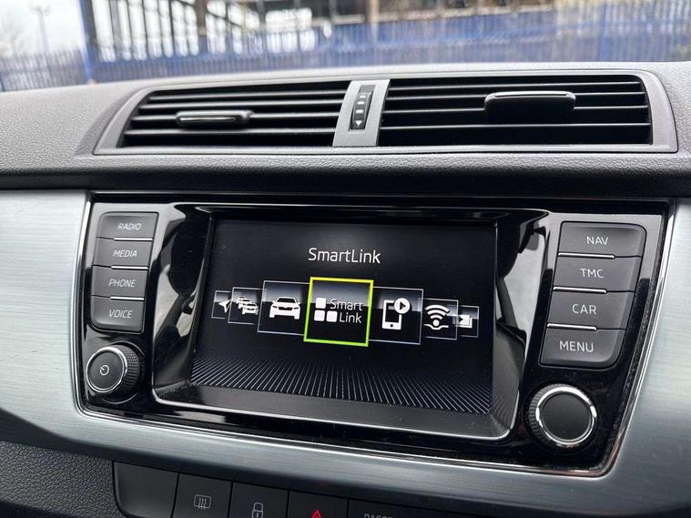 Bluetooth system, Cruise control, Exterior temperature gauge, Front assistant collision mitigation, Multi function trip computer, PAS, Service interval indicator, SmartLink, 6.5" touchscreen, Auxiliary socket for external MP3 player, Bolero Radio, DAB Digital radio, SD card slot, USB interface, Body colour bumpers, Body colour door handles, Chrome grille surround, Electric front windows, Electrically adjustable and heated door mirrors, Heated rear window, Height adjustable headlamps, Intermittent rear wash/wipe, LED daytime running lights, Tinted rear windows, Tinted windscreen, 1.5L bottle holder in front door panels, 2 height adjustable rear headrests, 3 spoke multifunction leather steering wheel + audio controls, 60/40 split folding rear seat, Boot stowage box, Cargo area storage tray, Cloth upholstery, Driver + passenger vanity mirrors, Folding grab handles, Front reading lights, Height adjustable driver's seat, Height adjustable front headrests, Height adjustable passenger seat, Height/reach adjust steering wheel, Interior light with delay, Leather gearshift, Leather handbrake, Lower glovebox cover, Luggage load hooks, Parcel shelf, Pollen filter, Rear courtesy light, Rear storage trays, Ticket holder, Two rear outer seat isofix location points, Umbrella under front passenger seat, Arkamys surround sound pack - Fabia, Chrome Pack - Fabia, 3x3 point rear seatbelts, ABS, Curtain airbags, Driver and passenger airbags, Driver and passenger side airbags, EDS, ESC with ASR, Front seatbelt pretensioners, HBA (Hydraulic Brake Assist), Passenger airbag deactivate switch, Seatbelt warning, Tyre pressure monitor, Alarm with interior monitoring, Immobiliser, Locking wheel bolts, Remote central locking,