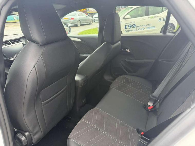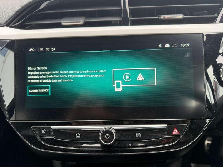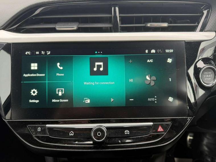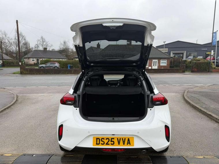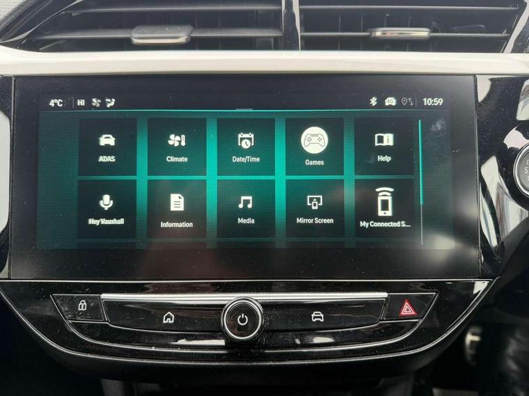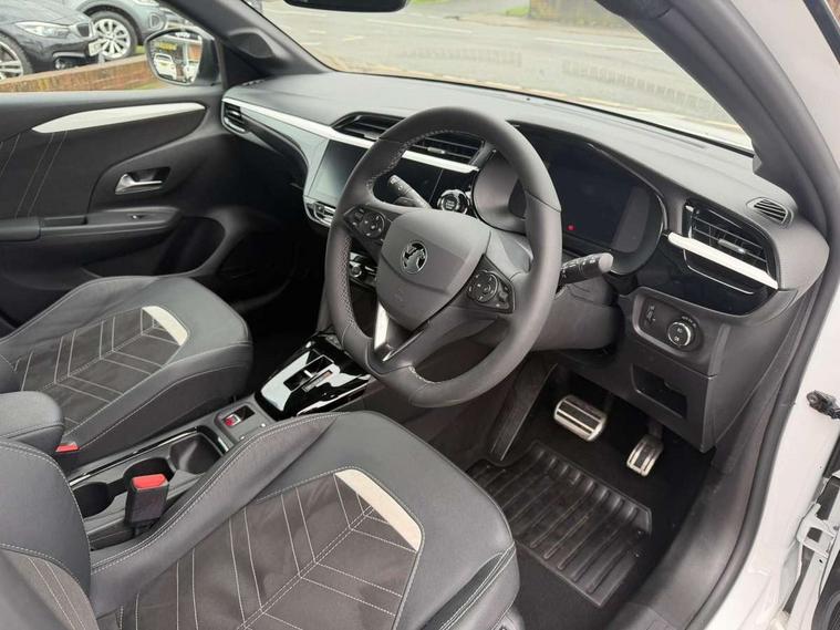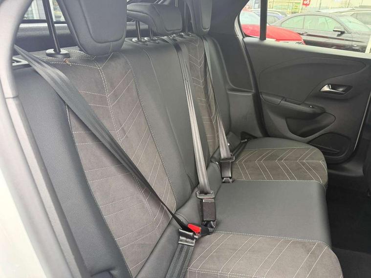 180 degree panoramic rear view camera, 2D/3D street level mapping, 7 inch digital instrument cluster display, Adaptive cruise control with intelligent speed limiter, Auto tele unit 3S vehicle communication system, Breakdown call (b-call), Central facia display with digital clock, outside air temperature and audio information, Drive modes (sport, normal, eco), Driver drowsiness alert system, E-call, Engine oil life indicator, Enhanced traffic sign recognition, European coverage, Extended speed sign recognition, Front and rear parking sensors, Front camera system, Instrumentation - Speedometer, rev counter, low fuel gauge warning light + water temperature gauge warning light, Lane departure warning, Lane keep assist, Lane positioning assist, Lights on audible warning, Live nav plus-Tom Tom, Real time traffic, parking prices, weather forecast, fuel prices, search for changing station, road safety alerts and speedcam alerts, MAP OTA updates, Multi function trip computer, POI (search), Pre conditioning of vehicle temperature, RDS with traffic programme, Remote check of battery level programming and charge management, Service indicator, Side blind spot alert, Smartphone projection, Speed sensitive power steering, Start/stop system, Vauxhall connect box, Vehicle status and information, Voice recognition, Wireless Apple CarPlay/Android Auto, Electronic returnless fuel system, Petrol Particulate Filter, Under body shield for aero, AM/FM stereo radio, Bluetooth A2DP audio streaming function (Advanced audio distribuition profile), DAB Digital radio, Multimedia Navi with 10-inch touchscreen, Rear USB port, Six speakers, Steering wheel audio, phone and cruise controls, USB type C port, 3rd brake light, Automatic headlamp levelling, Automatic headlight control system, Black door mirror housings, Black Griffin logo and vizor frame, Black lower side window mouldings, Body colour door handles, Body colour front and rear bumpers, Bonnet/headlight/wiper structure, Corsa lettering in tailgate, Dark tinted rear side windows + tailgate window, Electrically adjustable and heated door mirrors, Electrically folding door mirrors, Electrically operated front and rear windows with safety auto reverse and one touch up/down facility, Electrochromic automatic anti-dazzle rear view mirror, Glazed tailgate and heated rear window with wash/wipe facility, Hazard warning lights, Headlamps for left side traffic, High beam assist, High gloss black finish B pillar, High gloss black honeycomb lower grille with black badging, Intelli-Lux Matrix LED Headlights, LED daytime running lights, LED front fog lights, LED tail lamp, Rain sensitive windscreen wipers, Rear fog lamp, Rear reversing lights, Rear side wing doors, Rear wiper, Shark fin aerial, Solar heat absorbing windscreen and windows, Sports front and rear body styling for upper and lower bumper design, Two speed windscreen wipers with variable intermittent wipe, Windscreen and side window demist vents, 12V power sockets, 3 bench rear seats in 2nd row, 4 speed fan with illuminated controls, 6 way manual adjustable co-driver seat height up/down, reach fore/aft, backrest upright/recline, 6 way manual adjustable driver seat with massage function height up/down, reach fore/aft, backrest upright/recline, 60/40 split folding rear seat, Alloy effect sport pedals, Black headliner, Cabin particulate filter - removes dust, airborne particles and pollen, Comfort front seats, Driver's seat lumbar support, Driver/passenger sunvisors with vanity mirrors + covers, Electronic climate control (ECC), Flat bottomed steering wheel, Four adjustable facia vents, Front centre armrest with storage, Front cupholder, Front headrests, Height adjustable head restraints, Illuminated glovebox with lid, Interior courtesy light, Internal chrome door handles, LED ambient lighting, LED boot light, Polyurethane gear knob/lever, Reach and rake adjustable steering column, Rear cupholder, Rear headrests, ReNewKnit upholstery, Right hand drive (RHD), Single dome lamp with dual front reading lamps, Single front passenger seat, Standard floor mats, Two litre open door pockets, Vegan leather steering wheel, Winter pack - Corsa, 3 rear 3 point seatbelts, Anti-lock braking system (ABS), Cornering brake control, Deactivation switch for front passenger's airbag, Drag torque control, Driver and front passenger airbags, front seat side impact airbags, full size curtain airbags, EBD - Electronic brakeforce distribution, Electrical child lock system in rear door latch, Electronic parking brake, Electronic Stability Programme (ESP), Emergency brake assist, Enhanced automatic emergency braking, Forward collision alert, Front seatbelt unfastened audible warning and warning light, Front ventilated disc brakes - 381mm, Hill hold and start system, ISOFIX child seat mountings incorporating top tether anchor points located on second row rear seats, Rear disc brakes - 356mm, Seatbelt pretensioners, Single tone horn, Straight line stability control, Traction control, Tyre deflation detection system, 2 keys one folding with integral remote, Electronically protected audio equipment, Engine deadlock and immobiliser, Freewheeling door locks, Keyless entry and start, Locking wheel nuts, Remote control central locking, Remote control security alarm system, Remote locking fuel filler flap, Steering column lock, Visible vehicle identification number, Silent black fascia with blanc banquise insert, 17" Diamond-cut hi-gloss black alloy wheels,
