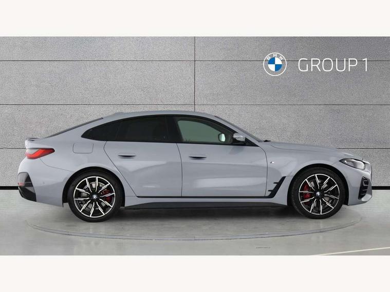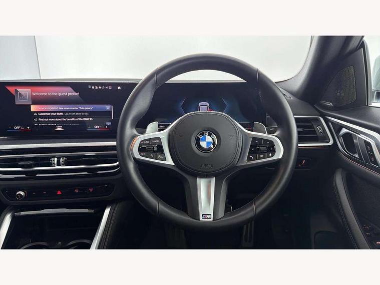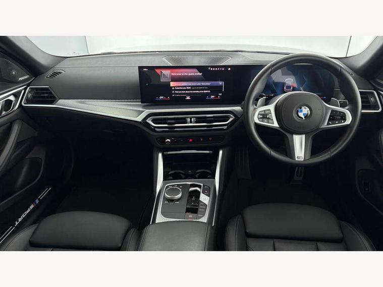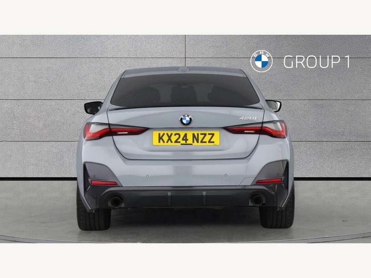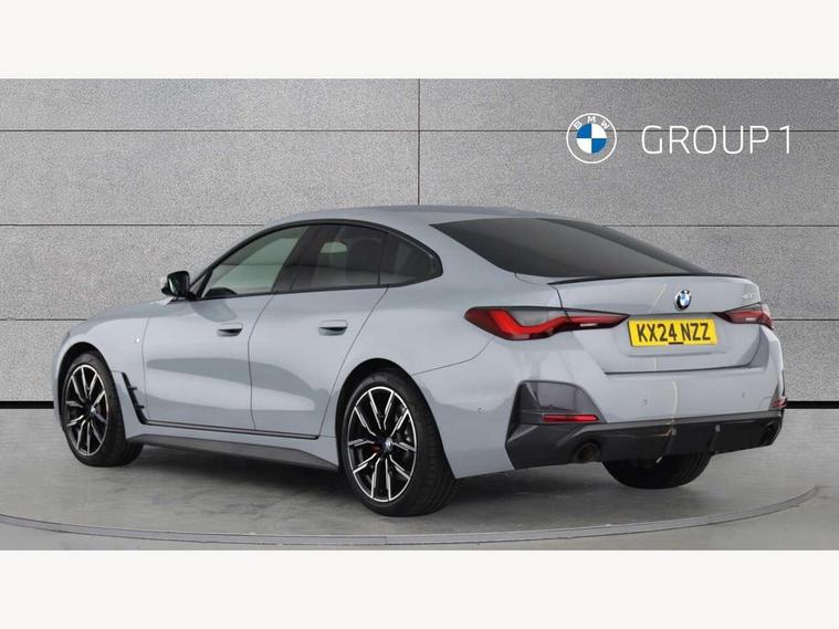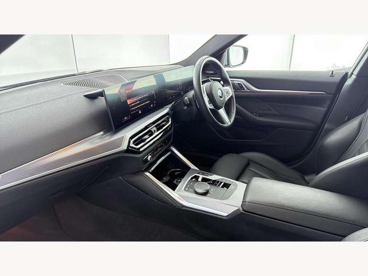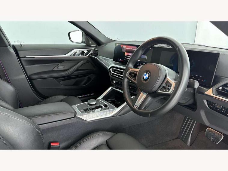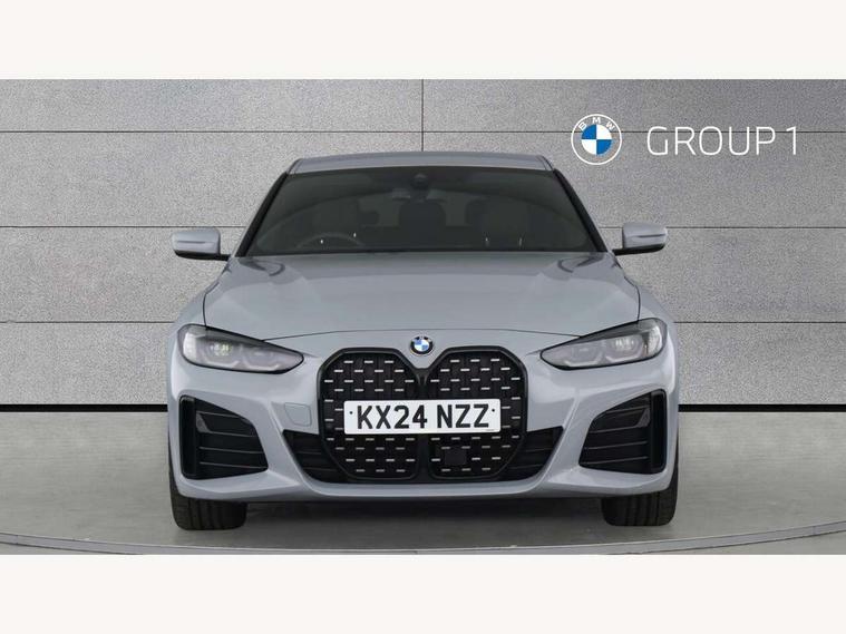 Active guard plus, Auto start-stop, Bluetooth hands free facility with USB audio interface with audio streaming, BMW ConnectedDrive online services, BMW Live Cockpit Plus Nav/12.3" instrument display/14.9" display/Intelligent Voice Assist/iDrive touch/access 3rd party app/2USB/4G//bluetooth//Wi-Fi, BMW service history, BMW Teleservices, Brake pad wear indicator in front and rear, Check Control warning system for monitoring of lights and door/luggage compartment open warning, Condition based service, Electric bootlid, Electric power steering with Servotronic steering optimised at all speed ranges, Fatigue detection system, Gearshift time display in manual mode, iDrive controller on centre console, Instrument cluster with speedometer with mph readout, tachometer, fuel gauge and oil temperature gauge, Integrated owners handbook, Language version English, Oil sensor for level and grade, warning by check control system, On board computer - average speed, fuel consumption, outside temp display with acoustic warning, clock/date, service interval, odometer/trip meter, Optimum shift indicator, Shifting point display, Tailgate, Variable sport steering, 8 speed automatic steptronic transmission with gearshift paddles, Double joint spring strut front axle, Double VANOS, Drive performance control - ECO PRO, comfort and sport modes, High precision injection, Low centre of gravity, Petrol Particulate Filter, Stroke dependent dampers, VALVETRONIC engine management, 2x USB Type C ports in front centre console for charging and data transfer, 2x USB Type C ports in rear centre console for charging, DAB tuner, Electronic service booklet, Acoustic glazing, Automatic headlight beam throw control with load dependent regulating reaction, dynamic compensation of braking dive and acceleration squat, Automatic windscreen wipers and automatic headlight, Automatically dimming electrochromatic rear view mirror, BMW emblem on engine compartment lid and tailgate, BMW kidney grille with mesh grille front side of the nuggets in matt aluminium and frame in chrome high gloss, Body colour fuel filler flap, Body colour roof fin, Brushed aluminium inserts in the front door sill finishers with BMW designation, Door sill strips, Dynamic brake lights, Electric windows - front and rear, with open/close fingertip control, anti trap facility and comfort closing function all round, Exterior mirrors - electrically folding with anti-dazzle, Fading support, Follow me home headlights, Front and rear bumper system, Front apron plastic in body colour, Green tinted heat protection glazing, High gloss shadow line exterior trim, Illuminated bow type door handles in body colour drivers side with door lock, Interior rear view electrochromatic mirror with automatic anti dazzle function, LED 3rd brake light, LED daytime running lights, LED front fog lights, LED front indicators, LED Headlights, Licence plate panel integrated into front bumper and tailgate, Lightweight engineering, M sport rear boot spoiler with body colour gurney, One piece front bumper cover including towing eye cover in body colour, Preparation for high beam assistant, Rear side wing doors, Rear wiper, Reversing light, Side frame decorative moulding black matt, Two part LED tailights in L-shape with components in smoked glass, brake light, LED turn indicator and rear fog light, Visible exhaust tailpipe finisher, Visible VIN plate, Welcome lights in interior and door handle area, Widened track and increased camber values for max transverse dynamics, agility and steering precision, Window recess cover black high gloss, Windscreen wipers with integrated heated washing jets, 12V power socket in front centre console, 2 front cupholder in centre console with clamping elements and matt black inlay, 3 rear headrests, 3 seat bench in 2nd row, 3 spoke M sport leather multifunction steering wheel, 3 zone automatic air conditioning, 4 pieces lashing eyelets in luggage compartment, 40:20:40 split folding rear seat and rear centre armrest with two cupholders, Anthracite headlining, Armrest integrated in front and rear door trim + front centre console armrest, Battery in luggage compartment, BMW ID, Extended storage in Combination with sport seat net pocket on rear backrest, Four grab handles integrated in roof lining, Front and rear door pockets, Front and rear footwell lights, Front and rear reading lights, Front sport seats, Heated driver and front passenger seats, Height adjustable front headrests, Height adjustable mechanically and infinitely variable steering column, Illuminated armrest storage compartment, Illuminated glove compartment with separate small compartment, Luggage compartment lighting, Luggage compartment seprating net on side trim left/right, Bag hook, 12V socket, TTH button, USB C charging in rear, Folding compartment on driver side, Make-up mirror lights, Single front passenger seat, Storage compartment in rear centre console, Sunvisors with illuminated vanity mirrors and ticket pocket, Toolkit located in luggage compartment, Velour front floor mats, Ambient lighting pack - 4 Series, Connected professional package - 4 Series, M sport exterior styling pack - 4 Series, Park assist pack - 4 Series, 3 point seatbelts on all seats, Battery safety cut-off, BMW emergency call, Brake energy regeneration, Braking pre-tensioning, Child proof locking system in rear door, Child seat ISOFIX attachment for the two outer rear seats, Coasting in idle in ECO PRO mode, Cornering brake control (CBC), Crash sensor activating of airbags, Unlocking doors, hazard warning lights, fuel cut off, interior lighting+activation of safety battery terminal clamp, Driver and front passenger side airbags, integrated in the door side seat backrest bolsters for all seat variants, Driver/Front Passenger airbags, Dry braking, Dynamic brake control, Dynamic stability control + (DSC+) - Anti-lock Braking System (ABS) with brake assist and cornering brake control + Automatic Stability Control (ASC), Dynamic Tr
