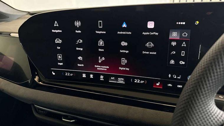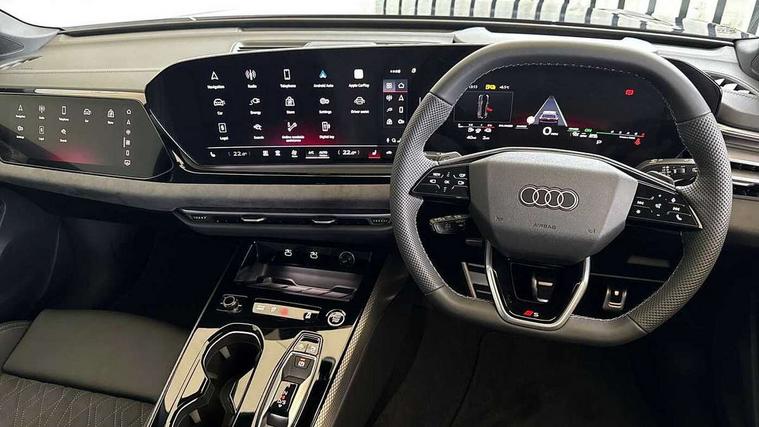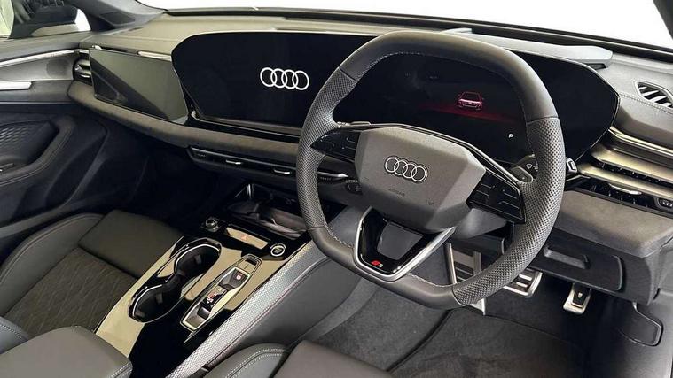 Adaptive cruise assist plus with steering intervention, Attention and drowsiness detection with driver observation, Audi application store, Audi assistant, Audi connect emergency call and service, Audi drive select, Audi virtual cockpit plus with 11.9" OLED colour display, Automatic start/stop system with coasting functionality, Camera based traffic sign recognition, Convenience key, Intersection assist, Lane change assistant with exit warning system, rear cross traffic alert and rear turn assist, Lane departure warning with emergency assist, MMI 10.9" front passenger touch display, MMI navigation plus with high resolution 14.5" OLED touchscreen colour display, Park assist plus, Parking system plus with 360 display, Progressive steering with servotronic, Side assist and exit warning, rear cross-traffic assist and rear turn assist, Smartphone interface, Swerve assist and turn assist, Top view camera, Traffic sign based speed limiter, Household plug type G, Hybrid propulsion system, Industrial connector CEE 32A, 230V, long and straight for the e-tron charging system, Mode 3 type 2 AC charging cable 22kW, Sports suspension lowered by 20mm, Audi sound system impressive sound with 8 loudspeakers including centre speaker and subwoofer, 6-channel amplifier with a total output of 180 watts, DAB digital radio reception, Smartphone compartment with wireless charging, Aluminium window trims, Auto dimming rear view mirror, Black door handles, Black roof rails, Dark chrome-plated tailpipe trims, Door mirrors - electrically adjustable, heated, folding and auto dimming on both sides, Front and rear electric windows, Front door sill trims with aluminium inlays, illuminated with 'S' logo, Headlight cleaning system, High beam assist, LED daytime running lights, LED rear lights pro incl. dynamic rear indicators and illuminated light strip with animated coming and leaving home function, LED third brake light, Matrix LED headlights with eight light signatures selectable via the MMI or the myAudi app, Privacy glass, Rear and side windows with heat insulating glass, Rear side wing doors, Rear wash/wipe, S Line badges on the front wings, S line bumpers, radiator grille and diffuser in phantom black and diffuser insert in matt anthracite, White rhombus logo projection light in exterior mirrors, Windscreen with acoustic glazing, 3 rear headrests, 3 seat rear bench, 3 spoke leather steering wheel with multi-function buttons with touch control, flattened on top and bottom, with S badging and contrast stitching, 3-zone automatic climate control, 40:20:40 split folding rear seat bench with centre armrest and cup holders, Auxiliary air conditioning, Comfort front centre armrest, Electrically adjustable front seats, Front and rear floor mats, Front sport seats with integrated headrest and S embossed logo, Headlining in black cloth, Heated front seats, i-Size child seat mounting on the front passenger side and outer rear seats, i-Size and top tether on the outer rear seats, Increased charging capacity for USB ports 2X100 Watts in rear, 2X60 Watts in front, Luggage compartment lid, electrically opening and closing, Manual steering column height and depth adjustment, Memory function for driver seat, Single front passenger seat, Stainless steel pedals and footrest, Steering wheel grips in perforated leather and shift paddles, Ambient lighting package plus - A5, Black styling pack plus - A5, 3x3 point rear seat belts, Acoustic vehicle alerting system, Driver airbag, Electric child safety locks, First aid kit with warning triangle and vests, Front emergency brake assist, Front passenger airbag, Front passenger airbag deactivation, Hill hold assist, Proactive passenger protection system for front, sides and rear, Red brake calipers, Seat belt monitoring with rear seat occupant reminder, Side airbags in front and rear with head airbag system and front interaction airbag, Tyre pressure loss indicator, Anti theft alarm, Anti-theft wheel bolts, Digital key, Keyless Go, Accent surfaces and control buttons in gloss black, Black dashboard with contrast stitching, Softwrap in Dinamica with contrast stitching, Upper and lower interior elements in dinamica microfiber, 20" 5 arm fold design Audi sport alloy wheels in silk matt grey and gloss turned finish, Tyre repair kit,