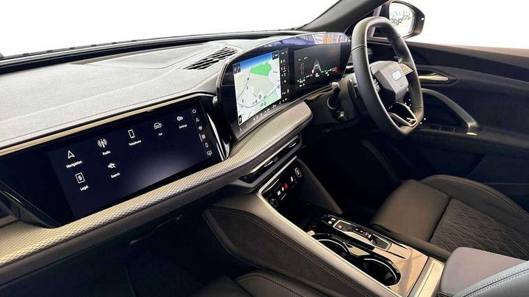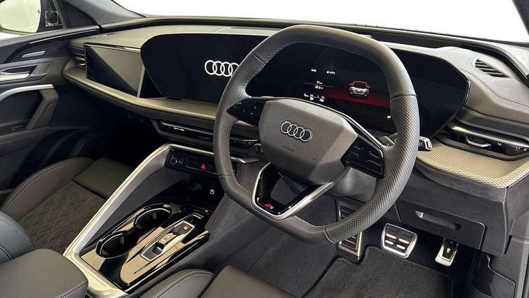 Adaptive cruise assist plus, Attention and drowsiness detection with driver observation, Audi application store, Audi connect emergency call and service, Audi digital key, Audi drive select, Audi smartphone interface, Audi virtual cockpit plus with 11.9" OLED colour display, Camera based traffic sign recognition, Front cross traffic intersection assist, Lane change assistant with exit warning system, rear cross traffic alert and rear turn assist, Lane departure warning with emergency assist, MMI 10.9" front passenger touch display, MMI navigation plus with high resolution 14.5" OLED touchscreen colour display, Park assist plus, PAS, Reversing camera, Swerve assist and front turn assist, Traffic sign based speed limiter, Compact e-tron charging system, Household plug type G for the e-tron charging system, Hybrid propulsion system, Industrial connector CEE 32A, 230V, long and straight for the e-tron charging system, Mode 3, Type 2 AC charging cable 22kW - capable of charging speeds up to 11kW for use at AC charging points including a home wallbox, Audi sound system impressive sound with 8 loudspeakers including centre speaker and subwoofer, 6-channel amplifier with a total output of 180 watts, DAB Digital radio, Smartphone compartment with wireless charging, Active digital light signatures - Six additional combinations of active daytime running light signature, All weather light, Auto dimming rear view mirror, Automatic dynamic headlight range control, Dynamic light scenarios of the coming home/leaving home function when stationary, Electrically adjustable heated and folding + automatically dimming exterior mirrors, Exhaust tailpipes in dark chrome, Front and rear electric windows, Front door sill trims with aluminium inlays, illuminated with 'S' logo, Full body paint finish, Grill frame, inlay and front air inlets in matt anthracite chrome, Headlight cleaning system, Heated rear window, High beam assist, High gloss window surrounds, LED daytime running light with 8 digital light signature, LED rear lights pro incl. dynamic rear indicators and illuminated light strip with animated coming and leaving home function, Logo projection light in exterior mirrors, Manoeuvring light, Matrix LED headlights, Memory function for door mirrors, Motorway light, Privacy glass, Projection third brake light for rear window in LED, Radiator grille in phantom black, Rear and side windows with heat insulating glass, Rear honeycombe grille in matt black with inlay in matt anthracite chrome, Rear side wing doors, Rear wash/wipe, S Line badge on the front wings, Static cornering light, Turning light, Windscreen with acoustic glazing, 3 rear head restraints, 3 seat bench in 2nd row, 3 spoke leather steering wheel with multi-function buttons with touch control, flattened on top and bottom, with S badging and contrast stitching, 4 way electric lumbar support for driver and front passenger, Auxiliary air conditioning, Black carpets, Comfort centre armrest front, Deluxe 3 zone electronic climate control, Dinamica microfiber/leather upholstery with diamond stitching, Electrically adjustable front seats with memory function for driver's side, Front and rear floor mats, Front sport seats with integrated head restraints, Headlining in black cloth, Heated front seats, i-Size child seat mounting on the front passenger side and outer rear seats, i-Size and top tether on the outer rear seats, Increased charging capacity for USB ports 2X100 Watts in rear, 2X60 Watts in front, Interior trim in aluminium look, Luggage compartment lid, electrically opening and closing, Manual steering column adjustment, S embossed logo on front sport seats, Single front passenger seat, Softwrap in black, Softwrap in Dinamica, Stainless steel pedals and footrest, Steering wheel grips in perforated leather and shift paddles, Ambient lighting package plus - Q5, Black styling package plus - Q5, Rear seat bench plus pack - Q5, Storage and luggage compartment pack with luggage net - Q5, 3x3 point rear seatbelts, ABS, Acoustic vehicle alerting system, Convenience key with safelock, Driver and front passenger airbag with passenger airbag deactivation, Electric child safety locks, First aid kit with warning triangle and high visibility vests, Front emergency brake assist, Hill hold assist, Proactive passenger protection system for front, sides and rear, Rear seat occupant reminder, Red brake calipers, Side airbags in front and rear with head airbag system and front interaction airbag, Tyre pressure loss indicator, Anti-theft wheel bolts, Thatcham approved category 1 anti theft alarm, Black dashboard with contrast stitching, Upper and lower interior elements in dinamica microfiber, Tyre repair kit,