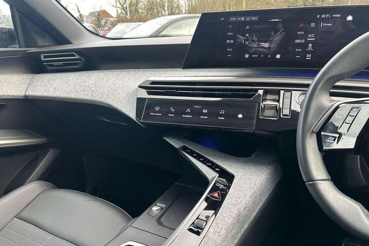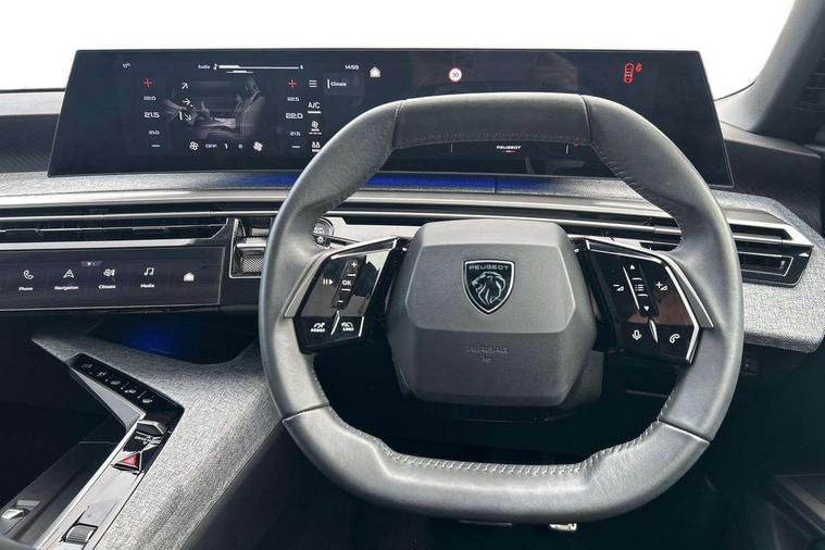 Bluetooth with two microphones (Connect up to 2 phones), Drive modes select (Eco, normal and sport) with configurable ambient lighting, Driver attention alert, Driver foot rest, Driver profile selection, E-call, Exterior temperature indicator with ice warning, Front passenger seat detection, Lane keep assist, Manual gear changes via steering mounted paddles, Multi function trip computer, Natural voice recognition, PEUGEOT i-Cockpit - 21" HD panoramic curved display incorporating instrument panel and touchscreen with 3colour themes, PEUGEOT i-connect advanced HD fully customisable touch screen, Navigation with Tom Tom Live updates and over the air map updates, PEUGEOT SOS and assistance, Rear parking sensor, Speed limit and traffic sign recognition and recommendation, Wireless mirror screen with apple carplay and android auto, Wireless smartphone charger with status light and ambient lighting, Dynamic stability control and electronic anti-skid system, 6 speakers, AM/FM bi-tuner, DAB Radio (Digital Audio Broadcasting), Peugeot customisable virtual iToggles, USB-C sockets (2 x front and 2 x rear), 3008 model designation badgers front and rear in basalt grey, Acoustic windscreen, Automatic hazard light activation upon heavy brake application, Automatic headlamp activation, Automatic windscreen wiper activation with interval wiping intensity control, Body colour floating effect rear roof spoiler, Body colour roof, Body coloured exterior door handles, Dark tinted privacy glass for rear door, Tailgate and Quarter windows, Door mirrors - Welcome lighting and integrated LED indicators, Eco LED headlights, Electric adjustable/heated/folding door mirrors, Electrochrome rear view mirror, Flat blade wipers with magic wash integrated nozzles, Front and rear electric windows with one touch, Front grille with body coloured accents, Gloss black connecting strip between rear lights, Gloss black finish B pillar, Grained black lower door claddings and wheel arches, Hybrid rear badging in basalt grey, Laminated windscreen, LED exterior lighting, LED third brake light, Lower front and rear bumper trims in meteor grey, Orbital gloss black door mirrors, Peugeot 3-claw signature front and rear daytime running lights, Rain sensor, Rear side wing doors, Rear wiper, Tailgate with heated rear window, 12V socket in front and boot, 2 cupholders in front centre console, 3 seat rear bench, 4 Grab handles retractable and damped, 4 tie down luggage rings, 40/20/40 folding rear seat backrest with fixed base, 8 colour ambient lighting, Aluminium pedals, Arch design central console with concealed storage, Cabin high efficiency filter, Central front armrest with ventilated storage compartment and LED lighting, Chrome finish interior door handles, Compact split leather mutifunction steering wheel with gloss black and satin chrom detailing, Dual zone climate control, Dynamic front seats, e-Toggle compact gear selector, Electric power steering with reach and rake adjustable steering column, Glasses storage box, roof mounted, LED boot light, LED footwell lights, LED front and rear reading lights with push button control, LED Glovebox light, LED illuminated driver and passenger concealed sunvisor mirrors, Luggage cover, Mistral black pillars and headlining, Quick launch cabin heating/cooling function, Rear air vents, RISPY embossed fabric upholstery, Roof lining - Meteor grey, Seatbelt unfastened on the move audible and visual alert for front and rear seats, Single front passenger seat, Two bag hooks, Two position boot floor, 2x Isofix child seat fitting on outer rear seats with zipped cover, 3x3 point rear seat belts, ABS (Anti-lock Braking System) with EBD (Electronic Brakeforce Distribution) and EBA (Emergency Braking Assistance), Advanced Emergency Braking System with radar (AEBS3) providing night detection of pedestrians and cyclists, Child locking functionality on rear doors, Driver and front passenger airbags with airbag deactivation function, Driver and front passenger side airbags, Electric parking brake, Front and rear curtain airbags, Front optimised safety headrests and 3 x rear retractable headrests with height adjustable, Front/rear disc brakes, Hill start assist, Post collision safety brake, Seatbelts - Front and rear outer seats with pyrotechnic pretensioners and force limiters, 2x Keys (Lock, Unlock, Boot release function with concealed key), Acoustic vehicle alert system (AVAS), Automatic door locking when moving off, Deadlocking system, Electronic code immobiliser, Exterior passenger door lock, Locking wheel nuts, Peugeot Open and Go (keyless entry and push button start), Seatbelts reminder and unfastend warning indicator, Thatcham category 1 Perimetric and volumetric alarm with anti-lift detection, Stene grey finish for dashboard, door panels and central console decors, 19" BREDA diamond cut alloy wheels with star center cap in orbital black, Michelin e-primacy class A tyres,