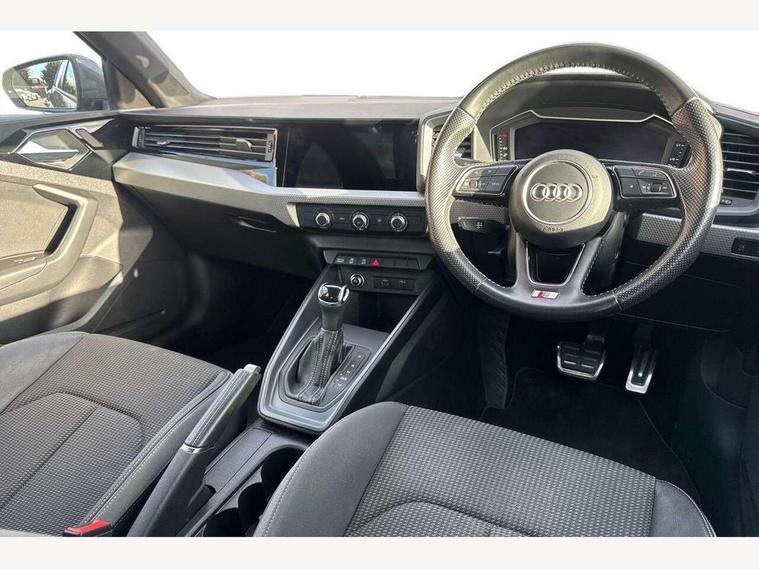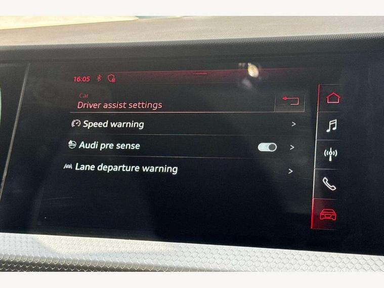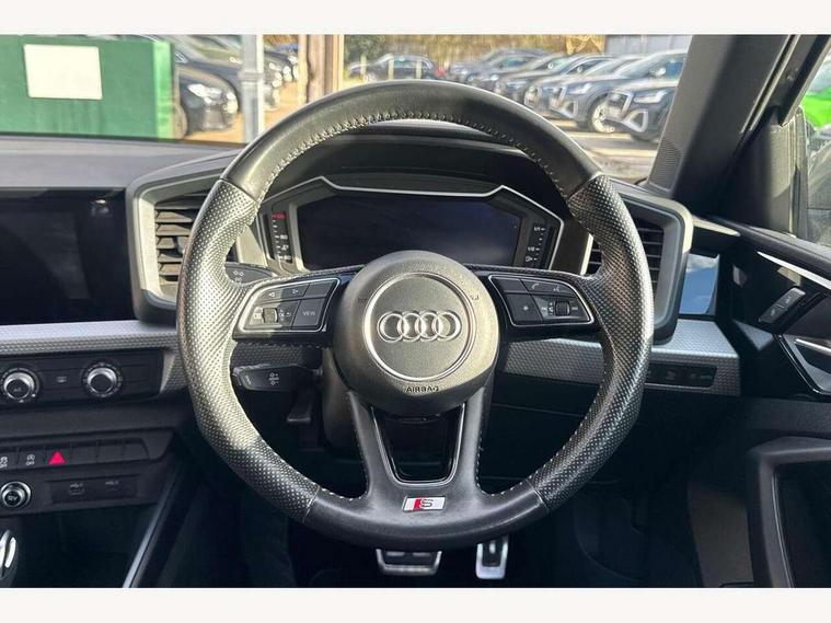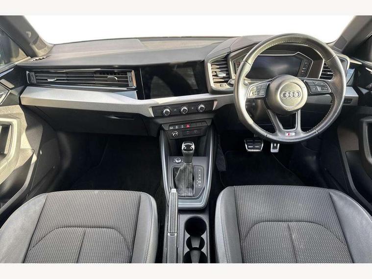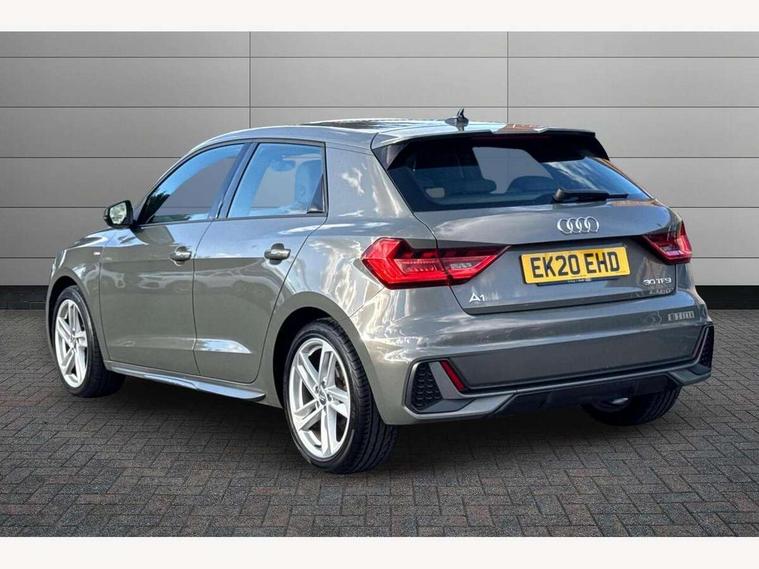 10.25" Digital instrument cluster display classis style instrument dials + speed, odometer, time, outside temperature, telephone menu + fuel level warning, Audi connect safety emergency and service including E-call, Audi drive select - power steering assistance + engine + gear shift 3 preset modes (auto, dynamic, efficiency and an Individual mode), Audi smartphone interface with connect compatible smartphone via USB directly MMI display + Nav, music, third party apps controlled via MMI controller, Automatic start/stop system, Bluetooth interface, Cruise control, Driver's information system, Electromechanical power steering, Lane departure warning system, Rear parking sensor, Service interval indicator, Speed limiter, Voice control system, Washer fluid level indicator, Sports suspension, 1 x SDXC card reader, 1 x USB type C and 1 USB type A charging points, DAB Digital radio, MMI radio plus with 8.8" colour MMI display screen and MMI touch, Auto dimming rear view mirror, Body coloured door mirrors, Door sills with aluminium inlays and S Line logo, Electric front and rear windows, Electrically adjustable, heated, folding door mirrors with integrated LED side indicator, Front side air inlets in grained matt black and C frame in titanium black, Heat insulating glass windscreen and side windows, Heated rear windscreen, LED headlights with LED rear lights + dynamic rear indicators + headlight adjustment and high beam, turning light + LED daytime running lights, Radiator grille and rear diffuser in matt titanium black, Radiator protective grille frame in matt aluminium silver, Rain and light sensors, Rear fog lights, Rear wiper, S line badges on front wings, Side front spoiler lips in grained matt black, 12V socket in centre console with two cup holders, 3 rear seats with headrests, 40:60 Split folding rear seat or folded fully, Black cloth headlining, Driver and passenger seat with manual height adjust with forward and backwards adjustment, Front and rear black floor mats with contrast stitching in fine silver, Front head restraints, Height and reach adjustable steering wheel, ISOFIX child seat mounting for front passenger and outer rear seats including top tether attachment point of outer rear seats, Leather gear knob with aluminium trim, Luggage compartment light with front and rear reading lights, Manually adjustable lumbar support in front seats, Stainless steel pedals, LED interior lighting pack - A1, Luggage compartment pack - A1, S line exterior styling pack - A1 Sportback, 3x3 point rear seatbelts, Audi pre-sense front with pedestrain and cyclist recognition, Brake assist function, Driver and front passenger airbag with front side and head airbags, Electronic Stability Control including ABS, EBD, ASR and EDL, Front and rear seatbelt reminder, Front passenger airbag deactivation switch, Hill hold assist, Seatbelt height adjustment for front seats, Seatbelt monitoring, Tyre pressure warning light, Warning triangle and first aid kit, Anti theft alarm, Anti theft wheel bolts and loose wheel warning, Immobiliser, Remote central locking with 2 foldaway keys, Aluminium trim for control switches, air vents and digital instrument cluster, Silver grey inlays polygon structure in diamond paint finish, Structured grey accent areas including air vents, door handle recesses and centre console in quartz paint finish,