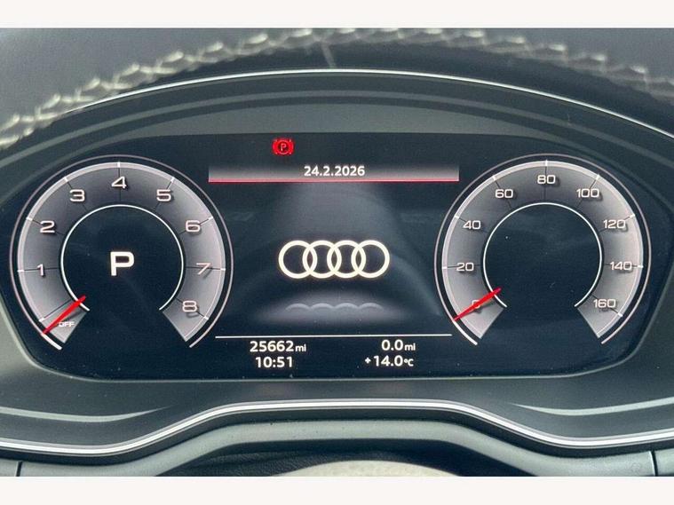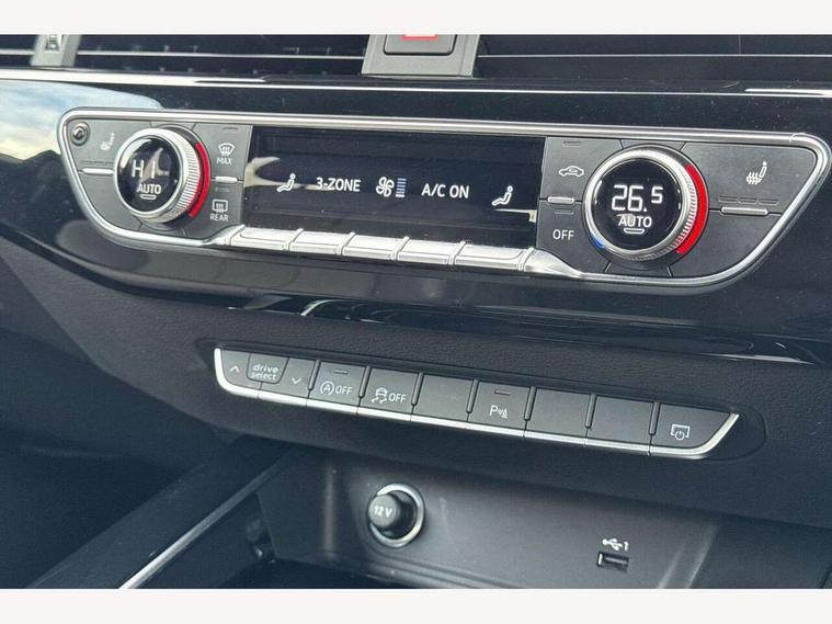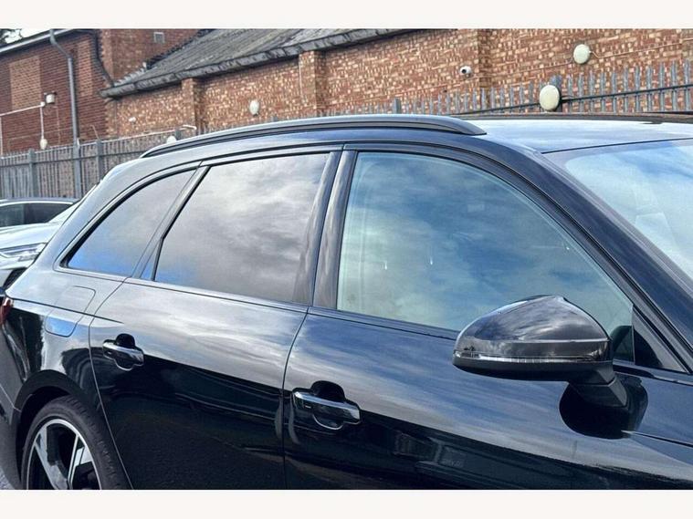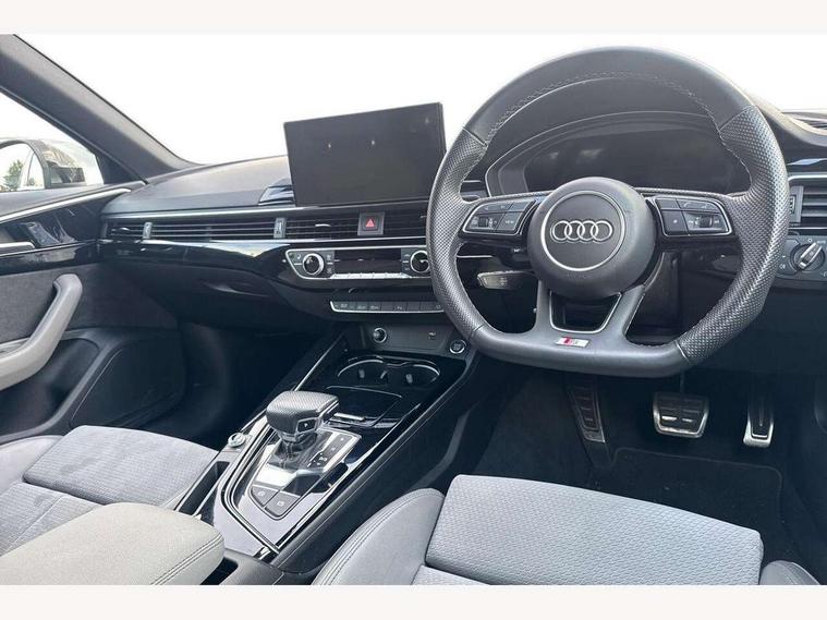 Audi connect safety and service (e-call), Audi drive select, Audi smartphone interface, Audi virtual cockpit, Automatic start-stop system with coasting functionality and efficiency programme, Bluetooth interface, Camera based traffic sign recognition, Electromechanical power steering, Email, calendar and text messages displayed via MMI, Front and rear parking sensors, Lane departure warning, MMI Navigation plus with MMI touch includes 10.1" high resolution colour MMI display, 3D map, Power operated tailgate, Rear view camera, Voice control system, 54 litre fuel tank, Sports suspension lowered by 23mm, 2 USB charging ports, 8 passive loudspeakers, DAB digital radio reception, Audi beam uses LEDs to project the audi logo onto the ground as you exit your A4, Auto dimming rear view mirror, Black Audi rings and black badging (model name in black badging, no engine badging), Body colour door handles, Body colour front spoiler lip, Body colour side sill trim, Electric adjustable/heated/folding door mirrors with auto dimming, Exhaust tailpipes in high dark chrome, Grained matt black side air inlets with matt aluminium silver inlay, High beam assistant, High gloss black B pillar trims and triangular rear door trim, LED headlights with LED rear lights + dynamic rear indicators + headlight adjustment and high beam, turning light + LED daytime running lights, LED third brake light, Privacy glass, Rain and light sensors, Rear diffuser in matt black with trim strip in matt aluminium silver, Rear side wing doors, Rear wiper, RS4 rear spoiler in body colour, S Line roof edge spoiler, Sport front and rear bumpers with side skirts, Variable intermittent front wash/wipe, Windscreen with acoustic glazing, 4 way electric lumbar support for driver and front passenger, 40/20/40 split folding 3 rear seat bench in 3 parts with rear centre armrest, Black carpets, Black cloth headlining, Black perforated leather gearknob, Contrast stitching on seats, steering wheel and gear lever gaiter, Deluxe 3 zone electronic climate control, Electric load area cover, Front and rear head restraints, Front centre armrest, Heated front seats, Illuminated door sill trims with S logo, ISOFIX child seat mounting and top tether, Manual seat adjustment, Single front passenger seat, Stainless steel pedals and foot rest, Tool kit, Black styling pack - A4 Avant, LED Interior light pack - A4/S4, 3 rear seatbelts, 6 airbags - Driver, front passenger, curtain and side windows, Attention and drowsiness assist, Electronic Stabilisation Control (ESC) including ABS, ASR and EDL, Hill hold assist, Multi collision brake assist, Pop-up bonnet for pedestrian protection, Pre sense city, Rear door child safety locks, Seatbelt monitoring, Warning triangle and first aid kit, Anti theft alarm, Anti theft wheel bolts, Central locking, Keyless Go, Piano black finish inlay, Tyre repair kit,