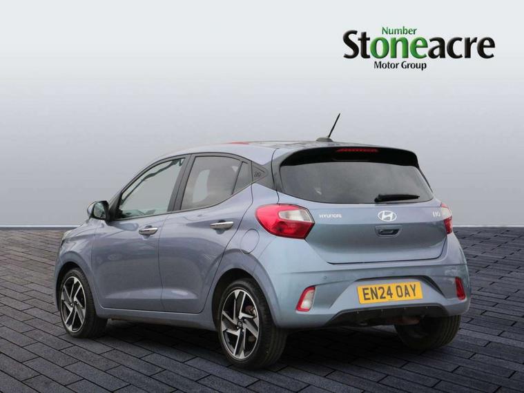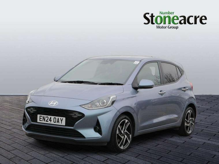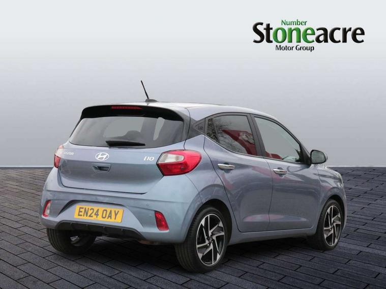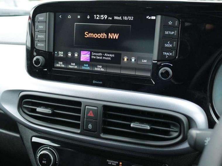 12.5" touchscreen centre console display audio with navigation, mapcare and live services, Apple car play/Android Auto, Bluelink mobile remote connectivity, Bluetooth connectivity with voice recognition, Cruise control, Driver attention alert system, eCall emergency call system, Forward Collision-Avoidance Assist (FCA) - Pedestrian/Cyclist, Front USB-C charging and USB-A data, Full-width 4.2" LCD instrument cluster, Intelligent speed limit assist, Lane departure warning system with lane keep assist - LKAS, Lane follow assist, PAS, Rear parking sensors, Rear view camera with guidelines, Roadside assistance, Start/Stop function, Tailgate, Trip computer, Wireless charging pad, 2 front/2 rear speakers, Rear USB-C device charger, Steering wheel audio, phone and cruise controls, 1 speed non intermittent rear windscreen wiper, Black finish on B pillars, Body colour door handles, Body coloured bumpers, Body coloured door mirrors, Electric folding door mirrors, Electric front windows, Electric rear windows, Electrically adjustable and heated door mirrors, Flat metal emblem, Front fog lights, Front grille in glossy black, Front intermittent wipers, Halogen bi-function headlights, Headlights inner with Black Blade design, Heated rear window, High beam assist, Indicator light on door mirrors, LED DRLs diamond mesh design, Privacy glass - Rear windows and tailgate, Rear roof spoiler with integrated LED brake light, Rear side wing doors, 12v power outlet - front, 3 seat bench in 2nd row, 60/40 split folding flat to floor rear seats, Air conditioning, Auto light control, Bottle holders in front/rear doors + front centre console, Cabin and luggage compartment interior lighting, Cloth upholstery, Driver + passenger vanity mirrors, Driver's seat height adjustment, Driver/passenger sunvisors with ticket holders, Floor mats, Front door pockets, Front Head Restraints - Vertical and Horizontal Adjustment, Front LED blue mood lighting, Glove compartment, Heated front seats, Heated steering wheel, Height adjustable steering column, Isofix child seat preparation, Leather multifunction steering wheel, Rear door pockets, Single front passenger seat, Vertical adjustment rear head restraints, 3x3 point rear seatbelts, Airbags - front, front side and curtain airbags, Anti-lock brake system (ABS), Autonomous emergency braking (AEB) with forward collision warning system, Brake assist function, Childproof rear door locks, Electronic stability control, Front and rear seatbelt reminder, Front seatbelt pretensioners, Hill start assist control (HAC), Passenger airbag deactivate switch, Traction control, Tyre pressure monitoring system, Immobiliser, Perimeter alarm, Rear occupant alert, Remote central locking, Second remote key, Smart key with motion sensor, Speed sensitive auto door locking, 16" alloy wheels, Tyre repair kit,