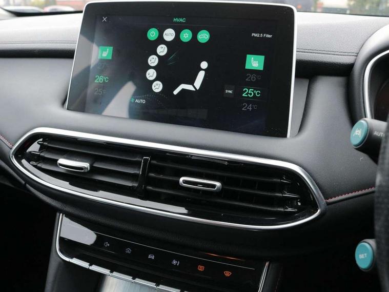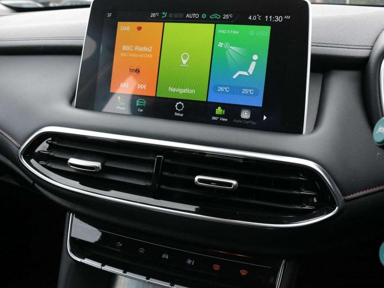 10.1" colour touchscreen, 12.3" Full digital driver information display, 360 degree parking camera, Adaptive cruise control, Android Auto, Apple CarPlay, Blind Spot Detection (BAS), Bluetooth connectivity, Intelligent speed assist, Lane keep assist system (LAS) with Lane departure warning system (LDWS), PAS, Rear cross traffic alert, Rear parking sensors, Satellite navigation system, Traffic jam assist, Trip computer, USB mobile phone charging function, 6 speaker audio system, DAB audio, Auto dimming rear view mirror, Automatic headlights, Bi-function projection headlight, Body colour electric adjustable heated door mirrors, Electric folding door mirrors, Follow me home headlights, Front and rear aero wiper, Front and rear electric windows with one-touch up/down, Front fog lights, Intelligent high beam, LED centre brake light, LED daytime running lights, Rain sensing wipers, Silver roof rails, 12V power sockets, 2nd row 60/40 split fold seat, 2nd row seat with 2 stage incline adjustment, 3 rear headrests, 4 way manually adjustable passenger seat with height, reach, tilt, backrest and headrest, 6 way electric adjustable drivers seat + lumbar support, Dual zone automatic air conditioning, Front centre sliding armrest with storage compartment, Front headrests, Heated front seats, Height and reach adjustable steering wheel, ISOFIX restraints on outer rear seats x2, Leather steering wheel, Leather style upholstery, 3x3 point rear seatbelts, ABS/EBD, Active emergency braking with pedestrian/Bicycle detection, Anti rolling protection, Cornering brake control (CBC), Driver, passenger and 2nd row rear seat belt reminder, Dual front airbags, Electric parking brake with auto hold function, ESP, Front passenger airbag deactivation switch, Front seat belt height adjuster, Front seatbelts (3-point + pretensioner + load limiter), Front side airbags, Hill descent control, Hill launch assist, Rear outer seatbelt pretensioner and load limiter, Side curtain airbags, Tyre pressure monitoring system, Alarm system and engine immobiliser, Keyless entry and push button start system, Remote central locking, Speed sensing door locks, 18" Hurricane diamond cut alloy wheels, Tyre repair kit,