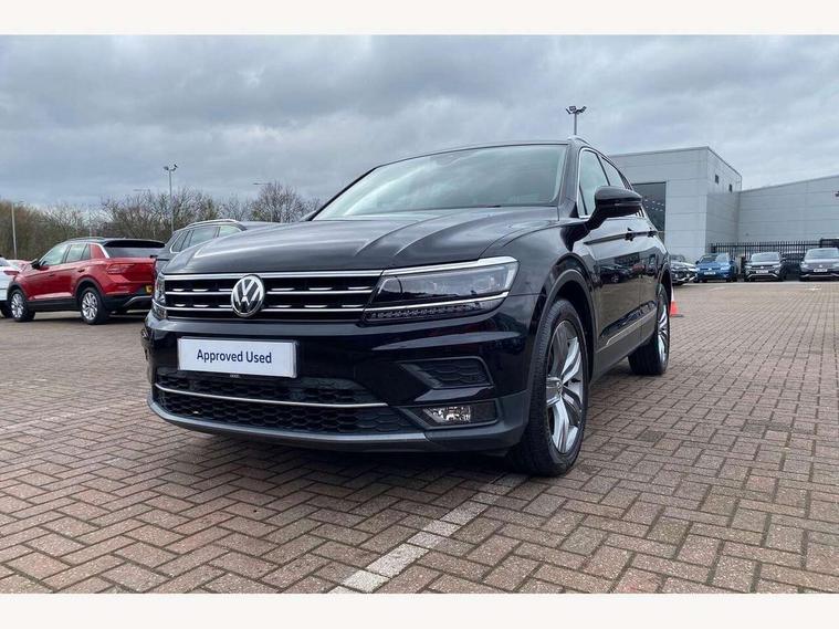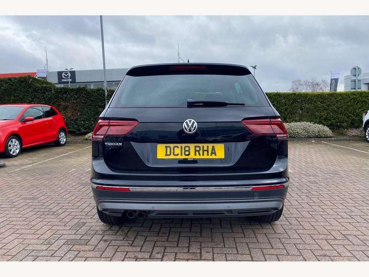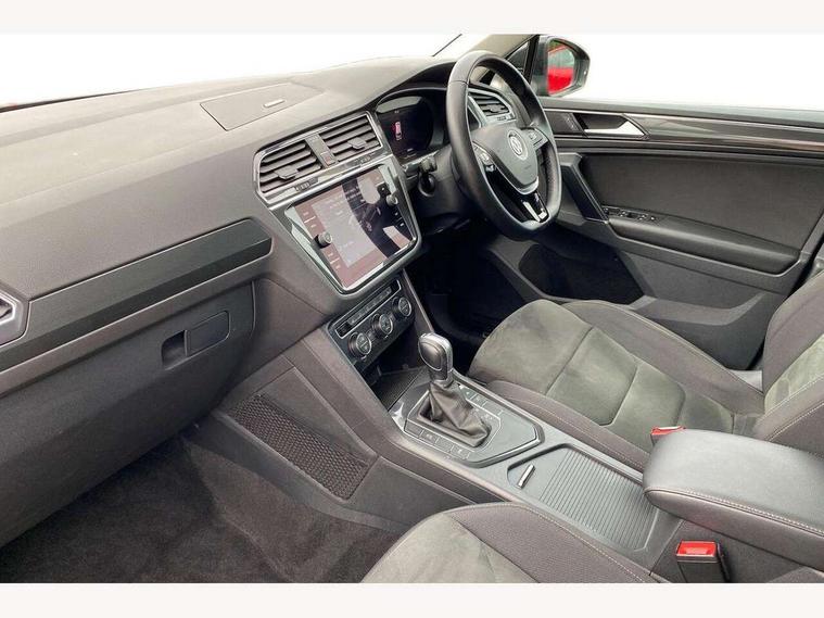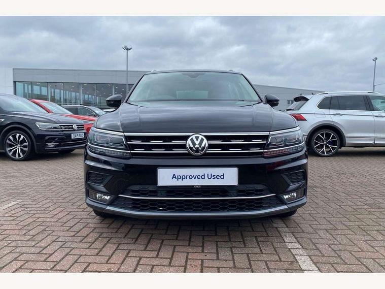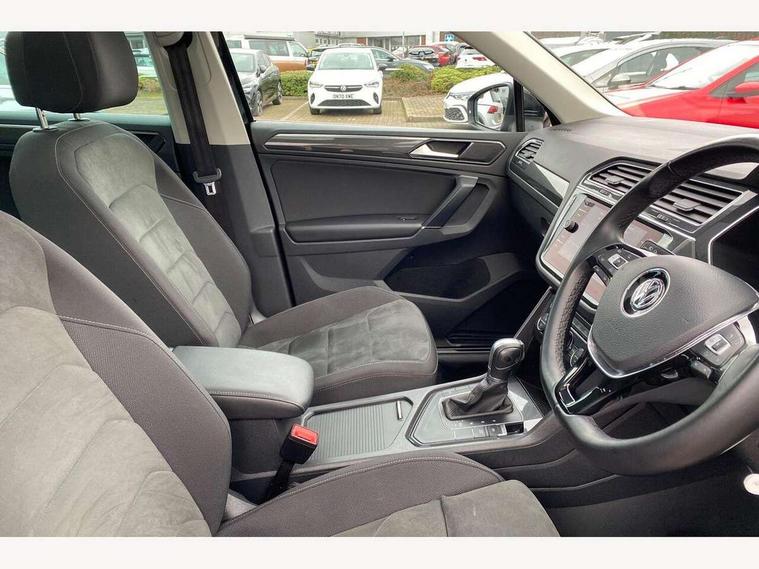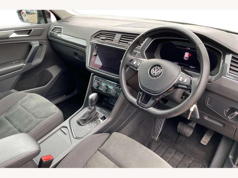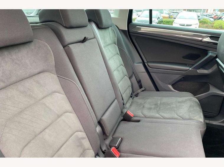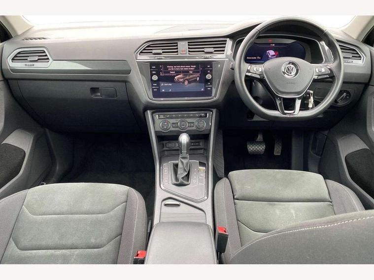 Active information display, Adaptive cruise control, App-Connect, Bluetooth phone integration system, Distance control assist, Fatigue detection system, Instrument cluster, Lane assist, Low washer fluid warning light, Outside temperature display, Service interval indicator, Speed limiter, Warning lights, Diesel particulate filter, XDS electronic differential lock, 2x USB sockets in front, Aux-in socket, DAB Digital radio, MP3 compatible single CD player, SD card slot, Auto dimming interior mirror, Automatic activation of hazard warning lights, Black door protector with chrome inserts, Body colour door handles, Body colour door mirrors, Body coloured bumpers, Chrome side body trim, Chrome side window surrounds, Chrome trimmed radiator grille, Coming/leaving home lighting function, Dusk sensor + auto driving lights, Electric folding door mirrors, Electric heated + adjustable door mirrors, Electric panoramic sunroof with sunblind, Front and rear electric windows, Heated rear window, LED headlights with dynamic light assist daytime running lights and cornering front fog lights, LED rear lights, Rain sensor windscreen wipers, Rear windscreen washer and wiper with interval delay, Silver rear diffuser trim, Silver roof rails, Silver under body guard, Tinted windows (B pillar backwards), Windscreen wipers/ intermittent wipe + 4 position delay, 12V Accessory socket in centre console, 3 rear headrests, 3 zone climate control, 4 load lashing points, 40:20:40 split folding rear seats, Bag hook in luggage compartment, Driver + front passenger lumbar support, Foldable passenger seatback, Front + rear carpet mats, Front centre armrest with 12v socket, Front centre armrest with storage + rear 2 air vents + cupholders, Front seatback folding tables, Height/reach adjust steering wheel, Illuminated driver/passenger vanity mirrors, Illuminated scuff plates, Interior light with delay, Isofix Preparation 2 Rear child seats, Leather gear knob, Load through provision with 2 cupholders when folded, Lockable cooled glovebox, Luggage compartment lighting, Luggage compartment side storage, Map pockets on front seats, Passenger seat height adjuster, Passenger underseat drawer, Rear cupholders, Removable luggage cover, Sliding/reclining rear seats, Storage compartment in driver's door, Storage compartment in passenger's door, Storage compartment in rear doors, Storage tray on dashboard, Sunglasses storage, Variable boot floor, Ambient lighting pack - Tiguan, 3 rear 3 point seatbelts, ABS+EBD+Brake assist, Active bonnet, Active pedestrian safety system, Curtain airbags, Driver/Front Passenger airbags, Driver/Passenger whiplash optimised head restraints, Drivers knee airbag, DTC - Drag torque control, Electronic parking brake with auto hold, ESP with EDL + ASR, First aid kit, Front assist including city emergency braking, Front side airbags, Head airbag system, Height adjustable front 3 point seatbelts + pretensioners, Hill hold control, Passenger airbag deactivate switch, Passenger knee airbag, Pre crash system, Rear side airbags, Seatbelt warning lamp and buzzer, Two tone horn, Warning triangle, Alarm with interior protection, Electronic engine immobiliser, Remote central locking with 2 remote folding keys, Chrome door trim inserts, Piano black interior trim, Steel space saver spare wheel,