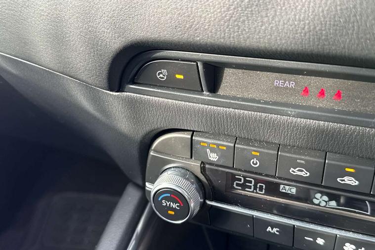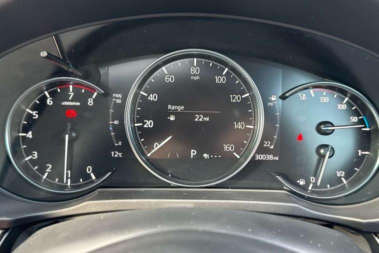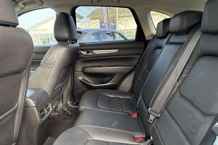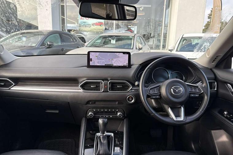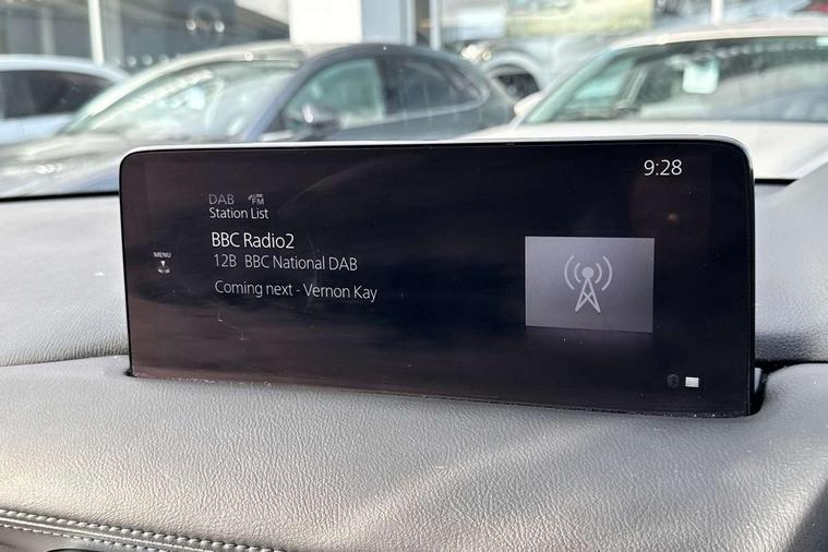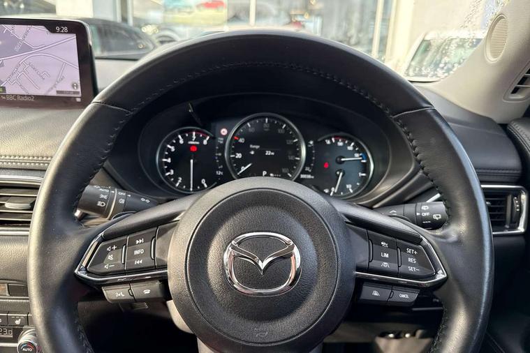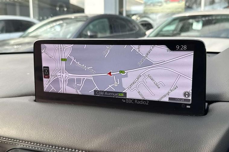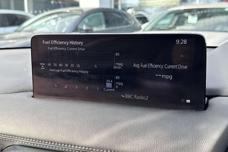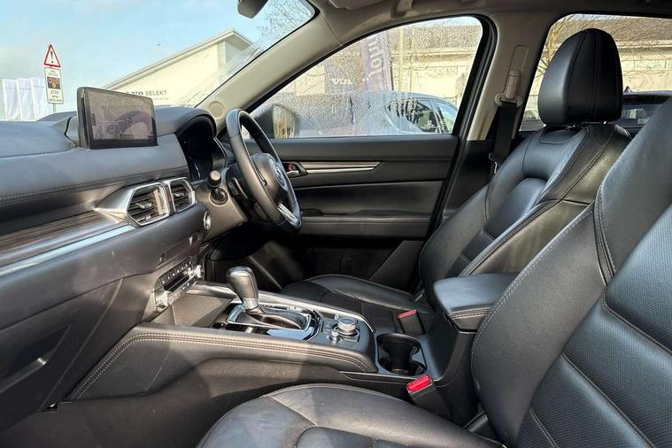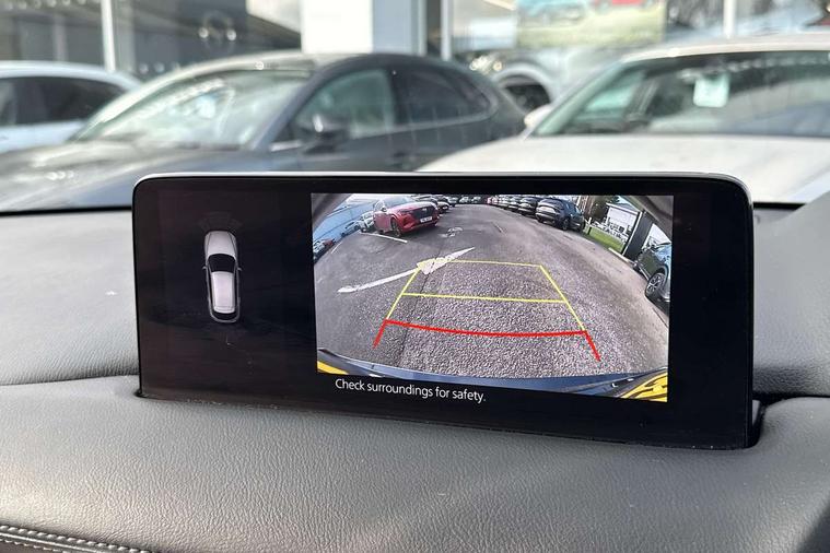 10.25" display with Mazda Connect infotainment, 7" colour TFT display, Advanced blind spot monitoring, Apple car play/Android Auto, Bluetooth connectivity with voice control, Collision prevention assist, Connected services, Cruising Traffic Support, Drive mode selector, Electric power steering, Emergency stop signalling system, Engine start/stop button, Forward collision warning, Front and rear parking sensors, Integrated navigation system, Intelligent speed assist, Lane departure warning system, Lane keep assist, Radar cruise control with Stop and Go, Reversing camera, Service indicator, Traffic sign recognition (TSR), Trip computer, Windscreen projected colour active driving display (HUD) with memory, i-stop, 2 USB sockets in rear, 2x USB sockets in front, 6 speakers, AM/FM radio, Bluetooth audio streaming, DAB Digital radio, Multimedia Commander including separate volume dial, Steering wheel mounted audio controls, Adaptive front lighting system, Auto dimming rear view mirror, Automatic headlights, Black inlay dashboard panel, Body colour door mirrors, Body colour roof spoiler, Body coloured front and rear black lower bumper mouldings, Bright finish signature wing, Coming/leaving home lighting function, Door mirror integrated indicators, Dual chrome tailpipes, Dusk sensitive headlamps, Electric front/rear windows with one touch auto up/down, Front grille in gloss black finish, Gloss black B and C pillars garnish, High beam assist, Intermittent rear wash/wipe, LED auto levelling, LED daytime running lights, LED front fog lights, LED Headlights, LED third brake light, Power folding and heated door mirrors, Power tilt/slide sunroof, Privacy glass (rear side windows only), Rain sensing front wipers, Rear side wing doors, Satin black side mouldings, Scuff plates, Shark fin antenna, Signature LED rear combination lights, Vinyl with wood grain metal inlay door trim panel, Windscreen wiper de-icer, 12v electrical power outlet, 3 seat bench in 2nd row, 3 stage heated front seats, 40:20:40 Karakuri fold-flat seat system, 6 way electric adjustable passenger seat, 8 way electric driver seat with lumbar support + memory, Cargo room flat floor board with waterproof undertray, Driver seat power slide, recline and height adjustment, Driver, Front passenger and two rear grab handles with coat hooks, Driver/passenger front seatback pockets, Driver/passenger sunvisors + illuminated vanity mirrors (drivers with ticket holder), Dual zone climate control, Folding centre armrest with 2 cup holders, Front and rear door pockets, Front centre storage with two cupholders, Front passenger seat power slide, recline and height adjustment, Heated steering wheel, Humidity sensor, Illuminated glovebox, Interior dome light with integral spotlight, ISOFIX child seat anchorage points attached on outer rear seats, Karakuri tonneau cover, Leather upholstery, Leather wrapped steering wheel and gear knob, Light roof lining, Luggage compartment LED lighting, Luggage compartment power outlet, Paddle shifts, Rear air vents, Rear headrests, Rear seat recline, Roof mounted sunglasses holder, Single front passenger seat, Three height adjustable head restraints, Tilt/height adjustable steering wheel, White interior LED illumination lighting, 3 point front seatbelts with pre-tensioners, 3 rear 3 point seatbelts, ABS, Advanced Smart City Brake Support - SCBS, Child locks on rear doors, Driver and front passenger side airbags, DSTC-Dynamic Stability and Traction Control, Dual front airbags, Electronic brake force distribution, Electronic parking brake with auto hold, ESP, Front and rear curtain airbags, Front passenger airbag deactivation, G-Vectoring control, Hill hold assist, Seatbelt reminder front and rear, Single stage passenger airbags, Smart brake support with forward obstruction warning, Tyre pressure monitoring system, Automatic door locking when moving off, Deadlock, Immobiliser, Power door locks, Remote central locking, Smart keyless entry, Thatcham Cat.1 alarm, 19" diamond cut black alloy wheels, Tyre repair kit,