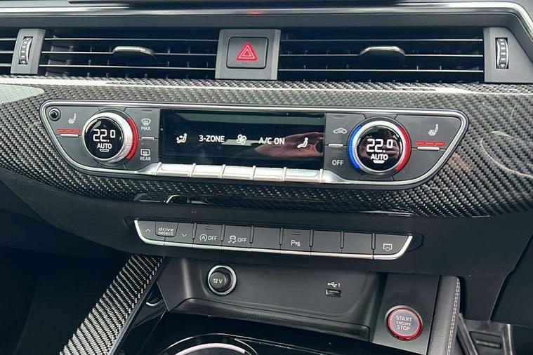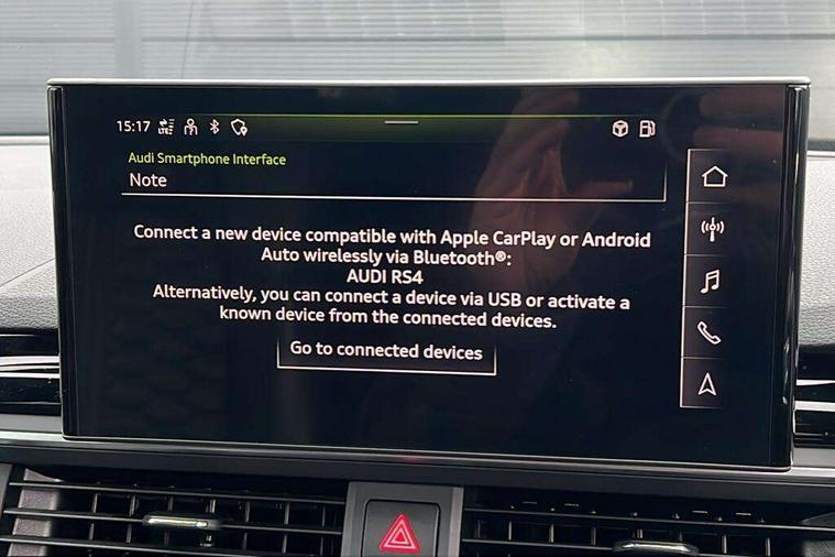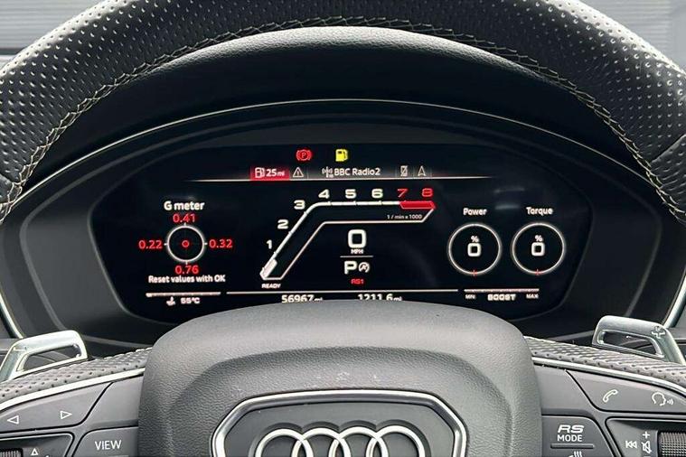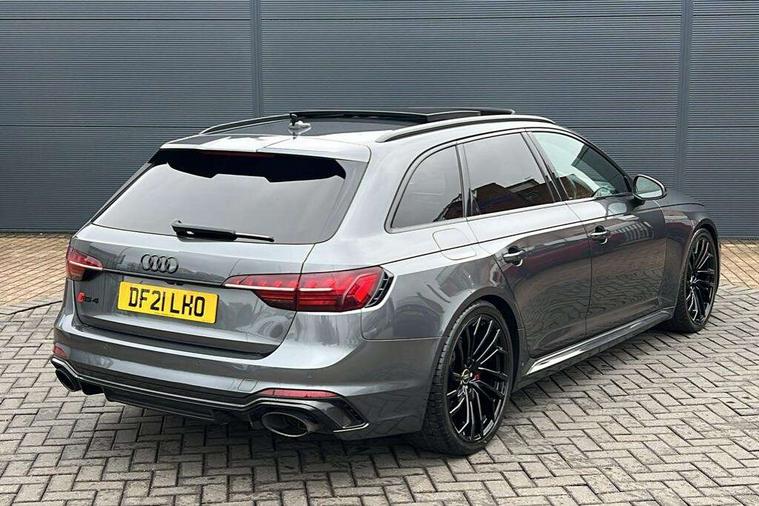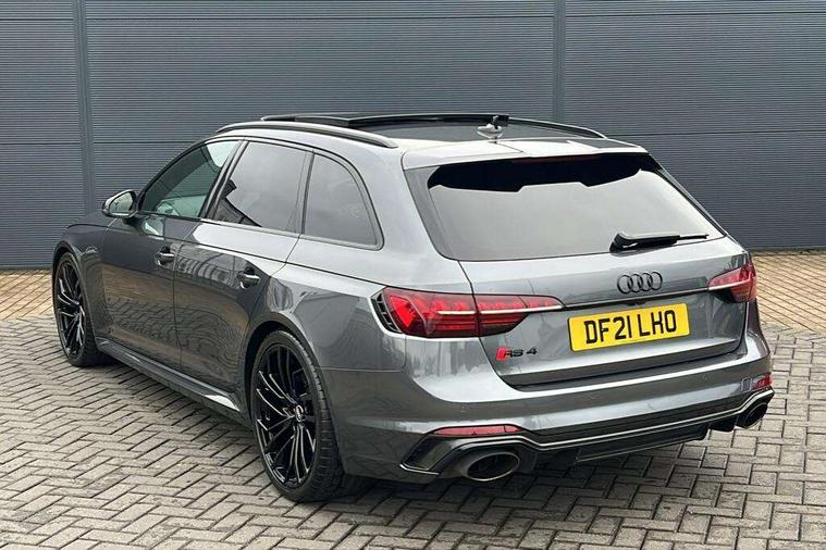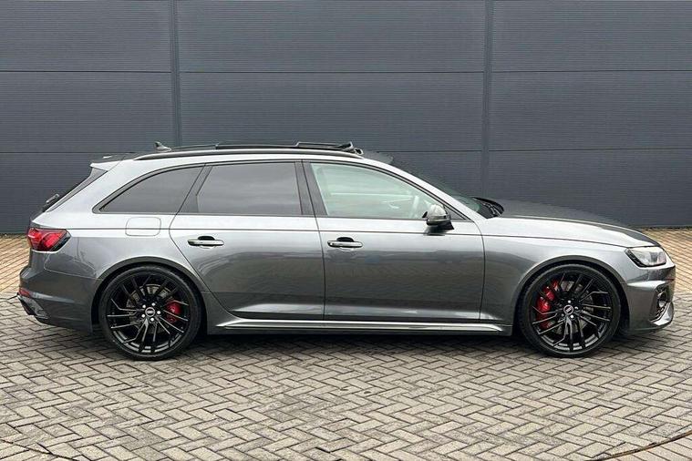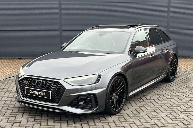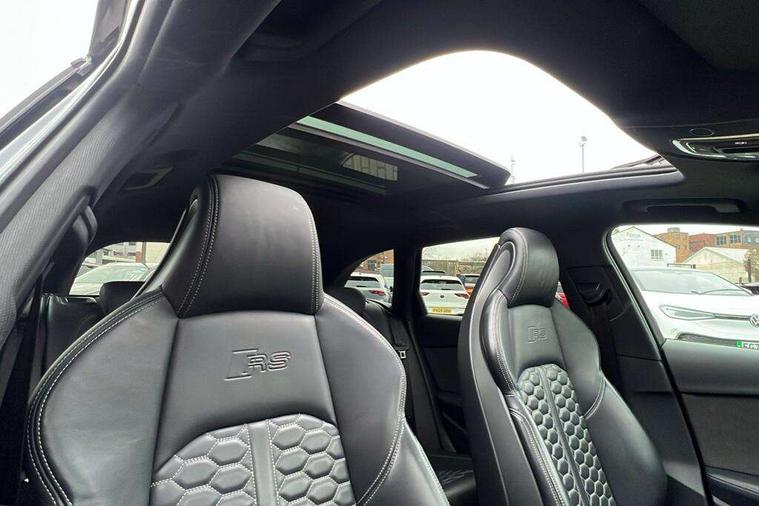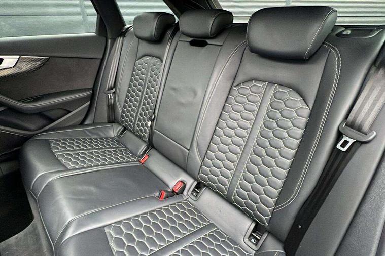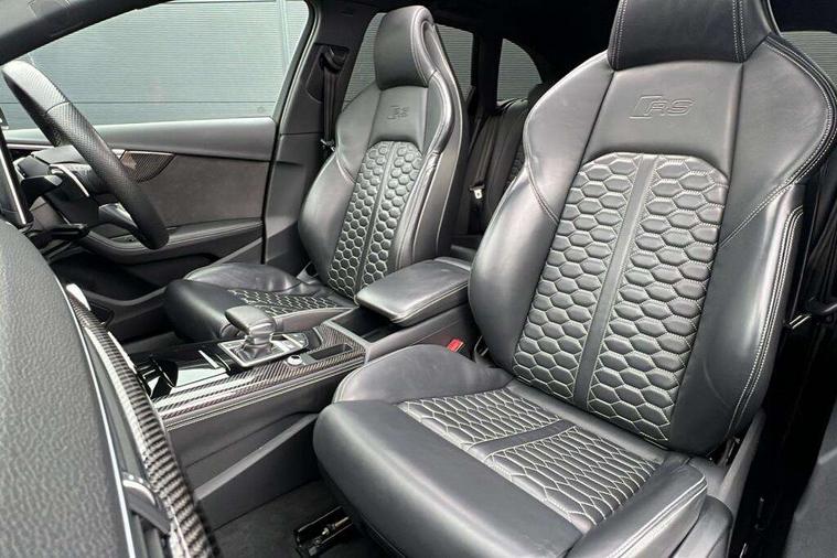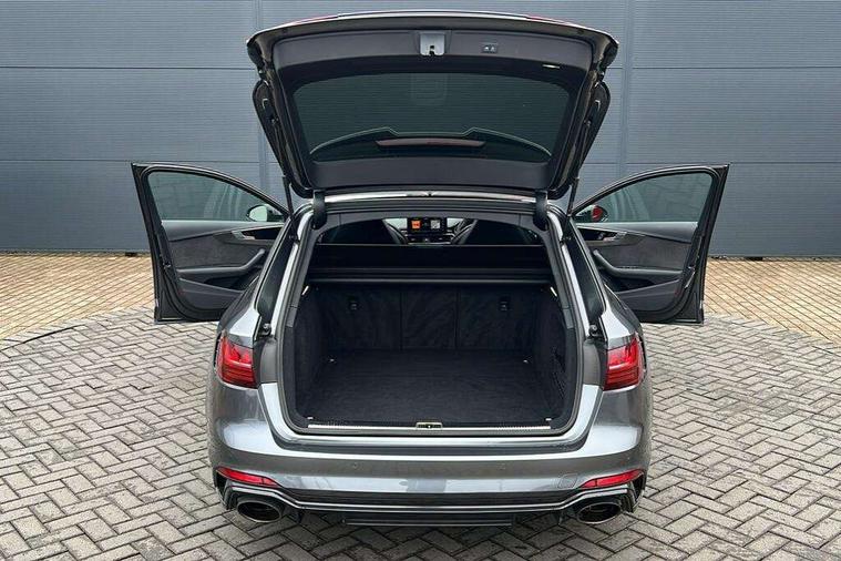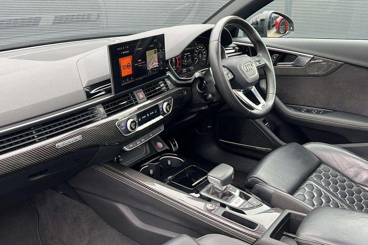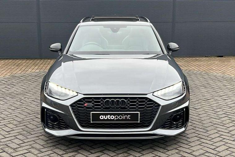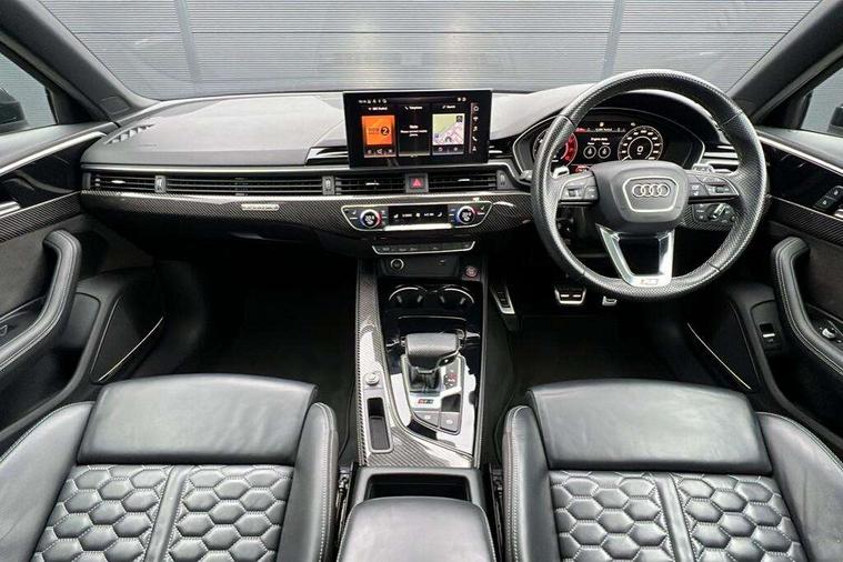 7" Colour driver information system, Amazon alexa Integration, Audi connect safety and service (e-call), Audi drive select, Audi parking system plus with front and rear sensors, Audi phone box with wireless charging, Audi side assist, Audi smartphone interface, Audi virtual cockpit with RS specific display, Automatic start-stop system with coasting functionality and efficiency programme, Bluetooth interface, Electromechanical power steering, Email, calendar and text messages displayed via MMI, MMI Navigation plus with MMI touch includes 10.1" high resolution colour MMI display, 3D map, Power opening/closing tailgate, Rear view camera, Service interval indicator, Voice control system, 58 Litre fuel tank, Quattro sports differential, 2 USB charging ports, Audi sound system, DAB digital radio module, Acoustic windscreen, Audi matrix LED headlights with LED rear lights + dynamic front and rear indicators, Audi rings and lettering glossy black, Auto dimming rear view mirror, Automatic headlights + automatic windscreen wipers, Black roof rails, Blue tinted glass, Body colour door handles, Electric front windows, Electric rear windows, Electrically folding auto dimming/adjustable/heated door mirrors with memory function, LED side indicators and kerb view function for passenger side, Flared front and rear wheel arches, Front bumper with enlarged air inlets, Headlight range control, High beam assistant, High gloss black door mirror housing, High gloss black triangular aperture at rear door, Honeycomb design grille with quattro logo, Lateral air inlets next to front headlights, LED daytime running lights, LED indicators in door mirrors, Privacy glass with rear acoustic glazing, Rain and light sensors, Rear wiper, Roof spoiler, RS 4 badges on grille, the front wing panels and rear, RS4 dual branch chrome tailpipes with left and right oval pipes, 3 spoke multifunction plus leather steering wheel with heating and RS badging, 40/20/40 split folding rear seats with rear centre armrest, Black cloth headlining, Deluxe 3 zone electronic climate control, Electric load area cover, Electrically adjustable front seats, Fine nappa leather with contrast honey comb stitching + super sports seats with pneumatic massage function, Front centre armrest, Front headrests, Front/rear floor mats, Heated front seats, Height and reach adjustable steering wheel with full size airbag, Illuminated door sill trims with RS4 logo, ISOFIX child seat mounting and top tether, Leather door armrests and knee pad, Luggage compartment carpet, Rear headrests, Retractable load area cover, RS Specific perforated leather gear lever knob with contrast stitching, Stainless steel pedals, Sunvisors with vanity mirrors, Carbon black styling pack - RS4, LED Interior light pack - RS4, Non Smokers pack, 3 point seatbelts on all rear seats, Adaptive driver and front passenger airbags, Electromechanical parking brake, Electronic stabilisation control including ABS, ASR and EDL, Enhanced braking system, Front head airbags, Front seatbelt pretensioners + load limiters, Front side airbags, Hill hold assist, Multi-Collision braking, Pop-up bonnet for pedestrian protection, Pre sense city, Rear side airbags, Seatbelt monitoring, Traction control, Tyre pressure warning, Variable restraint system, Warning triangle and first aid kit, Anti theft alarm, Anti-theft wheel bolts, Immobiliser, Keyless Go, Remote central locking, Remote control key with RS emblem, Carbon twill inlays, 20" 5 segment spoke evo design glossy black sport alloy wheels, Tool kit, Tyre repair kit,