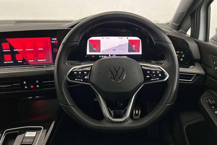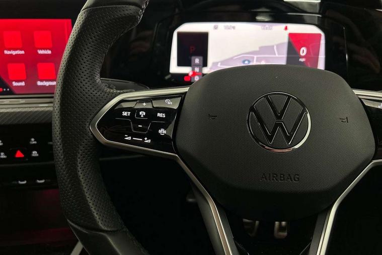 Adaptive cruise control (ACC) with speed limiter and front assist (reacting to vehicles pedestrians and cyclists), Car2X communication, Digital cockpit pro - 10.25" high resolution TFT dash display screen with customizable menus and information, Driver alert system, Dynamic road sign display, eCall - Emergency call service for SOS calls to emergency response, Lane assist, Mobile phone interface with wireless inductive charging function, Multifunction camera for distance control, PAS, Speedo, rev counter, electronic odometer, trip, service interval display, exterior temperature and fuel gauge, Start/Stop function, USB-C ports in the front and rear centre console with increased charging performance, Warning buzzer and light for front seatbelts unfastened, Wireless app connect, Petrol Particulate Filter, XDS electronic differential lock for improved traction and handling, Premium USB cable in choice of either Apple or Android smartphone compatibility, Ambient lighting, exterior illuminated styling elements at the sides, Auto dimming rear view mirror, Automatic headlamp activation with Coming home and Leaving home feature, Automatic headlights, Body colour door handles, Body colour door mirrors with integrated indicators, Body colour rear roof spoiler, Electrically heated and adjustable door mirrors with memory feature, Front and rear electric windows, Heat insulating glass windscreen, Heated rear windscreen, High level 3rd brake light, Highway light, LED License plate illumination, R Line body coloured bumpers, Rain sensor, Rear fog light on one side and reversing lights on both sides, Rear lights incorporating LED technology, Rear side wing doors, Rear tinted glass 65% light absorbing from B pillar backwards, Rear windscreen washer and wiper with interval delay, Welcome light, 12V socket in front centre console, 12V socket in luggage compartment, 3 rear head restraints, 3 seat bench in 2nd row, Ambient lighting - Customisable 30 colour ambient lighting, Black roof lining, Brushed stainless steel pedals, Chrome plated surround to electric mirror button, window switch and air vent surrounds, Drivers and front passengers sun visors with vanity mirrors, Front + rear carpet mats, Front centre armrest with storage compartment, Front cupholders x 2, Front passenger seat, Front reading lights x 2 incorporating LED technology, Front seat lumbar support adjuster, Front sports seats, Glovebox, Height adjustable front seats, Height and reach adjustable steering wheel, Isofix child seat preparation for 2 rear child seats and front passenger seat, Luggage compartment lighting, R Line door and side trim panel, R Line front seats integrated head restraints, R-Line leather wrapped multi function sports heated steering wheel, Removable luggage compartment cover, Sardegna cloth upholstery with front and outer rear seats Art Velour inner sides of bolsters, Split folding backrest with centre armrest and unsplit rear seat bench, Titanium black instrument panel, Woven fabric storage compartments in front and rear doors, 3 point height adj front seatbelts + pretensioners, 3 rear three point seatbelts, ABS, Child locks on rear doors, Driver and front passenger airbag with front passenger airbag deactivation, Drivers and front passengers safety optimised head restraints, Electronic parking brake with auto hold, ESC (Electronic Stability Control), Extended pedestrian protection measures, Front and rear passengers curtain airbag system including front side airbags, Front centre airbag, Front disc brakes, Front side airbags with curtain airbags, Rear disc brakes, Two tone horn, Tyre pressure monitoring system, Alarm with interior protection and deactivation via infotainment system, Electronic engine immobiliser, Carbon grey decorative inserts in dash and front door trim panels, High gloss black centre console,