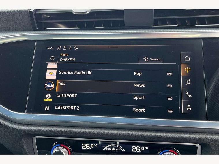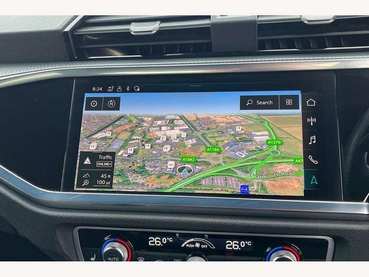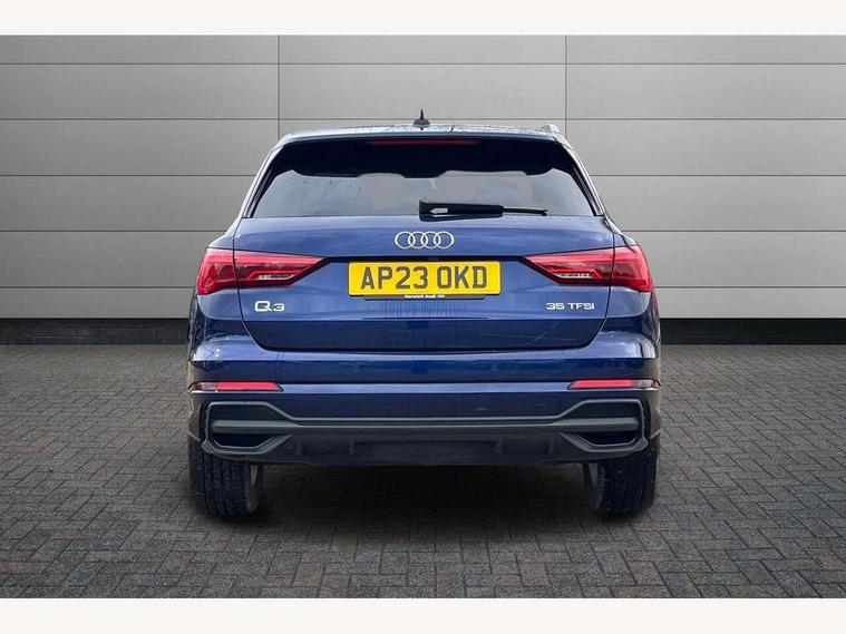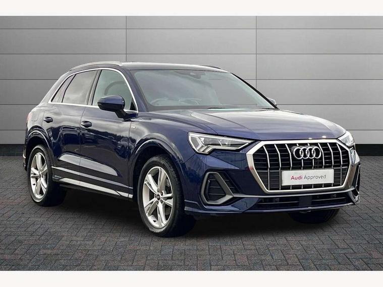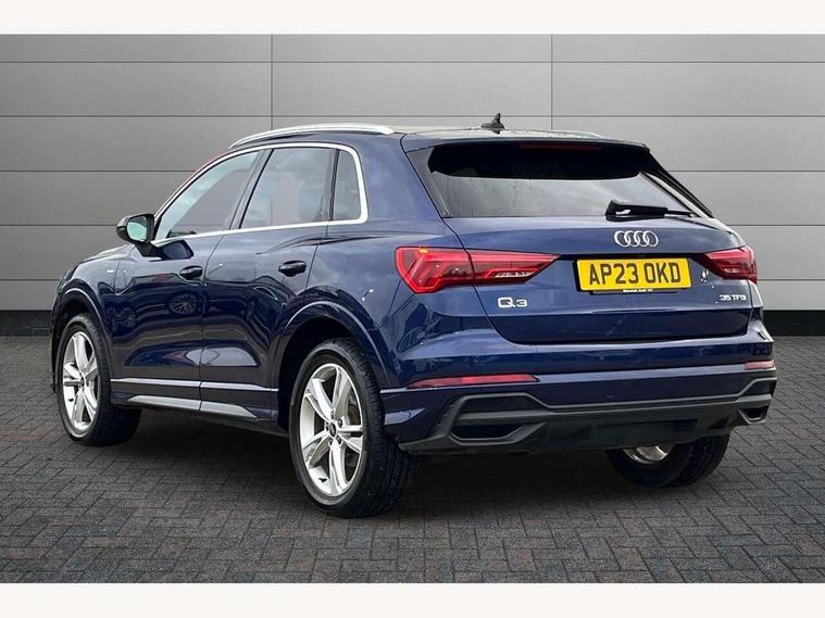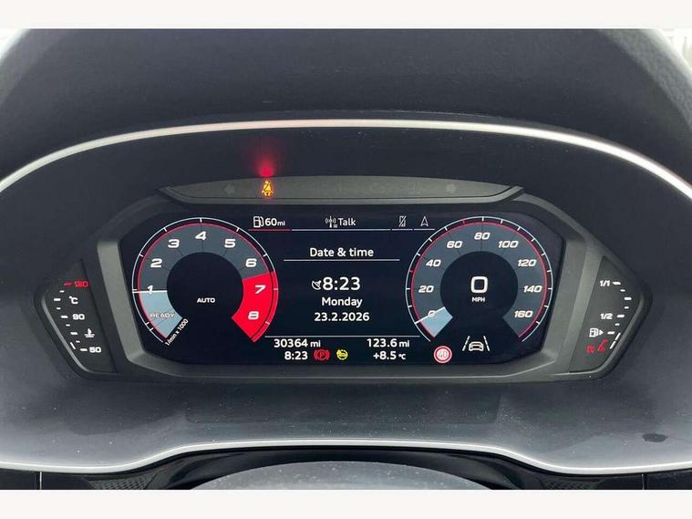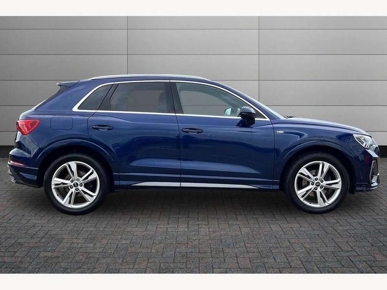 Amazon alexa Integration, Audi drive select, Audi lane departure warning, Audi Virtual Cockpit - 10.25" display, Bluetooth interface, Camera based traffic sign recognition, Cruise control + speed limiter, Legal emergency call, MMI Navigation Plus with high resolution 10.1 inch touchscreen colour display, Power operated tailgate, Progressive steering, Rear parking sensors, Service interval indicator, Smartphone interface includes wireless Apple carplay/Android Auto, Start stop system with recuperation, Voice control system with natural language interaction, Sports suspension, 2 USB-C ports with charge and data functions, 6 passive loudspeakers, DAB digital radio module, Acoustic windscreen, Aluminium roof rails, Aluminium window trim, Anthracite black radiator grille, Auto dimming frameless rear view mirror, Body colour front spoiler blade, Body coloured bumpers, Electrically folding, adjustable and heated door mirrors with integrated LED side indicators and kerb view function for passenger side, Front and rear electric windows, Front fog lights, Front side air inlets in matt platinum grey, Grille vertical bars in aluminium silver/Matt, High gloss black finish B and C pillars, LED Dynamic rear indicators, LED headlights with LED daytime running lights, LED rear lights, LED third brake light, Privacy glass dark tinted rear and rear-side windows (from B-pillar backwards), Rain and light sensors, Rear diffuser grille in grained matt black, Rear diffuser strip in matt anthracite black, Rear side wing doors, Rear wiper, S line badges on front wings, S Line front and rear bumpers, Side skirt insert in matt Platinium grey, Variable front intermittent wipers, 12V socket in rear centre console, 3 seat bench in 2nd row, 3 spoke leather multifunction steering wheel features S badging and grips in perforated leather with contrast stitching, 40:20:40 folding with manual adjustment for 60:40 forwards/backwards position and backrest angle, Adjustable rear seat bench/backrest with centre armrest and cupholder, Black cloth headlining, Dual zone electronic climate control, Front and rear black floor mats with contrast stitching in rock grey, Front and rear headrests, Front and rear roof module including reading lights, Front centre armrest, Glove compartment lighting, Height and reach adjustable steering wheel, Illuminated door sill trims with S logo, ISOFIX child seat mounting for front passenger with airbag deactivation and outer rear seat including top tether attachment point for outer rear seats, Luggage compartment light, Manual front seats with height adjustment, Perforated leather gearknob, Single front passenger seat, Stainless steel luggage compartment sill finisher, Stainless steel pedals, Ambient lighting pack - Q3, Non smoking pack - Q3, 3x3 point rear seatbelts, 6 airbags - Driver, front passenger, curtain and side windows, Audi pre-sense front with pedestrain and cyclist recognition, Electrically operated child locks on rear doors, Electromechanical parking brake, Electronic stabilisation control including ABS, ASR and EDL, Front seatbelt reminder, Hill descent control, Hill hold assist, Pre sense basic, Seatbelt monitoring, Tyre pressure warning, Warning triangle and first aid kit, Anti theft alarm, Anti theft wheel bolts, Immobiliser, Remote central locking, Aluminium look interior elements, Dark matt brushed aluminium inlay, Detail dashboard around MMI touch colour display in glass look, black with surround in aluminium look, Leatherette door armrest,