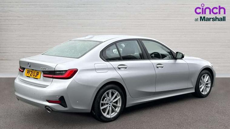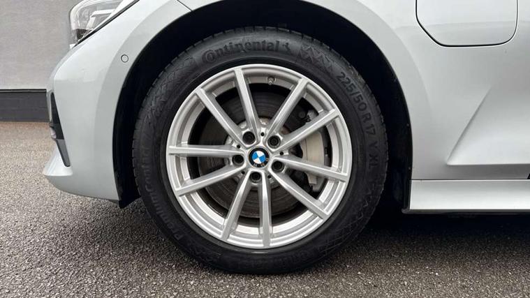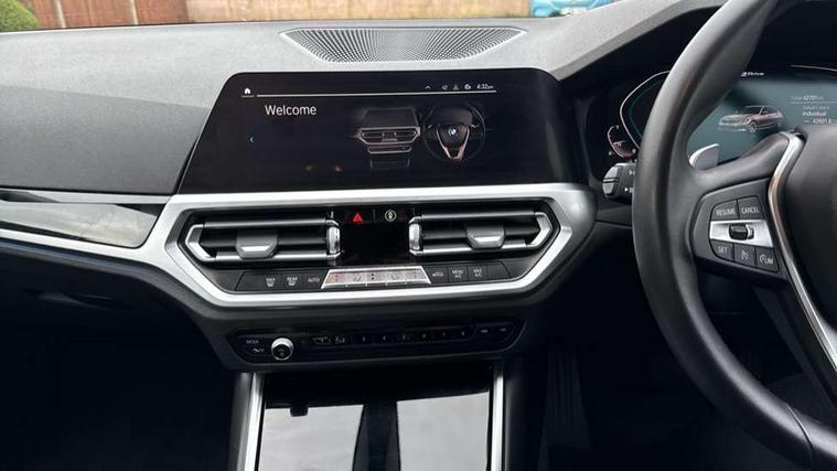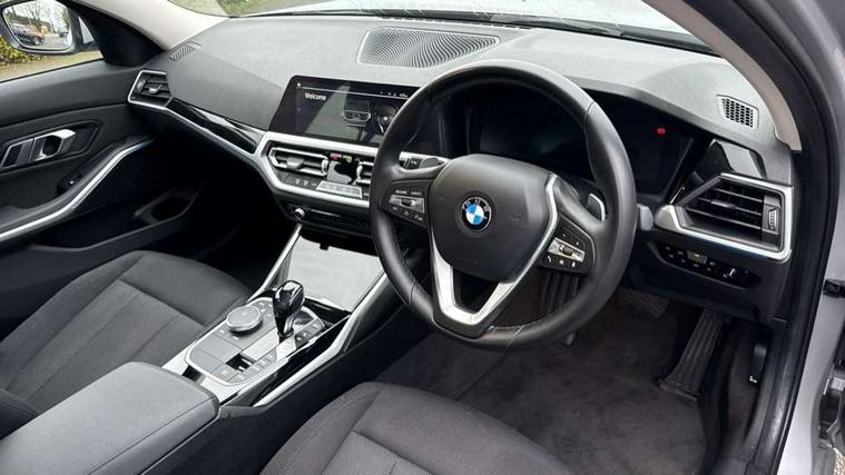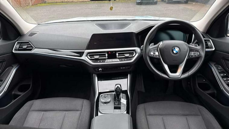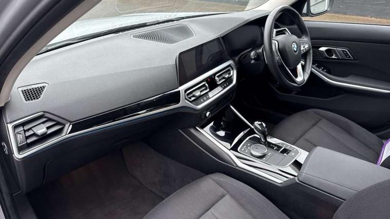 Active guard plus, Attentiveness assist, Auto start-stop, Bluetooth hands free facility with USB audio interface with audio streaming, BMW iDrive controller on centre console, BMW Live Cockpit Professional Nav with 12.3" instrument display + 10.25" display, Intelligent Voice Assist, BMW OS 7, HDD, 2USB, 4G LTE connect, BMW service history, BMW Teleservices, Brake pad wear indicator in front and rear, Check Control warning system for monitoring of lights and door/luggage compartment open warning, Condition based service, Cruise control with brake function + speed limiter, Electric power steering with Servotronic steering optimised at all speed ranges, Instrument cluster with speedometer with mph readout, tachometer, fuel gauge and oil temperature gauge, Integrated owners handbook, Oil sensor for level and grade, warning by check control system, On board computer - average speed+fuel consumption, service interval, clock/date, odometer/trip meter, outside temperature display and ice warning, Optimum shift indicator, Personal Profile - automatic lock when driving away selectable, Balanced 50/50 weight distribution, Battery cut-out switch, Charging cable - Mode 2, Drive performance control - ECO PRO, comfort and sport modes, Electronic differential lock control (EDLC), Petrol Particulate Filter, Stroke dependent dampers, DAB tuner, Electronic service booklet, Stereo speaker system with 2 mid range speakers in the front door trims and rear parcel shelf + 2 central bass speakers underneath the front seats, Acoustic glazing, Active airstream chrome frame kidney grille with 8 high gloss black vertical slats, Automatic headlight beam throw control with load dependent regulating reaction, dynamic compensation of braking dive and acceleration squat, Black roof mouldings, Body colour door handles, Body colour front and rear bumpers, Body colour fuel filler flap, Body colour mirror caps with bottom segment in matt black, Dynamic brake lights, Electric windows - front and rear, with open/close fingertip control, anti-trap facility and comfort closing, Exhaust tailpipe - split left and right, Exterior mirrors - electrically folding with anti-dazzle, Fading support, Front and rear bumper system with replaceable deformation elements, Front black door sill finishers with BMW designation, Green tinted heat protection glazing, Interior rear view electrochromatic mirror with automatic anti dazzle function, LED daytime running lights, LED front fog lights, Lightweight engineering, Matt black exterior B pillar, Model designation on right side of tailgate, Rain sensor with automatic headlight activation, Shark fin antenna, Two part LED tailights in L-shape with components in smoked glass, brake light, LED turn indicator and rear fog light, Visible VIN plate, Welcome lights in interior and door handle area, Windscreen wipers with integrated washing jets, 12V power socket in front storage compartment, 2 front cupholder in centre console with clamping elements and matt black inlay, 3 rear seats with non folding headrests with 3 point seat belts, 3 zone automatic air conditioning, 4 pieces lashing eyelets in luggage compartment, 40:20:40 split folding rear seat with loading system, Ambient lighting with welcome carpet light, Armrest integrated in front and rear door trim + front centre console armrest, Centred top Luggage compartment lights, Four grab handles integrated in roof lining, Front and rear door exit lighting (left / right), Front and rear door pockets, Front and rear reading lights, Front and rear velour floor mats, Front head restraints, Height adjustable mechanically and infinitely variable steering column, Illuminated armrest storage compartment, Illuminated glove compartment with separate small compartment, Interior lighting - front centre over interior mirror with soft light, rear centre and front and rear footwell lighting, Make-up mirror lights, Rear centre armrest with 2 cupholders, Rear centre console with storage compartment and ventilation grille, Standard seat for driver and passenger with manual adjustment, Sunvisors with vanity mirrors and ticket pocket, Three spoke multifunction sport leather steering wheel, Toolkit located in luggage compartment, Connected pack professional - 3 Series Saloon/Touring, 2 tone horn, BMW emergency call, Brake energy regeneration, Braking pre-tensioning, Child proof locking system in rear door, Child seat ISOFIX attachment rear outer seats, Coasting in idle in ECO PRO mode, Crash sensor activating of airbags, Unlocking doors, hazard warning lights, interior light, safety battery terminal, Driver and front passenger side airbags, integrated in the door side seat backrest bolsters for all seat variants, Driver/Front Passenger airbags, Dry braking, Dynamic brake control, Dynamic stability control + (DSC+) - Anti-lock Braking System (ABS) with brake assist and cornering brake control + Automatic Stability Control (ASC), Dynamic Traction Control - DTC, Electric parking brake including automatic hold function and automatic release of the parking brake when driving off, Front passenger manual airbag deactivation, Head airbags for all 4 outer seats, Hill start assist, Seat belt security check for driver and front passenger, Side impact protection, Three 3 point seat belts on all seats including front belt stopper, pyrotechnic belt tensioners and belt force limiters, Tyre pressure monitoring with three level warning strategy, Ventilated front and rear disc brakes, Warning triangle and first aid kit, Alarm system (Thatcham 1) with remote control and electronic engine immobiliser, Central locking switch for all doors, fuel filler cap and luggage compartment, Remote control with integrated key one button open/close vehicle and windows, sole opening of the luggage compartment lid and panic mode, Start/stop button with Comfort Go keyless engine start and auto Start/stop deactivation button, Reduced rolling resistance tyres,