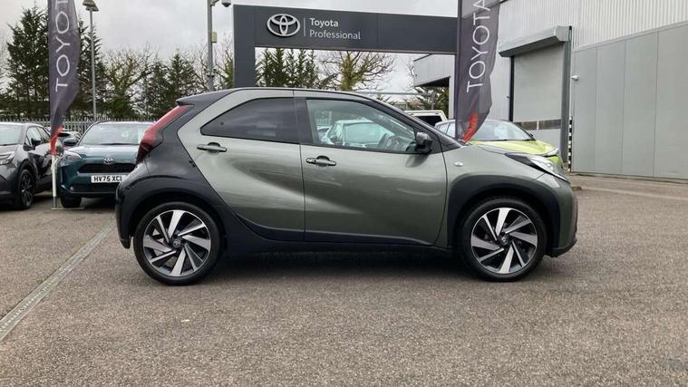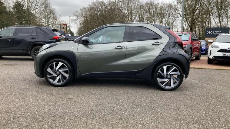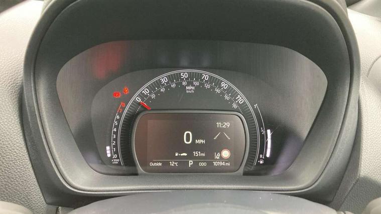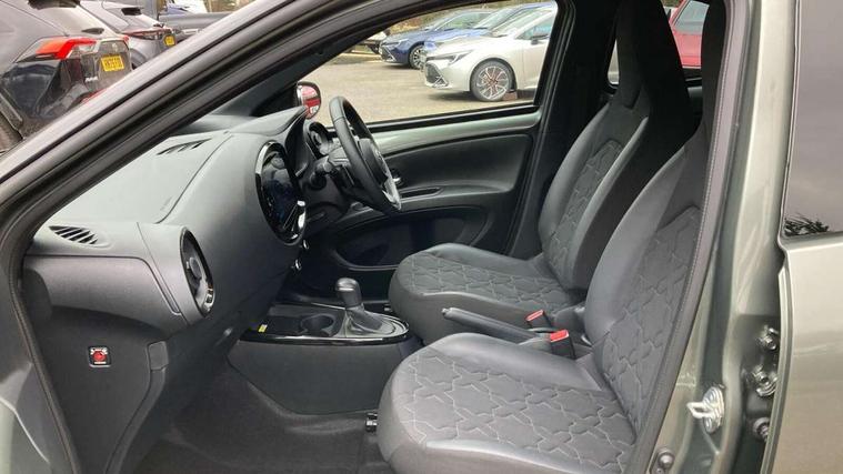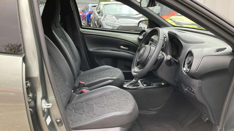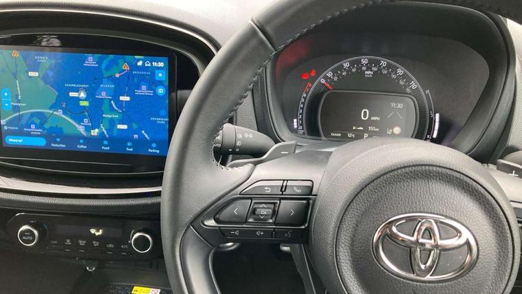 4.2" TFT colour screen, Adjustable speed limiter, Analogue speedometer, Bluetooth connectivity, Digital tachograph, Driver attention alert system, eCall emergency call system, ECO-driving indicator, Electric power steering, Front and rear parking sensors with auto brake, Intersection turn assist, Key reminder warning, Noise reduction kit, Pre collision system with emergency steering assist, Remote boot door release on key, Reversing camera with static guide lines, Smart entry and push button start, Speed limit display, Start and stop, Wireless charger, Wireless Smartphone Integration includes Apple CarPlay and Android auto, Vehicle Stability Control (VSC), 4 speakers, 9" HD multimedia display touch screen with Toyota smart connect, DAB digital audio broadcast, USB connector, Auto headlights, Auto wipers, Automatic headlights cut-off, Automatic high beam On/Off switch, Bicycle towing hook, Black fog light surrounds, Black side protection mouldings, Black wheel arch mouldings, Body colour door handles, Body coloured front bumper, Boot door scuff plate, Eclipse black rear bumper, Electric heated door mirrors, Follow me home headlights, Front and rear underruns in silver, Front fog lights, Front power windows, Gloss black door mirrors, Gloss black upper front grille, Headlight cut-off reminder, LED daytime running lights guide, LED front light guide, LED High mounted stop lamp, LED projector headlights, Manual day/night rear view mirror, Manual headlight levelling, Pagoda roof, Power adjustable door mirrors, Privacy glass, Rain sensor, Rear combination lights LED bulb type, Rear side wing doors, Rear windscreen defogger, Rear windscreen wiper, Remote hazard lights system, Short antenna, Variable intermittent windscreen wipers, 12v power outlet - front, 2 seat bench in 2nd row, 3 spoke leather steering wheel, 50/50 split folding rear seat, Adhesive roof headlining, Adjustable speed limiter switch on steering wheel, Audio and telephone switches on steering wheel, Auto air conditioning, Black roof lining, Body colour satin anodised insert on steering wheel, Boot light, Centre room light, Chrome interior door handles, Chrome surround on air conditioning buttons, Clean air filter, Floor mats, Front and rear cup holders, Front head rest deco art, Front head restraints, Gear shift indicator, Height adjustable driver seat, Intelligent adaptive cruise control switch on steering wheel, ISOFIX child restraint system on rear seats, Lane departure alert switch on steering wheel, Leather gearshift knob, Light blue ambient lighting in centre console, Manual tilt steering wheel, Manually reclining and sliding driver seat, Manually reclining and sliding front passenger seat, Multimedia switches on steering wheel, Paddle shift levers on steering wheel, Partial synthetic leather upholstery, Pollen filter, Rear door pockets, Rear head restraints, Remote air-conditioning system, Satin silver insert on gear shift knob, Single compartment glovebox with lights, Single front passenger seat, Soft tonneau cover, Sun visors with mirror on driver and passenger side, Voice recognition switch on steering wheel, Toyota safety sense pack - Aygo X, Anti lock braking system + Electronic brake force distribution, Child safety door lock, Emergency brake light signal (EBS), Hill start assist control (HAC), Passenger airbag on/off switch, Seat belt reminder for front and rear seats, Supplement restraints system (SRS) - 6 airbags, Traction control, Tyre pressure warning system, Immobiliser, Remote power door locks, Black wheel centre caps, Tyre repair kit,