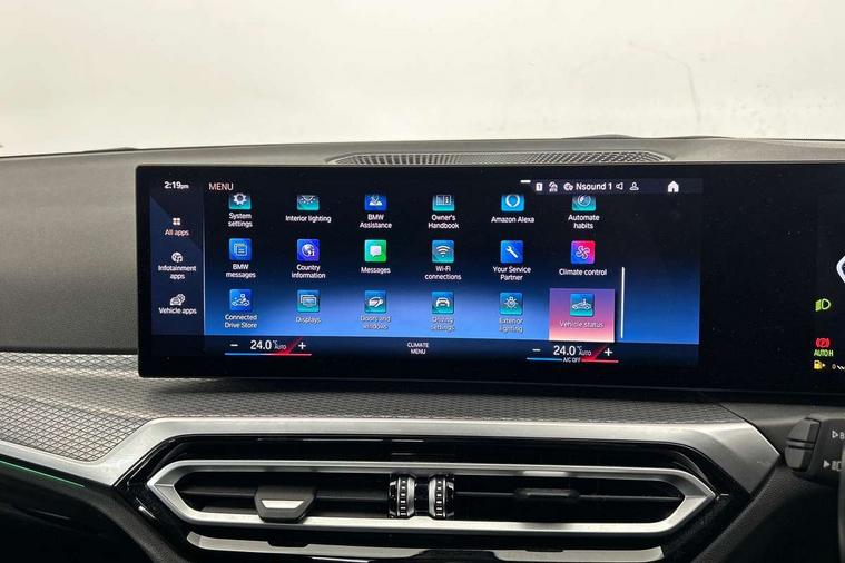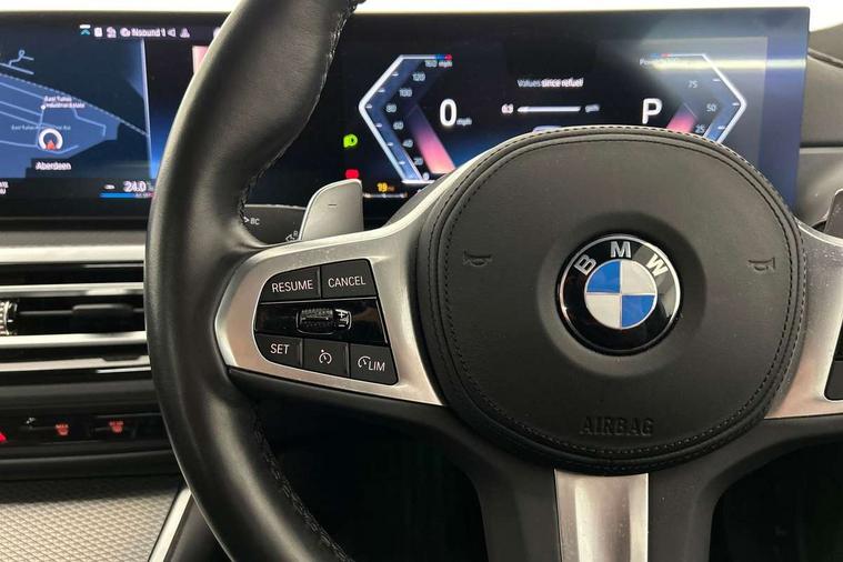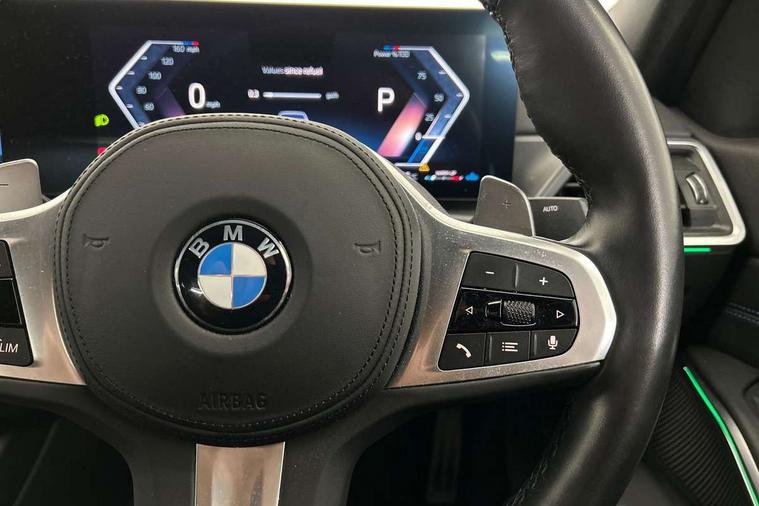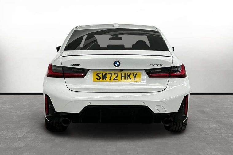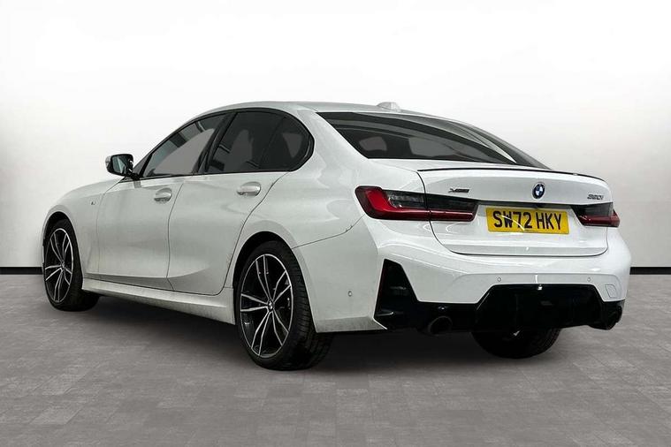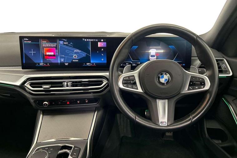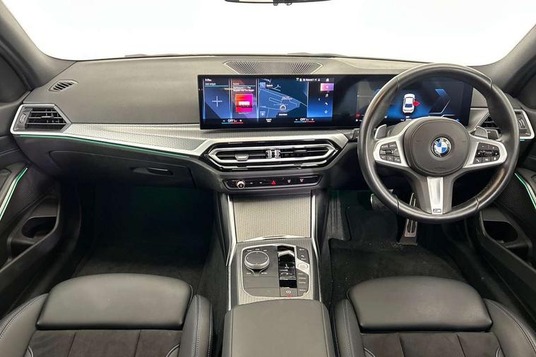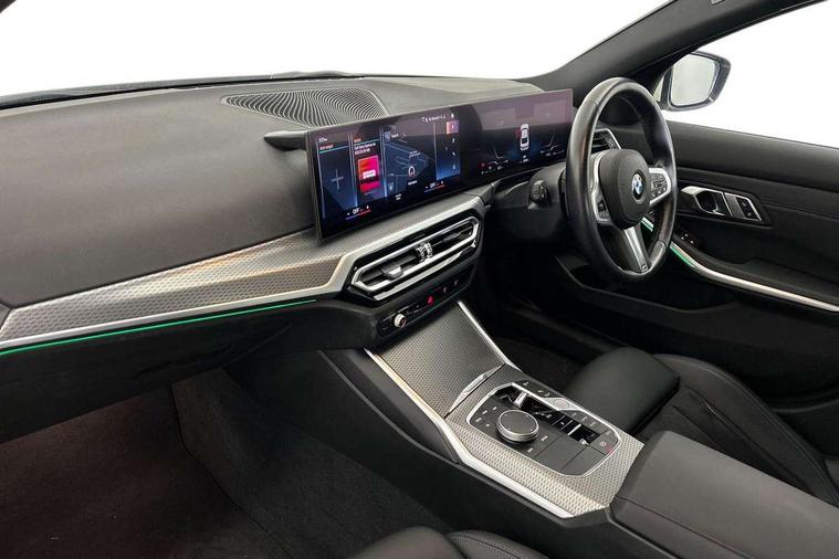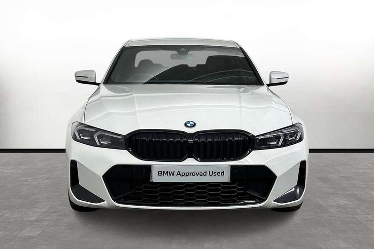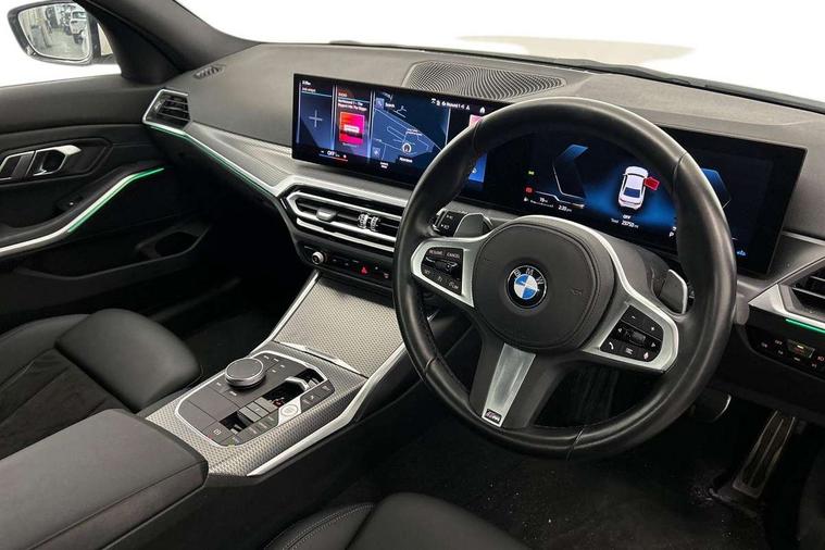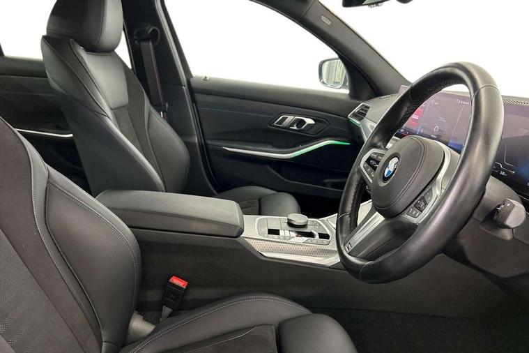 Active guard plus, Attentiveness assist, Automatic Start/stop button, BMW iDrive, BMW Teleservices, Condition based service, ConnectedDrive Services, Driving experience switch, Live cockpit plus with Navigation + 12.3" instrument display + 14.9" display, Intelligent voice assist, 2 USB, 4G LTE connect, Oil sensor for level and grade, Preparation for driver assistance, Shifting point display, Smartphone integration, Variable sport steering, Double joint spring strut front axle, Electronic differential lock control (EDLC), Fuel tank breather system, M sport suspension, Sport automatic transmission with steering-wheel mounted gearshift paddles and launch control, DAB tuner, 3rd brake light, Acoustic glazing, Auto dimming rear view mirror, Automatic headlight beam throw control with load dependent regulating reaction, dynamic compensation of braking dive and acceleration squat, BMW emblem, engine compartment lid and tailgate, Body colour roof fin, Door sill strips, Electric windows - front and rear, with open/close fingertip control, anti-trap facility and comfort closing, Follow me home headlight function, Front and rear bumper system with replaceable deformation elements, Front apron plastic in body colour, Fuel filler flap - right rear in body colour, Heated washer jets, Illuminated bow type door handles in body colour drivers side with door lock, Interior rear view electrochromatic mirror with automatic anti dazzle function, LED headlights with LED daytime running lights and LED turn indicator, LED rear lights, Licence plate panel integrated into front bumper and tailgate, Matt black B-pillar finsher, Matt black window recess cover, Model designation on right side of tailgate, One piece front bumper cover including towing eye cover in body colour, Rain sensor with automatic headlight activation, Rear boot, Rear side wing doors, Reversing lights, Side frame decorative moulding black matt, Visible exhaust tailpipe finisher, Welcome lights in interior and door handle area, 12V power socket in front storage compartment, 2 front cupholder in centre console with clamping elements and matt black inlay, 3 seat bench in 2nd row, 3 zone automatic air conditioning, 40:20:40 split folding rear seat with loading system, Anthracite headlining, Armrest integrated in front and rear door trim + front centre console armrest, BMW ID, Driver backrest width adjustment, Folding rear centre armrest with 2 cupholders, Front and rear door exit lighting (left / right), Front and rear footwell lighting, Front and rear headrests, Front and rear reading lights, Front and rear velour floor mats, Front sport seats, Heated front seats, Height adjustable mechanically and infinitely variable steering column, Illuminated armrest storage compartment, Illuminated glove compartment, Illuminated luggage compartment, Lashing eyelets in luggage compartment, LED ambient lighting with welcome carpet light, M Sport multifunction leather steering wheel, Make-up mirror lights, Single front passenger seat, Standard seat for driver and passenger with manual adjustment, Sunvisors with vanity mirrors and ticket pocket, Toolkit located in luggage compartment, Connected pack professional - 3 Series Saloon/Touring, Interior and exterior mirror pack - 3 Series Touring/Saloon, M Aerodynamics package - 3 Series Saloon/Touring, M sport exterior styling pack - 3 Series Saloon/Touring, Storage compartment pack - 3 Series Saloon/Touring, 3x3 point rear seatbelts, BMW emergency call, Child locks on rear doors, Crash sensor activating of airbags, Unlocking doors, hazard warning lights, interior light, safety battery terminal, Driver and front passenger with seat occupancy detection for driver's and passenger side, Driver and passenger side airbags, body protection at side and airbags deploy from seat backrests, Dynamic brake control, Dynamic stability control + (DSC+) - Anti-lock Braking System (ABS) with brake assist and cornering brake control + Automatic Stability Control (ASC), Dynamic Traction Control - DTC, Electric parking brake including automatic hold function and automatic release of the parking brake when driving off, Head airbags in 1st and 2nd row, head protection at side, curtain airbags open from headliner above 1st and 2nd row, Plastic fuel tank, Side impact protection, Tyre pressure monitoring with three level warning strategy, Ventilated front and rear disc brakes, Warning triangle and first aid kit, Alarm system, Centre lock switch, Closing system with central locking, Electronic vehicle immobiliser,
