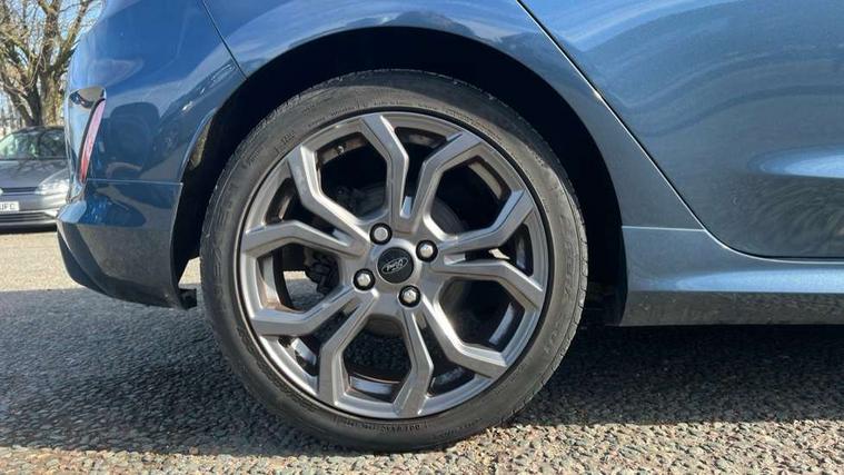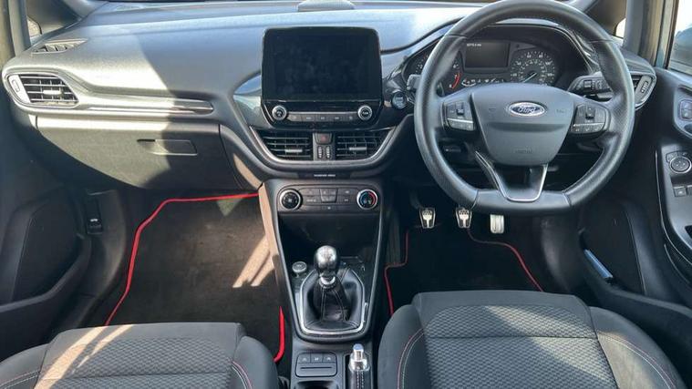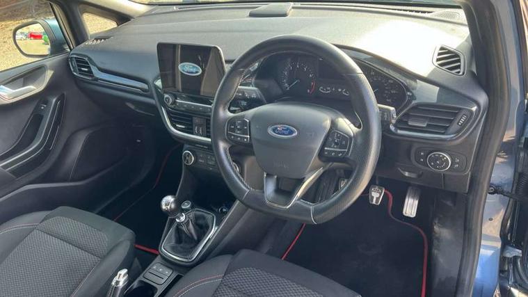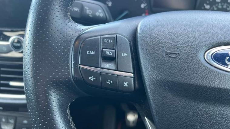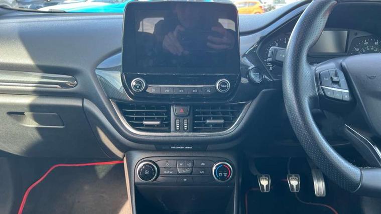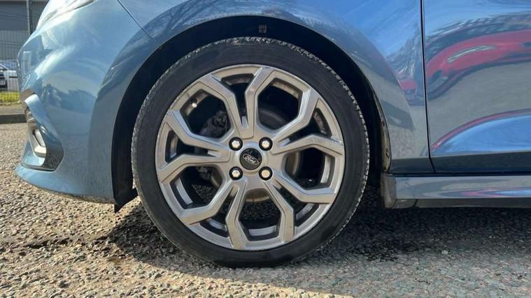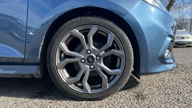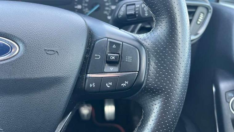 Bluetooth system, Electric power steering, Lane keep assist, Speed limiter, SYNC Emergency Assistance, Trip computer, Sports suspension, 2 USB ports, Auxiliary input socket, Ford SYNC 3 DAB radio, apple car play and android auto with voice control, Steering wheel mounted controls, USB connection, Automatic headlights, Body colour bumpers, Body colour door handles, Body colour electric adjustable heated door mirrors, Body colour large rear spoiler, Body styling kit, Chrome door handles, Cornering front fog lights, Electric front windows/one touch facility, LED daytime running lights, Quickclear heated windscreen, Rear wiper, Tinted glass, Upper front grille chrome surround, 12V Accessory socket in centre console, 3 spoke flat bottomed leather steering wheel, 60/40 split folding rear seat, Adjustable head restraints, Black headlining, Boot carpet, Centre console with armrest, Chrome inner door handles, Cloth upholstery, Footwell illumination, Front and rear velour floor mats, Front map reading lights, Front seat and rear pockets, Height adjustable driver's seat, Illuminated cup holders, Illuminated glovebox, Leather gear knob, Leather trimmed handbrake handle, Load area light, Manual air conditioning, Overhead console with sunglasses holder, Pollen filter, Rake/reach adjustable steering wheel, Rear centre head restraint, Sports front seats, Sports pedals, 3 point seatbelts on all rear seats, ABS+EBA, Curtain airbags, Driver and passenger airbags, Drivers knee airbag, ESP + traction control, Front passenger airbag deactivation, Front side airbags, Hill start assist, Seatbelt warning, Tyre pressure monitoring system, Immobiliser, Keyless start with 'Ford Power' starter button, MyKey system, Remote central locking, Thatcham Cat.1 alarm,