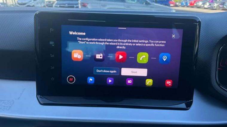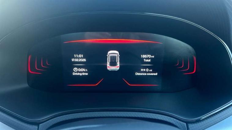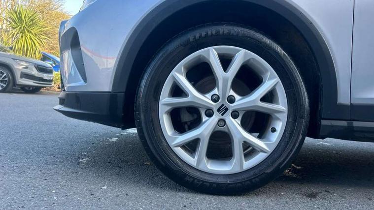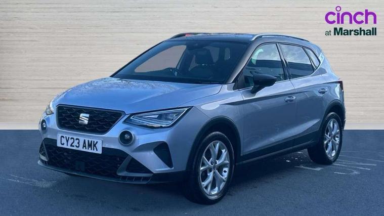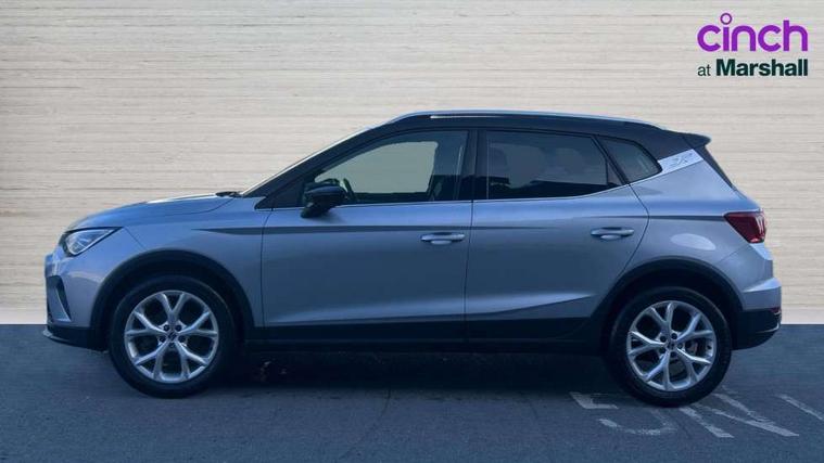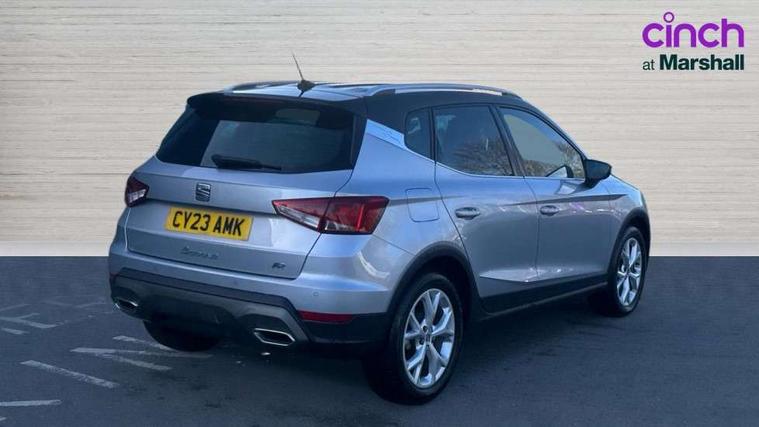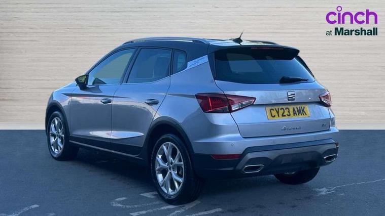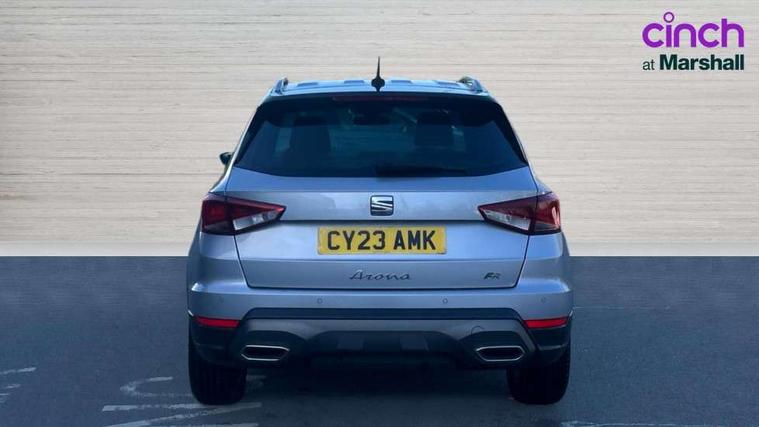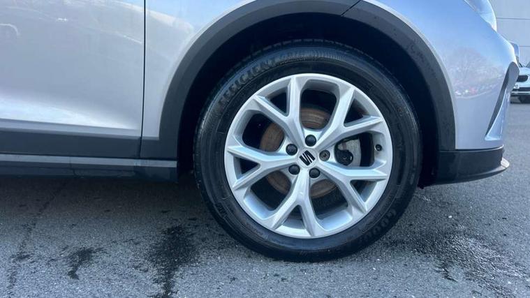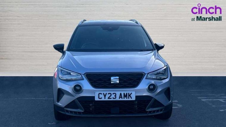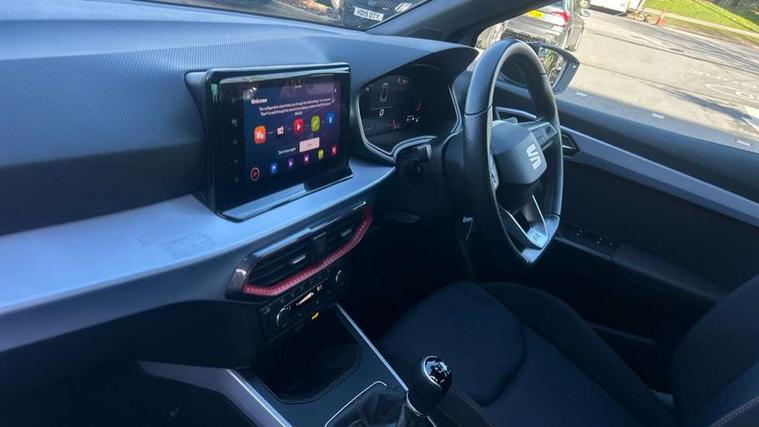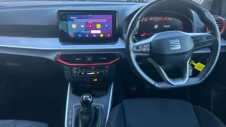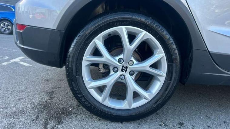 'Lights On' Reminder warning buzzer, 8" Digital cockpit, Digital clock, E-call, Electric speed sensitive power steering, Full Link Smartphone Integration with Mirror Link, Apple Car Play, Google Android Auto with USB Type C cable for Apple and Android compatibility, Lane keeping system, Low fuel warning light, Outside temperature display, Rear parking sensor, RPM counter, Seat connect with safety, service, remote and online, SEAT Drive profile - Four different models normal-sport-eco-individual, steering response, throttle response, Trip computer, Wireless phone charger, 9.2" colour touchscreen with navigation system, voice control and USB port (type c), Bluetooth interface for hands free and audio streaming, DAB digital radio and AM/FM radio, Steering wheel mounted audio controls, Anti theft roof antenna, Auto dimming interior rear view mirror, Automatic activation of hazard warning lights, Body coloured bumpers, Body coloured door handle inserts, Chrome roof rails and window surrounds, Dark tinted rear windows, Electric front/rear windows, Electrically adjustable, heated and folding door mirrors, Front fog lights with cornering function and rear fog light, FULL LED automatic headlights with dynamic headlight range control, coming and leaving home, LED daytime running lights, LED rear tail lights and licence plate lights, Protective side mouldings, Rain sensing wipers, Rear side wing doors, Rear spoiler, Rear window wash/wipe, Roof colour door mirrors, Third brake light, Twin exhaust pipe styling hidden exhaust pipe, Visible VIN plate, Windshield wiper with intermittent control and potentiometer, 2 cupholders, 3 seat bench in 2nd row, 60/40 split folding rear seat, Aircare filter, Black interior roof, Cloth upholstery, Double boot floor, Driver sunvisor with covered mirror + card holder, Dual zone climate control, Front courtesy light with 2x front and 2x rear reading lights, Front sport seats, Gear shift indicator, Height adjustable front seats, Height/reach adjustable steering column, Illuminated boot, Instrument lighting with brightness control, Interior ambient lighting, Interior light in footwell, central console and door panel, ISOFIX points in outer rear seats with top tether anchorage points, Passenger sunvisor with vanity mirror, Perforated flat bottomed leather steering wheel/gear knob/handbrake with red stitching and FR logo, Single front passenger seat, Two front and three rear height adjustable headrests, Interior chrome pack - Arona, 3 point seatbelts on all rear seats, ABS, Active front headrests, Child locks on rear doors, Driver and front passenger airbags with front passenger airbag de activation, front side and curtain airbags, Electronic stability control, Emergency Brake Assist (EBA) and front assist, Front and rear seatbelt reminder, Hill hold control, Multi-Collision braking, Tiredness recognition system, Traction control, Tyre pressure monitoring system, Alarm with back-up horn, Electronic engine immobiliser, Locking wheel bolts, Remote central locking + deadlocks, Tow away protection, Titan black dashboard, 17" Dynamic alloy wheels,