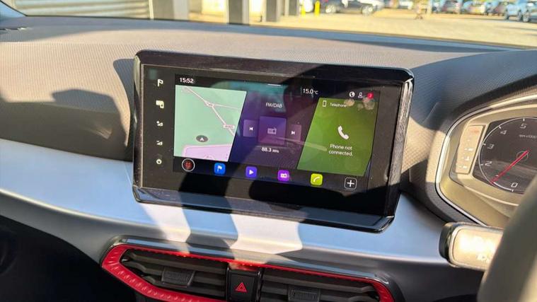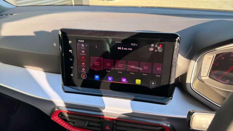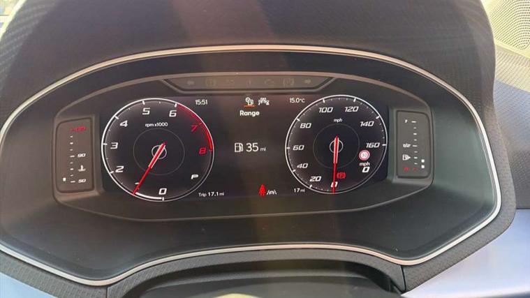 'Lights On' Reminder warning buzzer, 10" Digital cockpit, Digital clock, E-call, Electric speed sensitive power steering, Full link smartphone integration with mirror link, wireless apple carplay, Google android auto + USB Type C cable for apple and android devices, Lane keeping system, Low fuel warning light, Outside temperature display, RPM counter, SEAT Drive profile - Four different models normal-sport-eco-individual, steering response, throttle response and gear shifts mode, Trip computer, Wireless phone charger, 9.2" colour touchscreen with navigation system, voice control and USB port (type c), Bluetooth interface for hands free and audio streaming, DAB digital radio and AM/FM radio, Steering wheel mounted audio controls, Anti theft roof antenna, Auto dimming interior rear view mirror, Automatic activation of hazard warning lights, Body coloured bumpers, Body coloured door handle inserts, Chrome roof rails and window surrounds, Dark tinted rear windows, Electric front/rear windows, Electrically adjustable, heated and folding door mirrors, Front fog lights with cornering function and rear fog light, FULL LED automatic headlights with dynamic headlight range control, coming and leaving home, LED daytime running lights, LED rear tail lights and licence plate lights, Protective side mouldings, Rain sensing wipers, Rear side wing doors, Rear spoiler, Rear window wash/wipe, Roof colour door mirrors, Third brake light, Twin exhaust pipe styling hidden exhaust pipe, Visible VIN plate, 2 cupholders, 3 seat bench in 2nd row, 60/40 split folding rear seat, Aircare filter, Black interior roof, Double boot floor, Driver sunvisor with covered mirror + card holder, Dual zone climate control, Front comfort seats, Front courtesy light with front reading lights, Front seat back storage pockets, Gear shift indicator, Heated front seats, Height adjustable front seats, Height/reach adjustable steering column, Illuminated air vent surrounds, Illuminated boot, Instrument lighting with brightness control, Interior ambient lighting, Interior light in footwell, central console and door panel, ISOFIX points in outer rear seats with top tether anchorage points, Microsuede cloth upholstery, Passenger sunvisor with vanity mirror, Perforated flat bottomed leather steering wheel/gear knob/handbrake with red stitching and FR logo, Potentiometer, Single front passenger seat, Steering wheel mounted gearshift paddles, Two front and three rear height adjustable headrests, Interior chrome pack - Arona, Safe and driving pack (S) - Arona, 3 point seatbelts on all rear seats, ABS, Active front headrests, Child locks on rear doors, Driver and front passenger airbags with front passenger airbag de activation, front side and curtain airbags, Emergency Brake Assist (EBA) and front assist, Front and rear seatbelt reminder, Hill hold control, Multi-Collision braking, Tiredness recognition system, Traction control, Tyre pressure monitoring system, Alarm with back up horn with tow away protection, Deadlock, Electronic engine immobiliser, Locking wheel bolts, Remote central locking, Titan black dashboard, 18" Performance Cosmo grey matt alloy wheels,