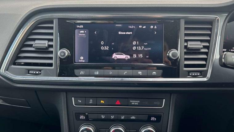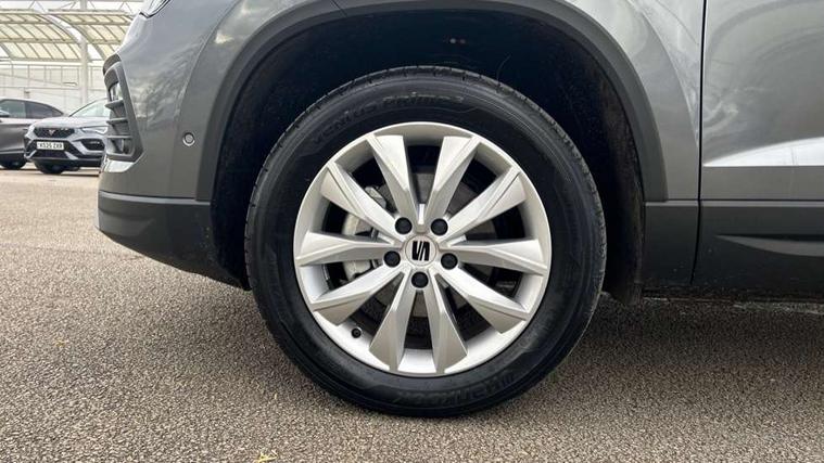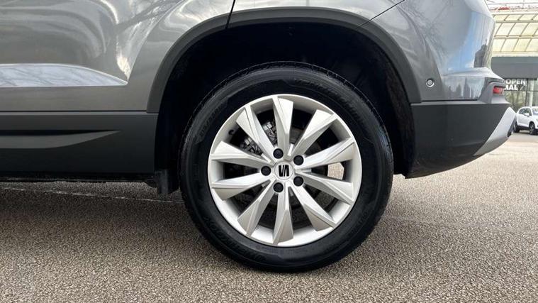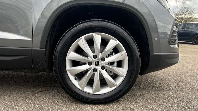 8" Digital cockpit, Cruise control system with speed limiter, E-call, Outside temperature gauge, PAS, Self parking functionality (includes front and rear parking sensors), Start/stop system, Tailgate, Trip computer, wired and wireless full link smartphone integration, Wireless phone charger, Black side window trim, Black wheel arch surrounds, Body colour bumpers, Chrome front grille frame, Chrome roof rails, Daytime running lights, Door mirrors with welcome light silhouette, Dynamic headlight range control with self adjusting whilst driving, Electric adjustable/heated/folding door mirrors, Front and rear electric windows, LED 3rd brake light, LED headlamps with lens and LED front fog lamps with cornering function, LED rear tail lights with dynamic indicators, Rear exhaust tailpipe, Rear fog lights, Rear side wing doors, Rear wash/wipe, Variable front intermittent wipers, 12V socket in front, 3 seat bench in 2nd row, 60/40 split folding rear seat, Cloth upholstery with front comfort seats, Drawer under right front seat, Dual zone climate control, Front and rear head restraints, Front centre armrest, Front seat back storage pockets, Height adjustable driver and passenger seat with lumbar adjustment, ISOFIX points in outer rear seats with top tether anchorage points, Leather sports steering wheel and gear knob, Rear armrest and easy back seat release mechanism from boot, Single front passenger seat, Convenience pack - Ateca, Interior lighting pack - Ateca, Media system plus pack - Ateca, Safety and driving pack with attention and drowsiness assist - Ateca, 3x3 point rear seatbelts, ABS, Traction control system (TCS), Electronic stability control (ESC) and Electronic differential lock system (XDS), Airbags - Driver and front passenger airbag with deactivation, front side, two curtain and driver's knee airbags, Electric parking brake with auto hold function, Front and rear seatbelt reminder, Front assist with autonomous emergency braking, Hill hold control, Manual rear child locks, Single tone horn, Tyre pressure monitoring system, Alarm, Keyless entry, Locking wheel bolts, Remote central locking, Chrome interior detailing, 17" Brilliant silver alloy wheels with super low rolling resistance, Tool kit,