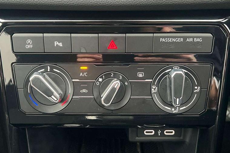 'Lights On' Reminder warning buzzer, Advanced driver attention and drowsiness monitor, Blind spot monitoring, Car information display, Dynamic road sign display, E-Sim card for online connectivity, eCall emergency call system, Front and rear parking sensors, Front assist, forward collision warning, autonomous emergency braking and speed limiter, Low washer fluid warning light, Multifunction computer with visual gear change recommendation for fuel consumption, Multifunction front facing camera for distance control, Operating permit alteration, Power assisted steering, Predictive adaptive cruise control, Preparation for navigation system with media and internet package, Preparation for We connect and We connect plus, Rear view camera, Semi-automated driving assistance, travel assist including lane keeping system Lane Assist and emergency assisst, Speedo, rev counter, electronic odometer, trip, service interval display, exterior temperature and fuel gauge, Warning sound and light for doors and tailgate open, Warning sound and light for front seatbelts unfastened, Wireless Car net app connect with Apple CarPlay, combined functionality of Apple CarPlay/Android Auto and MirrorLink, Wireless charging, Misfuel prevention device, Start-stop system with battery regeneration (recuperation - energy recovery during braking), 2 USB C ports in front, 2 USB charging sockets on the centre console in the rear charging capacity upto 45W, Diversity antenna for FM reception, Music playback - MP3, WMA and AAC files, Radio, Automatic dimming interior rear view mirror, Automatic hazard lights activation under emergency braking, Automatic headlight control with LED separate daytime running light and coming home and leaving home feature, Black roof rails, Body colour door handles, Body colour door mirrors, Body coloured bumpers, Dynamic headlight range control with self adjusting whilst driving, Electric folding door mirror, adjustable, heated with front passenger exterior mirror lowering function, Exterior mirrors convex on the left and aspherical on the right, Front and rear electric windows, Galvanised body, Heat insulating and laminated safety glass windshield, Heat insulating darkened glass in side and rear windows, High Beam Assist, automatic sensing for switching between dipped and main beam, LED Headlights, LED rear combination lights, LED third brake light, Lower door sills and door pillars in black, Rain sensor, Rear fog light on one side, reversing light on both sides, Rear side wing doors, Rear window aerial, Rear window wiper with intermittent control, Reflectors in all doors, Scuff plates, Tailgate with integrated roof spoiler, 12V Accessory socket in centre console, 3 rear head restraints, 3 seat bench in 2nd row, 60/40 split folding rear seat backrest, Ambient lighting and logo projection, Ceramique roof lining, Cloth upholstery, Door and side trim panel, Drawer under drivers seat, Driver and front passenger sunvisor with vanity mirror, Dust and pollen filter, Front and rear reading lights X 2, Front centre armrest with storage compartment, Front seat back storage pockets, Glove compartment door with light, Heating and fresh air system with 4 stage blower, Height/reach adjust steering wheel, Instrument lighting white adjustable panel illumination, Interior light with switch off delay and dimmer, Isofix anchors for child seats on outer rear seats and front passenger seats, Leather gearshift handle, Leather wrapped multifunction steering wheel, Luggage compartment floor, Luggage compartment lighting, Manual front seats with height adjustment, Padded dashboard, Removable luggage compartment cover, Single front passenger seat, Storage compartment in drivers and front passengers door, Unsplit sliding rear seat bench, 3 point outer rear seat belts with ECE label, 3 Point seatbelt for centre rear seat, Anti-lock Braking System (ABS) with Hydraulic Brake Assist (HBA), Automatic post collision braking system, Disc brakes in front, Driver and front passenger safety-optimised head restraints, Drivers and Front Passengers airbags with front passengers airbag deactivation switch, Drum brakes in rear, ESC with EDL and ASR (traction control), Extended and predictive pedestrian/cyclist protection, Front and rear passenger curtain airbag system including front side airbags, Height adjustable front 3 point seatbelts + pretensioners, Hill start assist, Pre crash preventive occupant protection, Proactive passenger protection system in combination with front assist, Rear door child safety locks, Rigid safety cell with front and rear crumple zones, Single tone horn, Tyre pressure loss indicator, Volkswagen roadside assistance, Alarm with interior protection, Anti theft alarm system, Electronic engine immobiliser, Remote keyless entry using key fob including Start/Stop button on centre console with SAFELOCK, Remote tailgate unlocking using key fob, Low rolling resistance tyres,