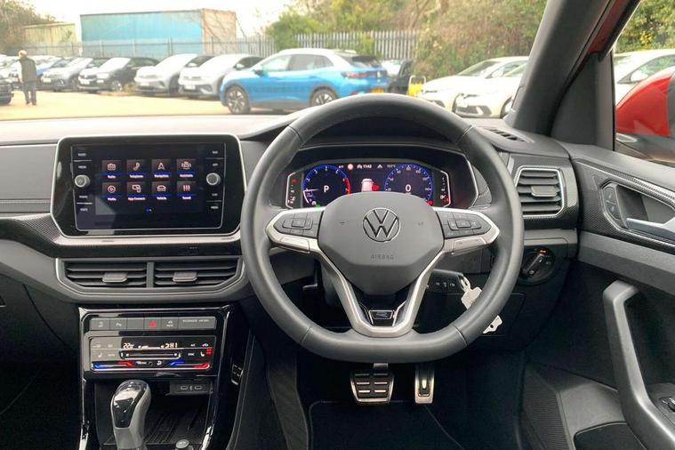 'Lights On' Reminder warning buzzer, 10.25" Digital cockpit pro, Advanced driver attention and drowsiness monitor, Blind spot monitoring, Car information display, Driver profile selection including ECO function, Dynamic road sign display, E-Sim card for online connectivity, eCall emergency call system, Front and rear parking sensors, Front assist, forward collision warning, autonomous emergency braking and speed limiter, Low washer fluid warning light, Multifunction computer with visual gear change recommendation for fuel consumption, Multifunction front facing camera for distance control, Operating permit alteration, Power assisted steering, Predictive adaptive cruise control, Preparation for navigation system with media and internet package, Preparation for We connect and We connect plus, Semi-automated driving assistance, travel assist including lane keeping system Lane Assist and emergency assisst, Speedo, rev counter, electronic odometer, trip, service interval display, exterior temperature and fuel gauge, Warning sound and light for doors and tailgate open, Warning sound and light for front seatbelts unfastened, Wireless Car net app connect with Apple CarPlay, combined functionality of Apple CarPlay/Android Auto and MirrorLink, Wireless charging, Misfuel prevention device, Start-stop system with battery regeneration (recuperation - energy recovery during braking), 2 USB C ports in front, 2 USB charging sockets on the centre console in the rear charging capacity upto 45W, Diversity antenna for FM reception, Music playback - MP3, WMA and AAC files, Radio, Automatic dimming interior rear view mirror, Automatic hazard lights activation under emergency braking, Automatic headlight control with LED separate daytime running light and coming home and leaving home feature, Body colour door handles, Body colour door mirrors, Body coloured bumpers, Dynamic headlight range control with self adjusting whilst driving, Electric folding door mirror, adjustable, heated with front passenger exterior mirror lowering function, Exterior mirrors convex on the left and aspherical on the right, Front and rear electric windows, Front door sill protectors with R-Line logo, Galvanised body, Heat insulating and laminated safety glass windshield, Heat insulating darkened glass in side and rear windows, High Beam Assist, automatic sensing for switching between dipped and main beam, LED rear combination lights, LED third brake light, Lower door sills and door pillars in black, Privacy glass for rear side windows and rear window, Rain sensor, Rear fog light on one side, reversing light on both sides, Rear side wing doors, Rear window aerial, Rear window wiper with intermittent control, Reflectors in all doors, Scuff plates, Tailgate with integrated roof spoiler, 12V Accessory socket in centre console, 2 Front and rear reading lights incorporating LED technology, 3 rear head restraints, 3 seat bench in 2nd row, 60/40 split folding rear seat backrest, Air care climatronic 2 zone air conditioning system, Ambient lighting, Brushed stainless steel pedals, Chrome plated radiator grille inserts, air vent surrounds and light switch surrounds, Cloth upholstery, Comfort front sport seats, Door and side trim panel, Drawer under drivers seat, Driver and front passenger sunvisor with vanity mirror, Dust and pollen filter, Front + rear carpet mats, Front centre armrest with storage compartment, Front footwell illumination, Front seat back storage pockets, Glove compartment door with light, Heated front seats, Heating and fresh air system with 4 stage blower, Height/reach adjust steering wheel, Instrument lighting white adjustable panel illumination, Interior light with switch off delay and dimmer, Isofix anchors for child seats on outer rear seats and front passenger seats, Leather gearshift handle, Leather wrapped multifunction steering wheel, Luggage compartment floor, Luggage compartment lighting, Manual front seats with height adjustment, Padded dashboard, Removable luggage compartment cover, Single front passenger seat, Storage compartment in drivers and front passengers door, Titanium black roof lining, Unsplit sliding rear seat bench, 3 point outer rear seat belts with ECE label, 3 Point seatbelt for centre rear seat, Anti-lock Braking System (ABS) with Hydraulic Brake Assist (HBA), Automatic post collision braking system, Disc brakes in front, Disc brakes in rear, Driver and front passenger safety-optimised head restraints, Drivers and Front Passengers airbags with front passengers airbag deactivation switch, ESC with EDL and ASR (traction control), Extended and predictive pedestrian/cyclist protection, Front and rear passenger curtain airbag system including front side airbags, Height adjustable front 3 point seatbelts + pretensioners, Hill start assist, Pre crash preventive occupant protection, Proactive passenger protection system in combination with front assist, Rear door child safety locks, Rigid safety cell with front and rear crumple zones, Single tone horn, Tyre pressure loss indicator, Volkswagen roadside assistance, Alarm with interior protection, Anti theft alarm system, Electronic engine immobiliser, Remote tailgate unlocking using key fob, Titanium Black Decorative inserts - R Line, Low rolling resistance tyres,