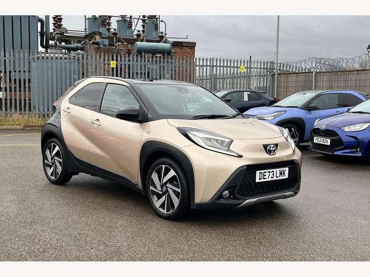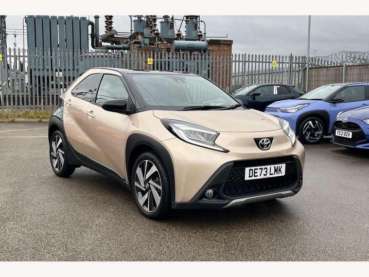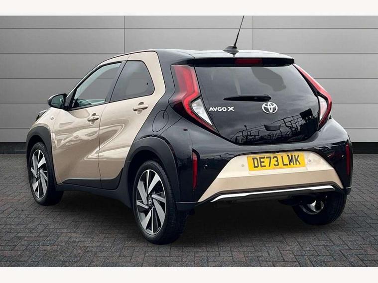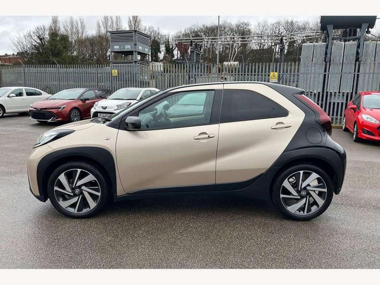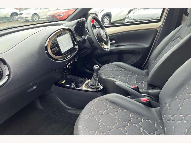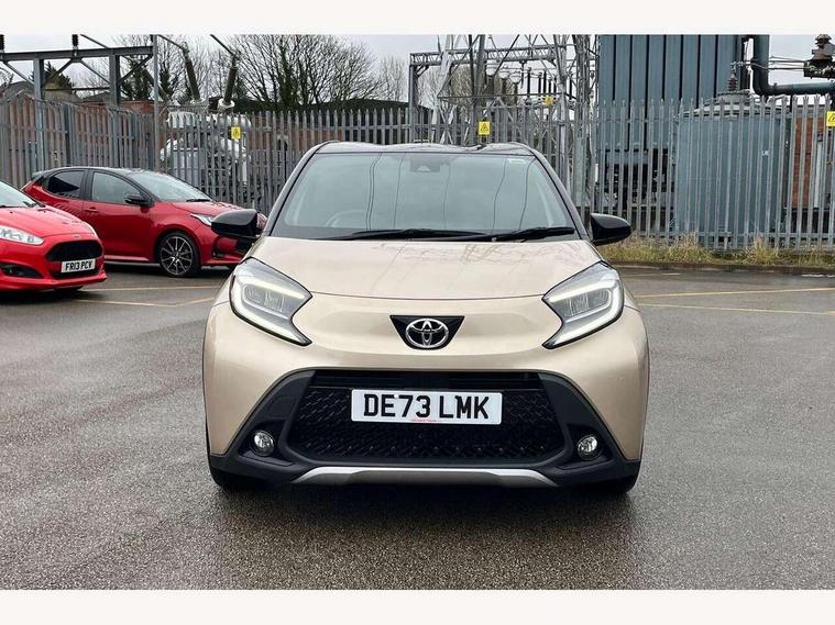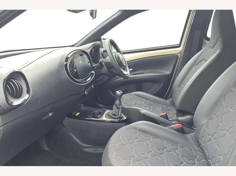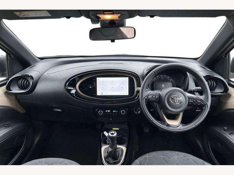 4.2" TFT colour screen, Adjustable speed limiter, Analogue speedometer, Bluetooth connectivity, Digital tachograph, Driver attention alert system, eCall emergency call system, Electric power steering, Front and rear parking sensors with auto brake, Intersection turn assist, Key reminder warning, Noise reduction kit, Pre collision system with emergency steering assist, Remote boot door release on key, Reversing camera with static guide lines, Smart entry and push button start, Speed limit display, Start and stop, Wireless charger, Wireless Smartphone Integration includes Apple CarPlay and Android auto, Vehicle Stability Control (VSC), 4 speakers, 9" HD multimedia display touch screen with Toyota smart connect, DAB digital audio broadcast, USB connector, Auto headlights, Auto wipers, Automatic headlights cut-off, Automatic high beam On/Off switch, Bicycle towing hook, Black fog light surrounds, Black side protection mouldings, Black wheel arch mouldings, Body colour door handles, Body coloured front bumper, Boot door scuff plate, Eclipse black rear bumper, Electric heated door mirrors, Follow me home headlights, Front and rear underruns in silver, Front fog lights, Front power windows, Gloss black door mirrors, Gloss black upper front grille, Headlight cut-off reminder, LED daytime running lights guide, LED front light guide, LED High mounted stop lamp, LED projector headlights, Manual day/night rear view mirror, Manual headlight levelling, Pagoda roof, Power adjustable door mirrors, Power back door, Privacy glass, Rain sensor, Rear combination lights LED bulb type, Rear side wing doors, Rear windscreen defogger, Rear windscreen wiper, Remote hazard lights system, Short antenna, Variable intermittent windscreen wipers, 12v power outlet - front, 2 seat bench in 2nd row, 3 spoke leather steering wheel, 50/50 split folding rear seat, Adhesive roof headlining, Adjustable speed limiter switch on steering wheel, Audio and telephone switches on steering wheel, Auto air conditioning, Black roof lining, Body colour satin anodised insert on steering wheel, Boot light, Centre room light, Chrome interior door handles, Chrome surround on air conditioning buttons, Clean air filter, Console box storage, Floor mats, Front and rear cup holders, Front head rest deco art, Front head restraints, Height adjustable driver seat, Intelligent adaptive cruise control switch on steering wheel, ISOFIX child restraint system on rear seats, Lane departure alert switch on steering wheel, Leather gearshift knob, Light blue ambient lighting in centre console, Manual tilt steering wheel, Manually reclining and sliding driver seat, Manually reclining and sliding front passenger seat, Multimedia switches on steering wheel, Partial synthetic leather upholstery, Pollen filter, Rear door pockets, Rear head restraints, Satin silver insert on gear shift knob, Single compartment glovebox with lights, Single front passenger seat, Soft tonneau cover, Sun visors with mirror on driver and passenger side, Voice recognition switch on steering wheel, Toyota safety sense pack - Aygo X, Anti lock braking system + Electronic brake force distribution, Child safety door lock, Emergency brake light signal (EBS), Hill start assist control (HAC), Passenger airbag on/off switch, Seat belt reminder for front and rear seats, Supplement restraints system (SRS) - 6 airbags, Traction control, Tyre pressure warning system, Immobiliser, Remote power door locks, Black wheel centre caps, Tyre repair kit,