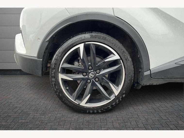 4.2" coloured TFT screen for multi-information display, Adaptive cruise control, Bluetooth connectivity, E-call, Electric power steering, Hybrid system indicator, Lane departure alert with steering control, Remote boot door release in cabin, Remote boot door release in key, Reversing camera, Road sign assist - RSA, Simple Intelligent parking assist, Touch 2 Go navigation system, Trip computer, Voice recognition, Vehicle Stability Control (VSC), 6 speakers, AM/FM radio, DAB Radio (Digital Audio Broadcasting), Toyota touch 2 multimedia system with 8" display, USB connector, Wi-fi connectivity, Adaptive front light system, Adaptive LED Headlights, Anti-jam protection on power windows, Auto high beam, Auto up and down function on all power windows, Automatic headlight levelling, Automatic headlights, Automatic headlights cut-off, Black and body coloured rear bumper, Black upper front grille, Body colour door handles, Body colour door mirrors, Body coloured front bumper, Boot door release with push button, Chrome front lower bumper, Electric heated door mirrors, Follow me home headlights, Front and rear power windows, Front spoiler lip in black, Honeycomb lower front grille, LED daytime running lights, LED fog lights, LED front light guide, LED High mounted stop light, LED rear brake lights, LED rear combination lights, Noise reduction layer on front windows and windscreen, Power adjustable door mirrors, Privacy glass, Rain sensor, Rear sequential indicators, Rear side wing doors, Rear spoiler, Rear tailgate, Rear window defogger, Rear window wiper, Shark fin antenna, UV-filter on driver and passenger windows, UV-filter on rear windows, 12v power outlet - front, 3 rear headrests, 3 seat bench in 2nd row, 3 spoke perforated leather steering wheel, 60/40 split folding rear seat, Adjustable rear headrests, Adjustable speed limiter switch on steering wheel, Assist grips front and centre pillar, Audio and telephone switches on steering wheel, Black front door assist grips, Blue ambient lighting on front cup holders, Blue ambient lighting on front doors, Boot light, Chrome interior door handles, Driver and front passenger personal light, Driver and front passenger Whiplash Injury Lessening seats, Driver and passenger seatback pockets, Dual zone automatic air conditioning, Fabric upholstery, Floor mats, Front cupholders, Front head restraints, Front sports seats, Glovebox with internal light, Hard tonneau cover, Heated driver and front passenger seats, Hooks for luggage holding net, Humidifying Nanoe air purifier, Illuminated entry system, Isofix attachments on outer rear seats, Leather gearshift, Light on driver sun visor, Light on passenger sun visor, Manual telescopic steering wheel, Manual tilt steering wheel, Manually height adjustable driver seat, Manually height adjustable front passenger seat, Manually reclining driver seat, Manually reclining front passenger seat, Manually sliding driver seat, Manually sliding front passenger seat, Microphone on front personal light, Mirror on driver sun visor, Mirror on passenger sun visor, Multimedia switches on steering wheel, Pollen filter, Power adjustable lumbar support on driver seat, Shopping bag hooks, Single front passenger seat, Slow opening on lower glovebox, Voice recognition switch on steering wheel, Tech with parking sensor pack - C-HR, 16 Disk front wheel brake, 3x3 point rear seatbelts, ABS+EBD+Brake assist, Electronic parking brake, Front and rear seatbelt reminder, Front passenger airbag on/off switch, Hill start assist control (HAC), Pre collision system with pedestrian detection, Pre-tensioners and force limiters, Rear door child safety locks, SRS Airbags - Driver + Front passenger, front side, front and rear curtain and driver's knee airbags, Toyota safety sense, Tyre pressure monitoring system, Acoustic vehicle alert system (AVAS), Glass-breaking alarm sensors, Immobiliser, Intrusion alarm, Intrusion sensor, Motion sensor alarm, Power door locks, Power passenger window lock, Remote central locking, Black lower dashboard, Black upper dashboard, Piano black console, Silver deco line on upper dashboard, 19" Black machined alloy wheels, Tyre repair kit,