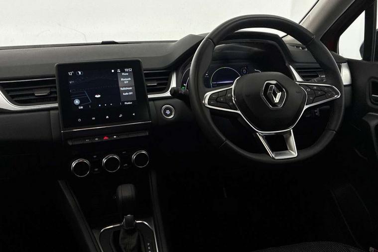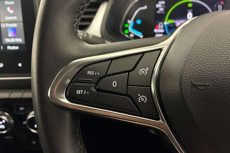 7" TFT Driver information display, Cruise control + speed limiter, EasyLink 7" touchscreen with navigation, google search and traffic information, Eco mode, EV button to activate pure mode, Front and rear parking distance sensors, Gear change indicator, Lane departure warning system, Lane keep assist, Multisense with 3 driving modes + 8 ambient lighting colours, Rear view camera, Renault automatic emergency assist, Smartphone integration compatible with Apple CarPlay and Android Auto, Traffic sign recognition with over speed prevention, Trip computer, Variable assistance power steering, DAB Radio with Bluetooth and USB, 2 reverse gear LED lamps and 1 rear LED fog lamp in the bumper, Auto dimming rear view mirror, Automatic front wipers with rain sensors, Automatic headlights, Automatic high/low beam, Black side door protection with chrome effect, Body colour door handles, Body coloured bumpers, Body coloured door mirrors, C Shaped LED front and rear lighting signatures with 3D effect on the rear lights, Chrome around front air deflectors, on front wing deco element and window lining, Day time running light, Drivers one touch window with anti-pinch feature, Extra tinted glass in rear windows and tailgate, Front and rear electric windows, Front grille with chrome upper trim, Full LED headlights with LED rear lights, Grey front and rear skid plate, LED high level brake lights, LED rear fog lights, LED turn indicators on door mirrors, Longitudinal roof bars, Rear side wing doors, Rear wiper, Shark fin antenna, 12V Accessory socket, 60/40 split and fixed base rear seat bench, Automatic climate control with one touch demist function and air quality regulator, Central rear LED rooflight with 3 reading lights, Front head restraints, Glovebox, Heating system with pollen filter, Height adjustable driver's seat, Height adjustable passenger seat, Height/reach adjust steering wheel, ISOFIX child seat fixing points on rear outermost seats, LED front roof lights, Middle console with armrest and storage, Modular boot floor, Rear air vents, Rear head restraints, Single front passenger seat, Sliding rear bench, Synthetic leather steering wheel, Synthetic leather/cloth upholstery, 3 rear seatbelts, ABS+EBA, AEBS - active emergency braking system, B Brake Mode - One pedal driving with increased regenerative braking, Distance warning alert, Driver and front passenger and 3 rear passengers seatbelt reminder, Driver and front passenger, side, head and curtain airbags, Driver height adjustable seat belt, Electric parking brake with auto hold function, Electronic stability control, Front dash warning indicator in case of heavy braking, Front driver and passenger side airbag deactivation, Hill start assist, Manual passenger airbag deactivation function, Rear door and window child locking function for rear door, Tyre pressure warning light, Anti drill door locks and locking fuel cap, Central door locking, Deadlocking system, Hands free keycard with push button and start/stop function, RAID (Renault Anti-Intruder Device) automatic door locking, Black soft touch dashboard, 18" Pasadena diamond cut alloy wheels with grey inserts,
