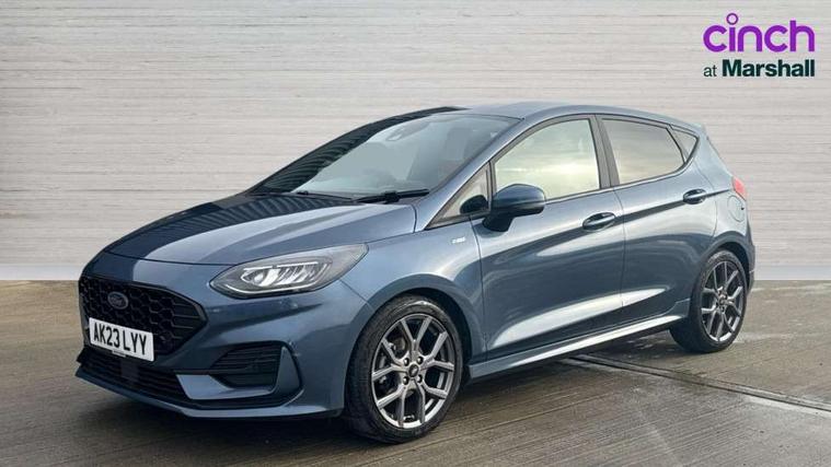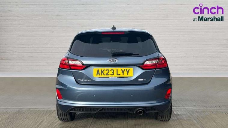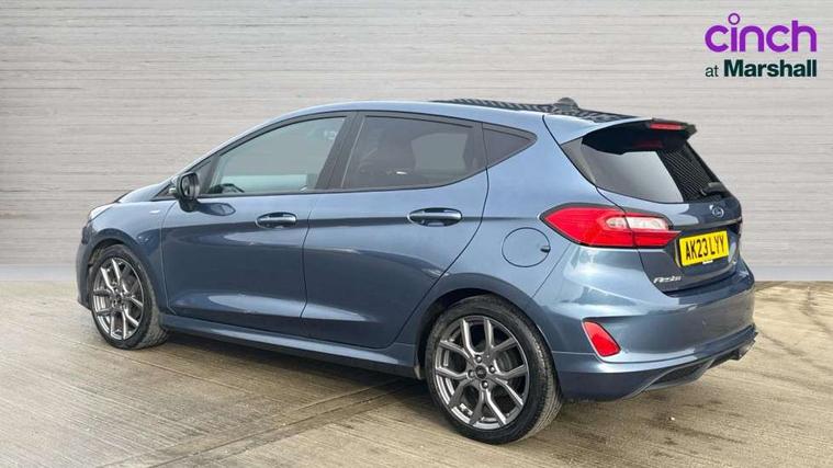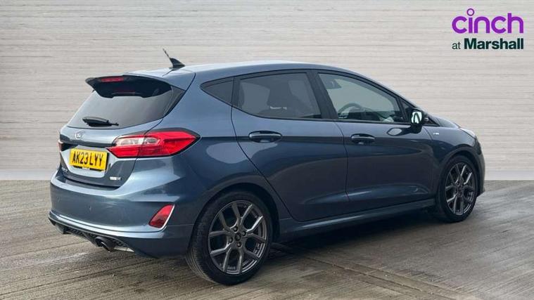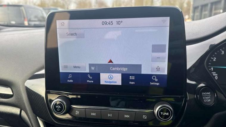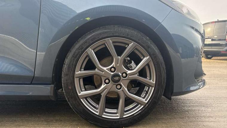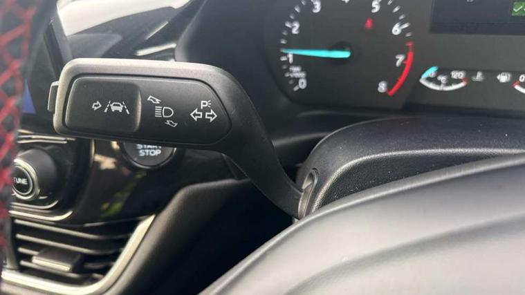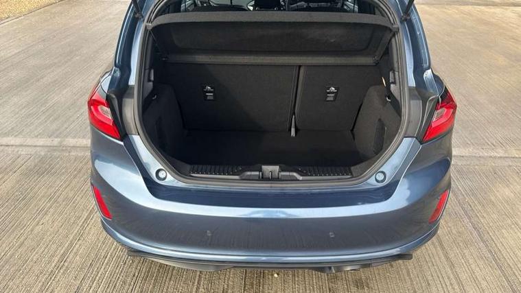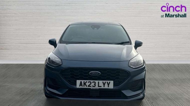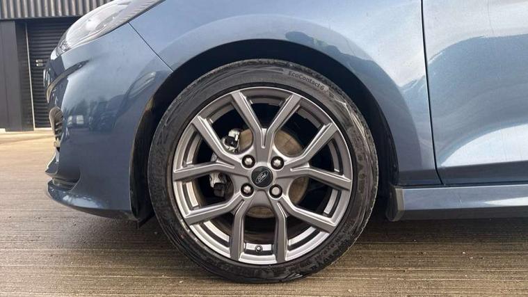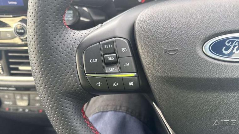 Bluetooth system, Electric power steering, Ford easy fuel, Ford SYNC 3 Navigation system incl 8" touchscreen, 7 speakers, FordPass connect, Apple carplay, android auto, voice control and emergency assistance, Rear parking distance sensors, Selectable drive modes (Normal, Sport, Track), Trip computer, Sports suspension, 2 USB ports, Auxiliary input socket, DAB Digital radio, Steering wheel mounted controls, Body colour bumpers, Body colour door handles, Body colour large rear spoiler, Body coloured electrically operated and heated door mirrors with side indicators, Cornering front fog lights, Electric front windows/one touch facility, Electric rear windows, LED Night signature to rear lights, Quickclear heated windscreen, Rain sensing wipers and auto dimming rear view mirror, Rear privacy glass, Rear wiper, Unique ST-Line upper grille & full bodystyling kit with ST-Line wing badges, 3 spoke flat bottomed leather steering wheel, 60/40 split folding rear seat, Adjustable head restraints, Black headlining, Boot carpet, Centre console with opening armrest, 2x cupholders, 12v and USB, Chrome inner door handles, Cloth upholstery, Footwell illumination, Front floor mats in velour, Front map reading lights, Front seat and rear pockets, Illuminated glovebox, Leather gaiter, Load area light, Manual 2 way passenger seat adjust, Manual 4-way driver seat adjust, Manual air conditioning, Overhead console with sunglasses holder, Pollen filter, Rake/reach adjustable steering wheel, Sensico wrapped steering wheel, Sports front seats, NCAP Pack - Fiesta, 3 point seatbelts on all rear seats, ABS+EBA, Curtain airbags, Driver and passenger airbags, Drivers knee airbag, Electronic stability control with hill start assist, Front passenger airbag deactivation, Front side airbags, Seatbelt warning, Two tone horn, Tyre pressure monitoring system, Keyless start with 'Ford Power' starter button, MyKey system, Remote central locking & engine immobiliser, Thatcham Cat.1 alarm, 17" 5 spoke alloy wheels with rock metallic finish,