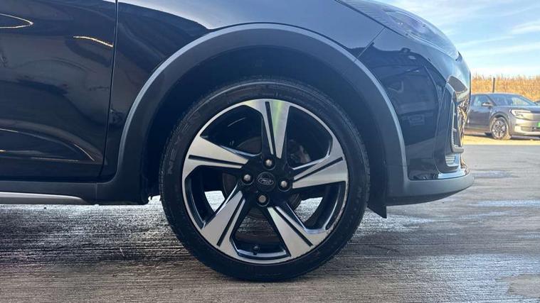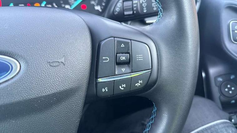 4.2" Colour TFT Ice blue illumination analogue cluster, Driver alert system, Electric power steering, Ford easy fuel, Lane keep assist, Lane keeping aid, Rear parking distance sensors, Selectable drive modes (Normal, Sport, Track), Trip computer, Rough road suspension with increased ride height adjust, 3rd brake light, Auto high beam, Automatic headlights, Body colour bumpers, Body coloured electrically operated with side indicators, Electric front windows/one touch facility, Electric rear windows, Quickclear heated windscreen, Rain sensing wipers and auto dimming rear view mirror, Rear privacy glass, Rear side wing doors, Rear wiper, Rugged bodystyling kit with active front wing badges, 3 rear headrests, 3 seat bench in 2nd row, Adjustable head restraints, Centre console with opening armrest, 2x cupholders, 12v and USB, Cloth upholstery with dark blue stitching, Leather gear knob, Manual 2 way passenger seat adjust, Manual 4-way driver seat adjust, Manual air conditioning, Premium floor mats, Sensico wrapped steering wheel, Single front passenger seat, 3 point seatbelts on all rear seats, Electronic stability control with hill start assist, Front and rear seat belt warning, Manual child lock in rear doors, Tyre pressure monitoring system, Keyless start with 'Ford Power' starter button, MyKey system, Remote central locking, Thatcham alarm with power door dead locks, 17" 5 spoke alloys with rough metal machined finish,
