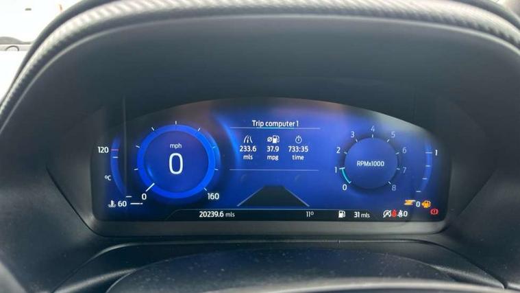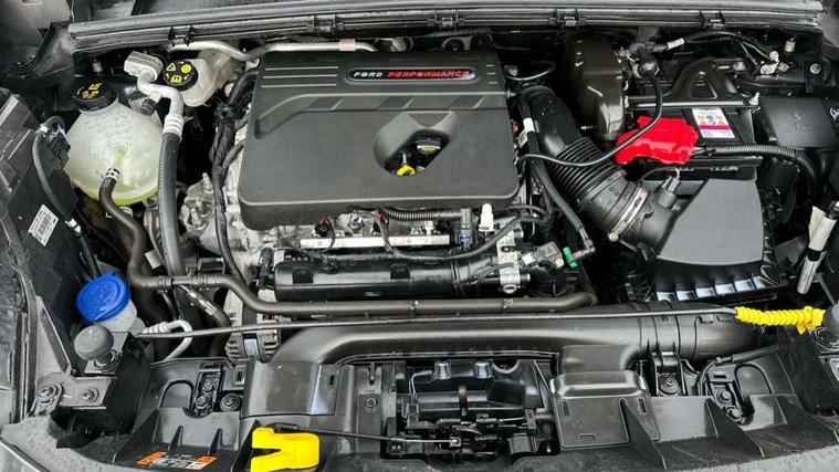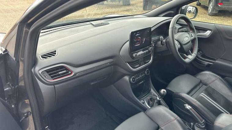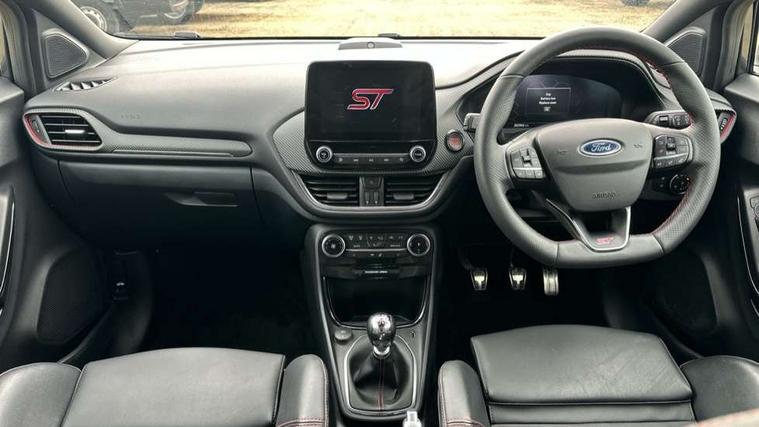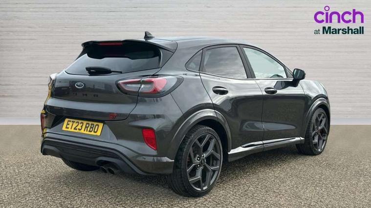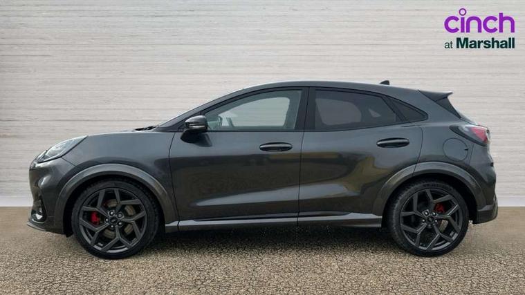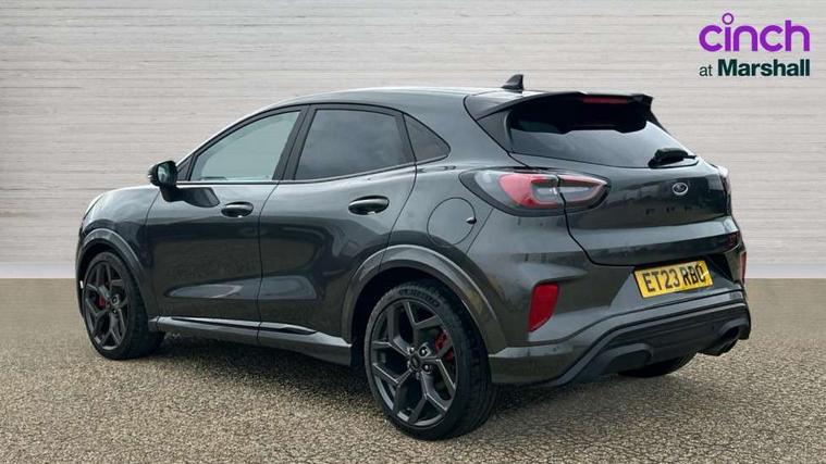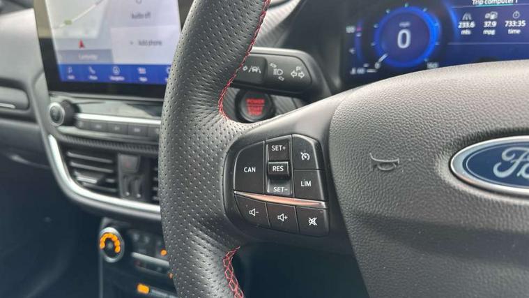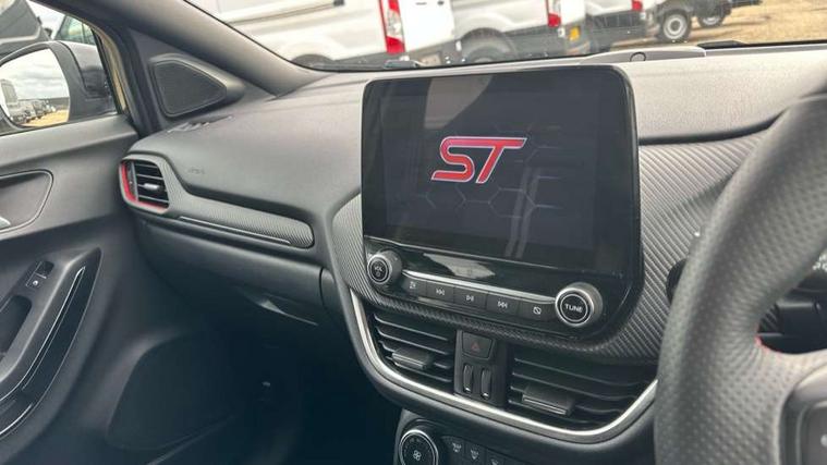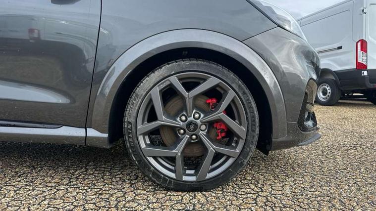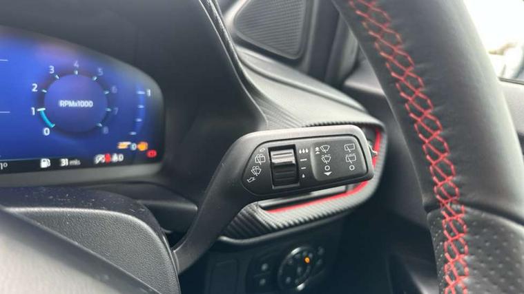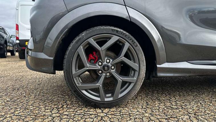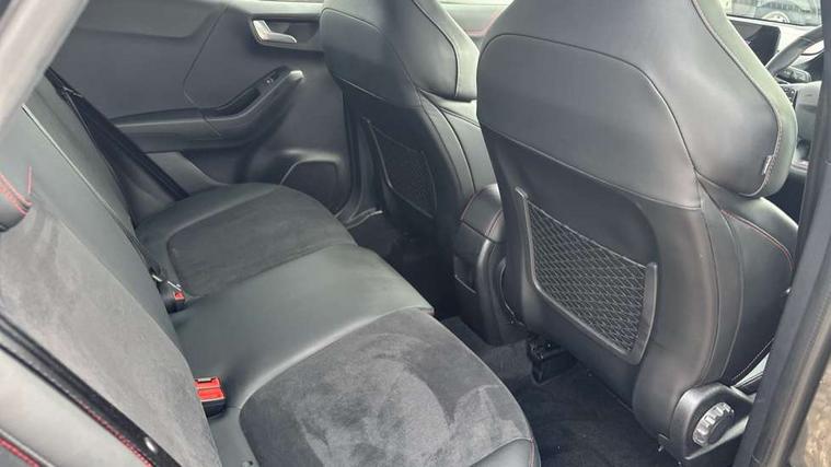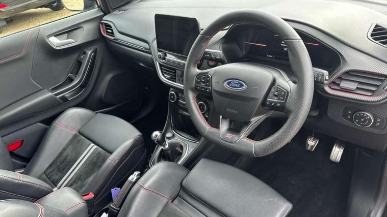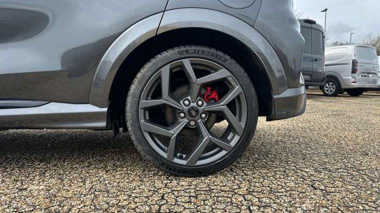 Cruise control with Intelligent speed assist, Driver impairment monitor, Emergency call service, Ford easy fuel, Front and rear parking sensors, Full digital 12.3" instrument cluster, Lane keeping aid with lane departure warning, Power assist steering, Selectable drive modes (normal, sport, eco, track), Speed sign recognition, Engine sound enhancer, ST suspension, Automatic headlights with auto high beam, Automatic rain sensing wipers, Dual chrome exhaust, Fixed LED signature headlamps, Front fog lamps, LED daytime running lights, LED rear lamps, Power foldable heated door mirrors with puddle lamps and puma logo protection, Privacy glass to side rear windows and tailgate glass, Quickclear heated windscreen, Rear side wing doors, Rear wiper, ST scuff plates, Third brake light, Unique ST body styling kit including contrast black roof, large rear spoiler and wing mirrors, plus Ford Performance embossed splitter, 3 seat bench in 2nd row, Alloy sports pedals, Centre console with armrest and stowage, Ford megabox extended bootspace, Ford Performance sensico partial premium leather upholstery with metal grey stitching, Front and rear floor mats, Front and rear head restraints, Manual 6 way driver seat adjust with lumbar adjustment, Manual 6 way passenger seat with lumbar seat adjustment, Single front passenger seat, ST flat bottomed steering wheel with metal grey stitching, ST logo projection, Unique ST gear shift knob, Wireless charging pad with electronic air temperature control (EATC), B&O Premium Audio system + Ford SYNC 3 navigation pack - Puma, Winter pack - Puma, 3 rear seatbelts, Child safety lock, Electronic stability control (ESC) and hill start assist, Pedestrian/cyclist detection & post-collision braking, Pre collision assist system, Red brake calipers, Tyre pressure monitoring system (TPMS), Keyless entry and power start button, Thatcham alarm, Carbon look interior deco spears, 19" 5 Spoke magnetite dark finished alloy wheel, Tyre inflation kit,