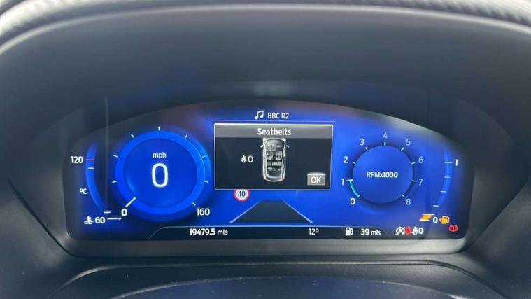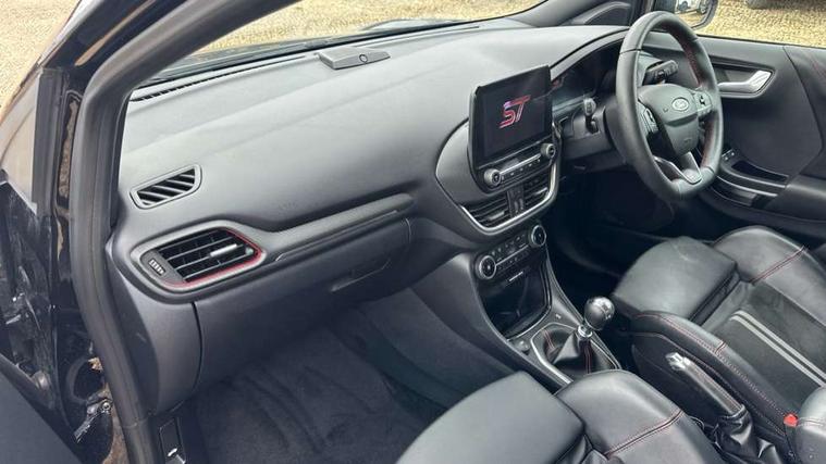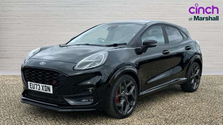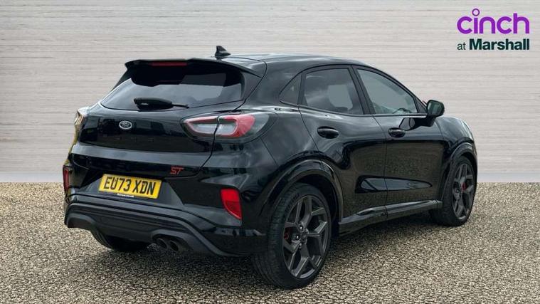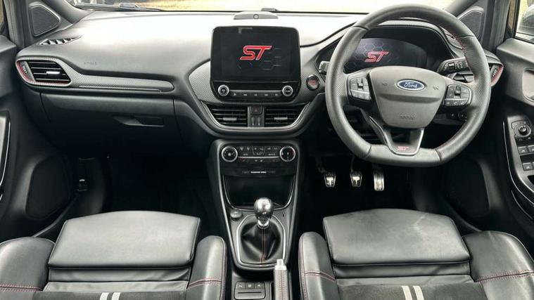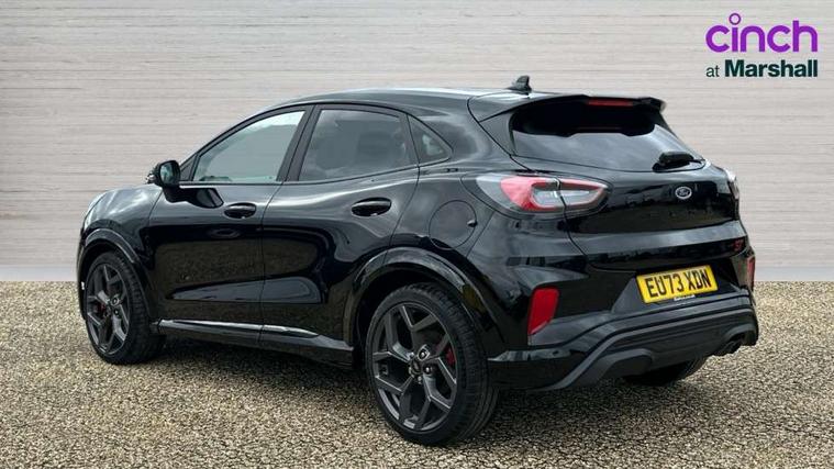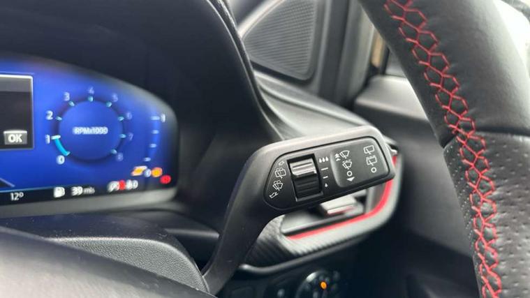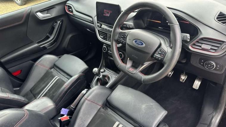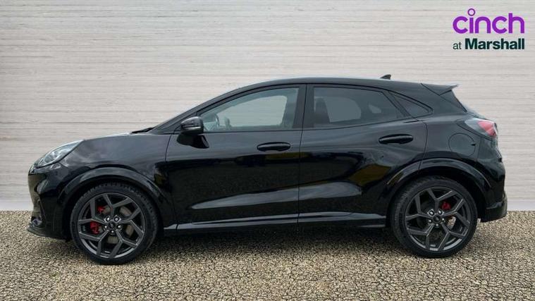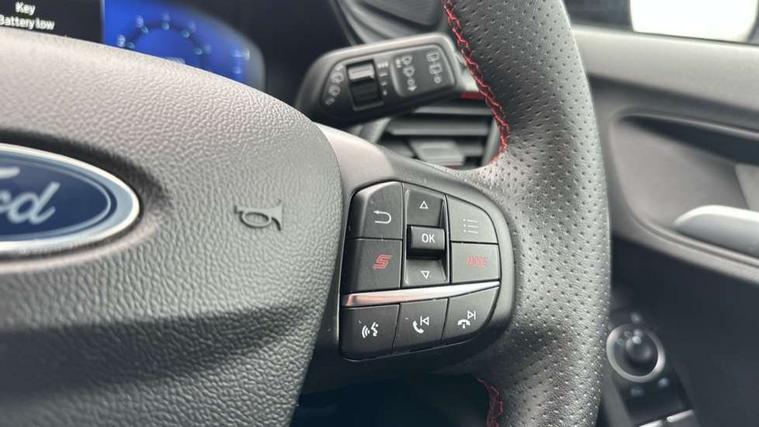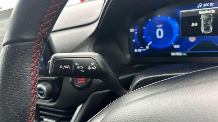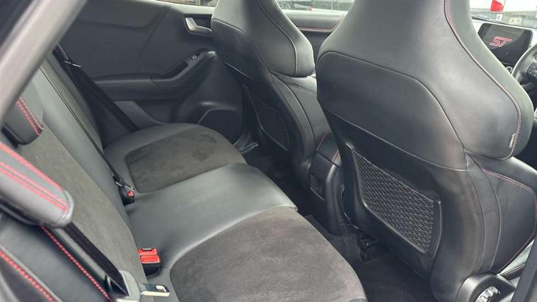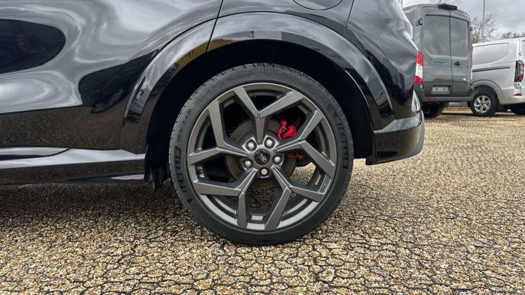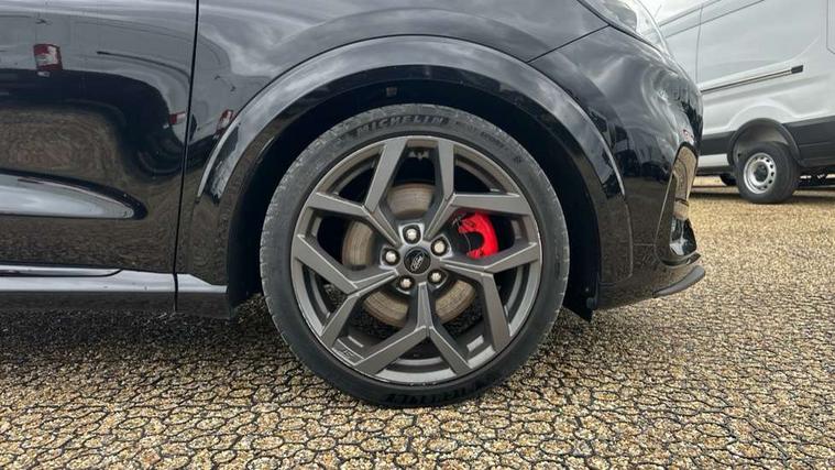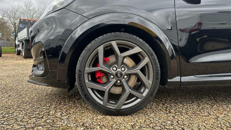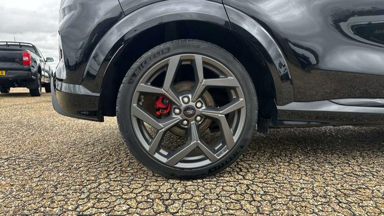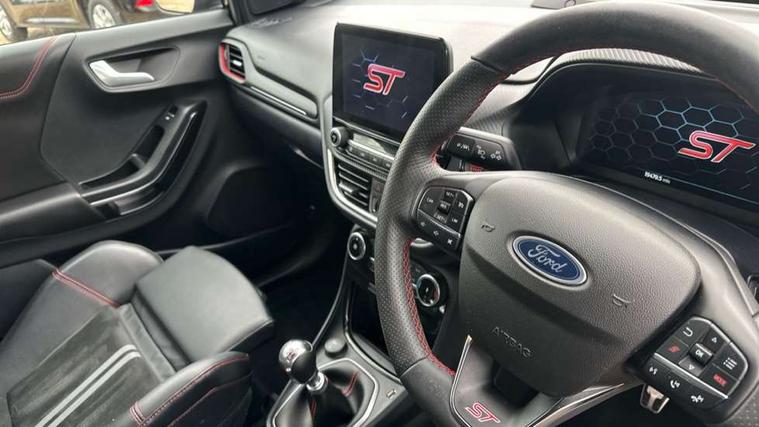 Cruise control with Intelligent speed assist, Driver impairment monitor, Emergency call service, Ford easy fuel, Front and rear parking sensors, Full digital 12.3" instrument cluster, Lane keeping aid with lane departure warning, Power assist steering, Selectable drive modes (normal, sport, eco, track), Speed sign recognition, Engine sound enhancer, ST suspension, Automatic headlights with auto high beam, Automatic rain sensing wipers, Dual chrome exhaust, Fixed LED signature headlamps, Front fog lamps, LED daytime running lights, LED rear lamps, Power foldable heated door mirrors with puddle lamps and puma logo protection, Privacy glass to side rear windows and tailgate glass, Quickclear heated windscreen, Rear side wing doors, Rear wiper, ST scuff plates, Third brake light, Unique ST body styling kit including contrast black roof, large rear spoiler and wing mirrors, plus Ford Performance embossed splitter, 3 seat bench in 2nd row, Alloy sports pedals, Centre console with armrest and stowage, Ford megabox extended bootspace, Ford Performance sensico partial premium leather upholstery with metal grey stitching, Front and rear floor mats, Front and rear head restraints, Manual 6 way driver seat adjust with lumbar adjustment, Manual 6 way passenger seat with lumbar seat adjustment, Single front passenger seat, ST flat bottomed steering wheel with metal grey stitching, ST logo projection, Unique ST gear shift knob, Wireless charging pad with electronic air temperature control (EATC), B&O Premium Audio system + Ford SYNC 3 navigation pack - Puma, Winter pack - Puma, 3 rear seatbelts, Child safety lock, Electronic stability control (ESC) and hill start assist, Pedestrian/cyclist detection & post-collision braking, Pre collision assist system, Red brake calipers, Tyre pressure monitoring system (TPMS), Keyless entry and power start button, Thatcham alarm, Carbon look interior deco spears, 19" 5 Spoke magnetite dark finished alloy wheel, Tyre inflation kit,
