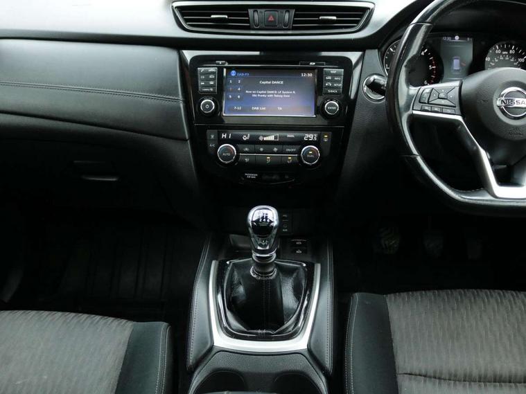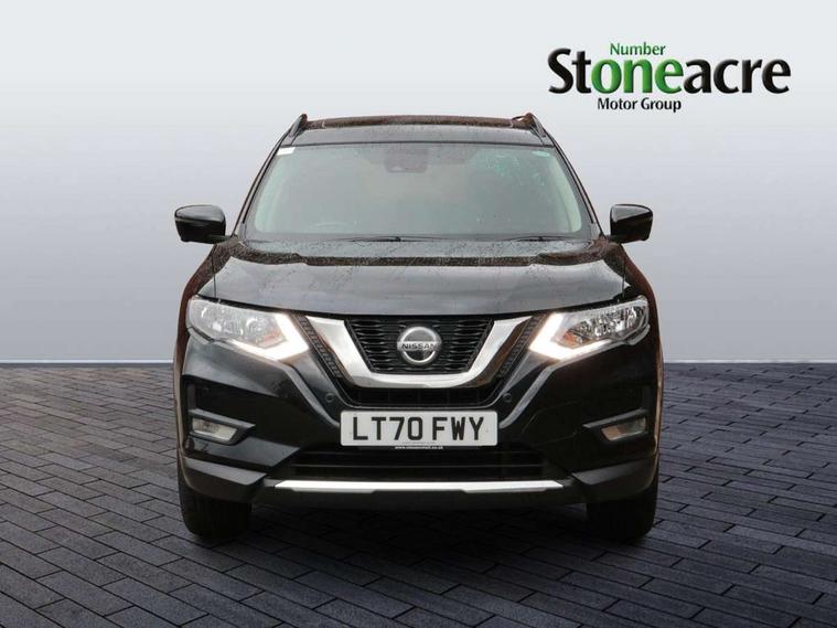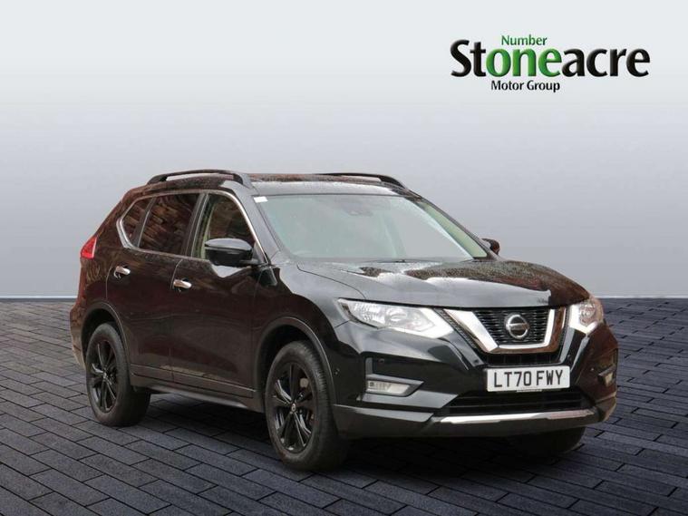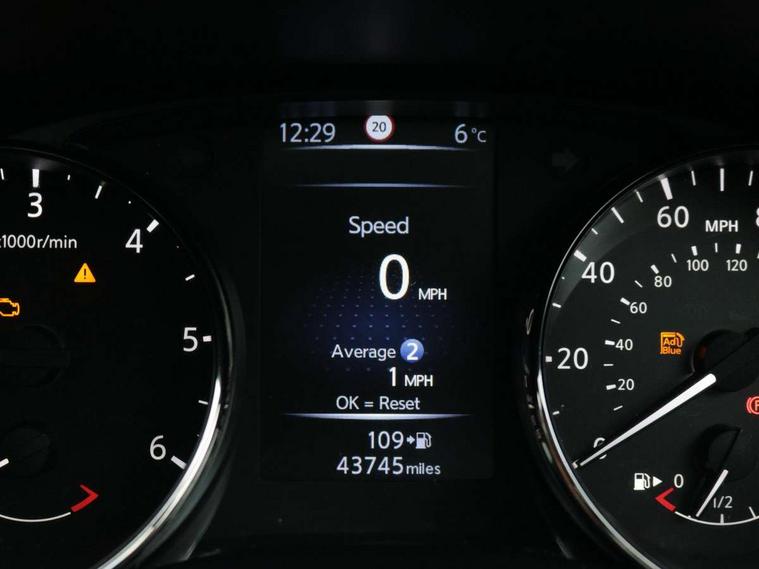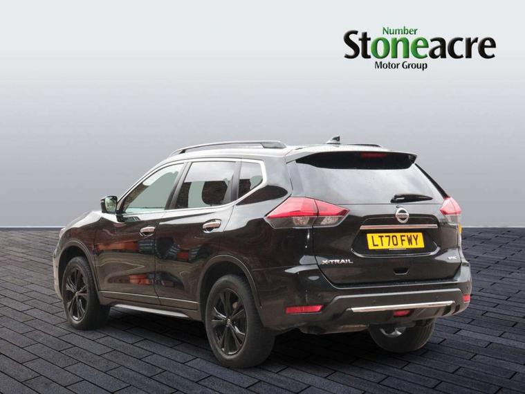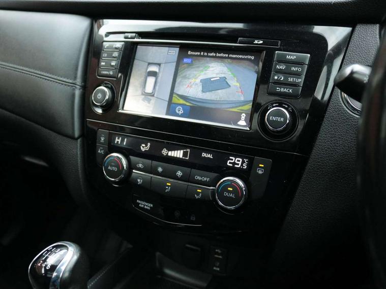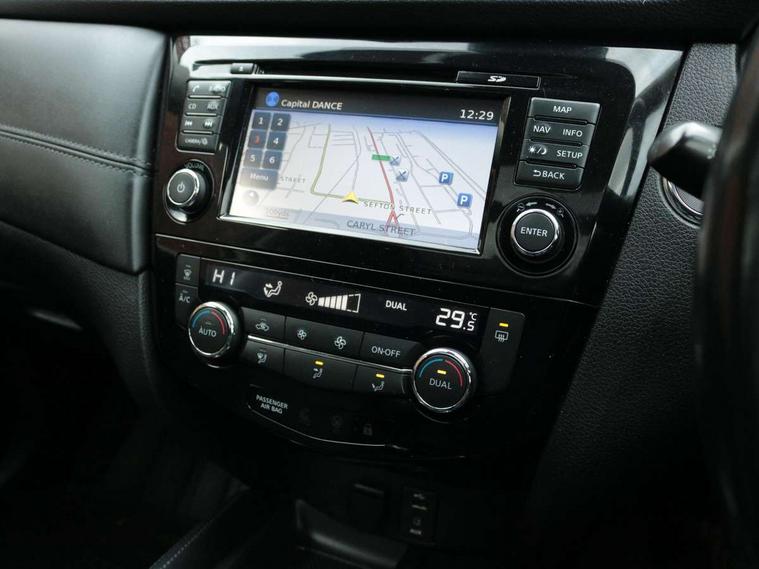 5" TFT driver information centre, Automatic tailgate opening, Blind spot monitoring, Bluetooth phone integration system, Driver attention alert system, Front and rear parking sensors, Intelligent around view monitor, Intelligent parking assist, Lane departure warning system, Moving object detection, Nissan connect evo 7" touchscreen navigation and entertainment system, PAS, Push button start, Rear cross traffic alert, Traffic sign recognition, Trip computer, Nissan chassis control (intelligent ride control, intelligent trace control, intelligent engine brake), 6 speakers, DAB Digital radio, Radio/CD, Smartphone apps, Steering wheel mounted audio controls, USB/aux input socket, Aluminium entry guards with N-TEC naming, Anti dazzle rear view mirror, Automatic headlights, Black roof rails, Chrome door handles, Chrome window surround, Dark V motion grille, Electric folding door mirrors, Electric heated mirrors with side turn signal light, Front and rear electric windows, Front fog lights, Halogen headlights, LED daytime running lights, Metallic black door mirrors, N-Tec badge, Panoramic sunroof with one touch shade, Rain sensing windscreen wipers, Rear privacy glass, Shark fin roof aerial, 3 rear headrests, 60/40 split rear bench seat, Centre console storage box/armrest, Cloth upholstery, Configurable luggage board system, Driver's manual adjustable lumbar support, Dual zone climate control, Front and rear door pockets with bottle holders, Front row ventilated cupholders, Front/rear armrests, Height adjustable front headrests, Individual rear reading lights, Isofix child seat attachment, Leather D shaped steering wheel, Leather steering wheel and gear knob, Manual adjust driver/passenger seats, Pollen filter, Tilt/telescopic adjustable steering wheel, Drive assist pack - X-Trail, 3 point seatbelts on all seats, 6 airbags - Driver, front passenger, curtain and side airbags, ABS, Child locks on rear doors, EBD + Brake Assist, Electric parking brake, ESP + traction control, Intelligent emergency braking with pedestrian recognition, Seatbelt warning, Tyre pressure monitoring system, Immobiliser, Intelligent Key, Remote control door locking with superlocking, Thatcham Cat.1 alarm, 18" Black alloy wheels, Full size spare wheel,