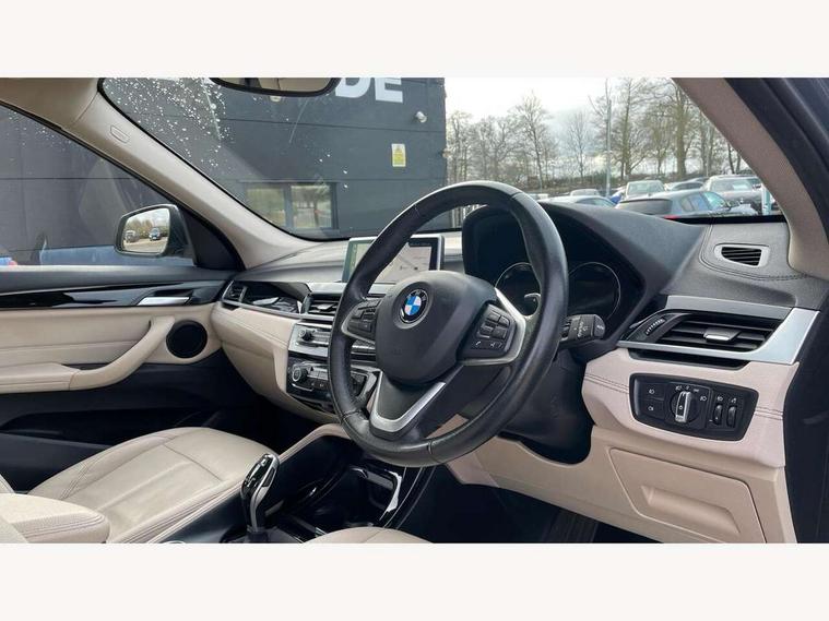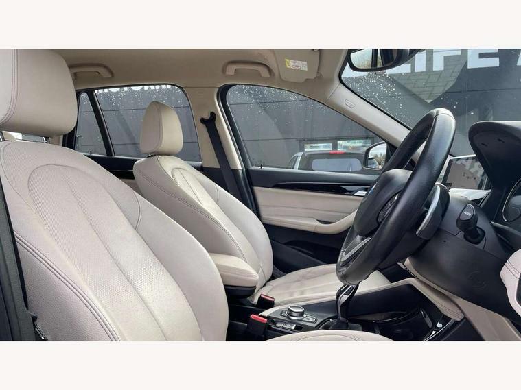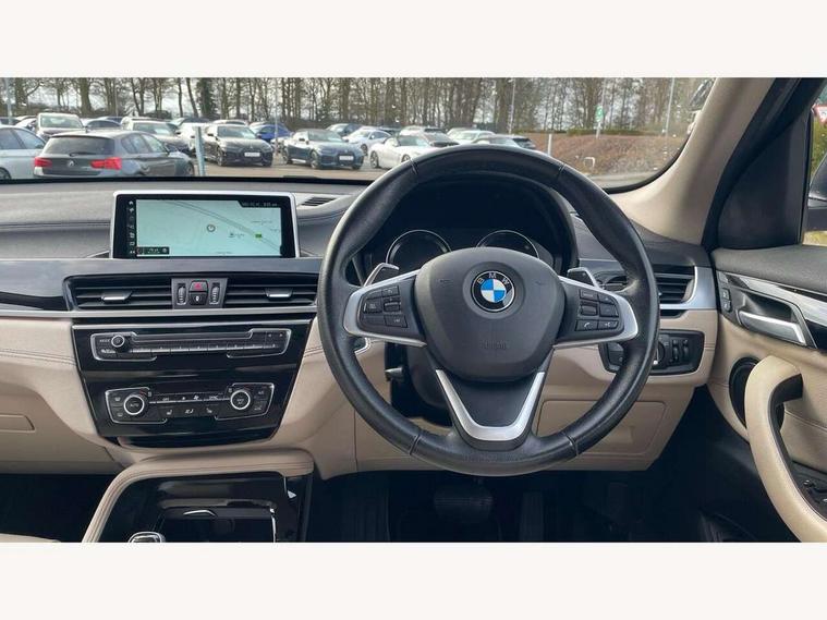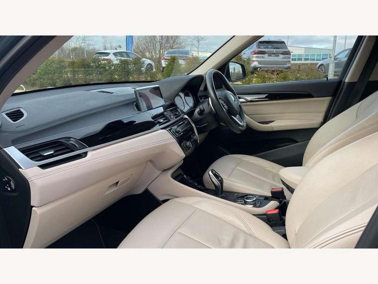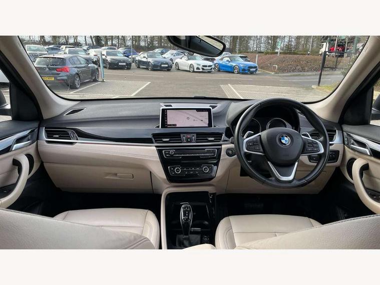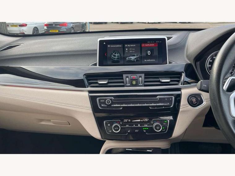 Ambient temperature display, Attentiveness assist, Automatic tailgate opening, BMW Online services, BMW remote services, BMW Teleservices, Brake pad wear indicator in front and rear, Front/rear park distance control (PDC), Instrument cluster with speedometer with miles per hour read out, tachometer and fuel gauge, Lights on warning by audio warning signal when ignition is switched off, On board computer, Optimum shift indicator, Outside temperature gauge, Park assist system, Personal Profile - automatic lock when driving away selectable, Real time traffic information, Service interval indicator, Servotronic PAS, Stop/start button, Tyre puncture warning system, 12V compressor with integrated sealant injection bottle and hose, Anti-roll bars, Balancer shaft, Drive performance control with ECO PRO comfort + sport mode, Electronic differential lock, High precision injection, Larger fuel tank capacity (61 litres), Performance Control, Twin tube gas filled shock absorbers with degressive characteristic curve, 2 USB Power socket for rear seat, DAB Digital radio, USB connection located in centre console, USB/audio interface, Adjustable headlights, Aero curtain, Automatically dimming rear view mirror, Body colour bumpers, Body colour door handles, Body colour door mirrors, Clear lenses direction indicator lights, Direction indicator side lights integrated exterior mirrors, Dynamic brake lights, Electrically adjustable door mirrors with aspheric on driver side, convex on passenger side with integrated indicators, Exclusive front door sill finishers with BMW designation, Exterior mirrors - electrically folding with anti-dazzle, Fingertip control / anti-trap function on electric window, Follow me home headlights, Front air guide finished in black silver, Front air inlets in matt black with silver finisher matt, Front and rear bumper system, Front and rear electric windows, Front bumper underbody protection in silver matt, Green tinted heat protection glazing glass, Headlight beam throw control, Heated door mirrors, Heated windscreen washer jets, High level third brake light, Kidney grille with 14 chrome matt aluminium fronted with black matt sides vertical bars, LED daytime running lights, LED front fog lights, Lightweight engineering, Model designation, Rain sensor including auto headlights activation, Rear fog lights, Rear window aerial, Rear window wash/wipe, Reversing light in rear light cluster, Roof mouldings in matt black, Satin matt aluminium exterior trim, Shark fin antenna, Sill cover matt black with matt silver insert, Twin chrome exhaust tailpipes x2, Visible VIN plate, Welcome lighting, 12v power point in centre console, 3 rear headrests, 3 spoke sport leather steering wheel, 4 grab handles, 40:20:40 split folding rear bench seat, Automatic light activation, Black door sill finishers with BMW designation, Boot light, Child seat ISOFIX attachment for two outer rear seats and front passenger seat with anchorage points, Dakota leather upholstery with perforation and contrast stitching, Driver and front passenger heated seats, Driver/front passenger seat backrest back with luggage net, Driver/passenger sunvisors with ticket holders, Dual zone automatic air conditioning, Extended storage, Front and rear door armrests, Front centre armrest/sliding cover, Front/rear adjustable head restraints, Illuminated glovebox, Leather gearknob/gaiter/handbrake grip, LED ambient lighting in door trim, Luggage area underfloor compartment, Luggage compartment access via recessed handle below tailgate, Luggage compartment lighting, Luggage compartment loading edge with stainless steel insert, Manually adjustment steering wheel column, Multifunction steering wheel, Rear coded belt buckles, Steering wheel gearshift paddles, Velour floor carpets, Extended lights pack - X1, Extended storage package - X1, 3 rear 3 point seatbelts, ABS/EBD, Audio/visual collision warning system, Automatic Stability Control (ASC), Battery safety cut-off, BMW emergency call, Brake drying, Brake energy regeneration, Braking readiness, Cornering brake control (CBC), Crash Sensor - activates hazard/interior lighting + unlocks doors, Driver/Front Passenger airbags, Driver/front passenger side airbags, Dynamic brake control, Dynamic stability control + (DSC+), Dynamic Traction Control - DTC, Electronic parking brake, Front and rear head airbags, Front passenger airbag deactivation, Front seatbelt force limiters, Front ventilated disc brakes, Hill start assist, Pyrotechnically pre-tensioned front seatbelts, Rear disc brakes, Rear door child safety locks, Seatbelt security check for driver and front passenger, Side impact protection, Twin horns, Tyre pressure monitor, Warning triangle and first aid kit, Auto door lock when driving, Central locking switch for all doors, fuel filler cap and luggage compartment, Check control system for monitoring of lights and door/luggage compartment open warning, Engine immobiliser, Locking wheel nuts, Remote control Thatcham category 1 alarm, Remote control with integrated two key, Contrast stitching on instrument panel, High gloss black centre console, Low rolling resistance tyres,